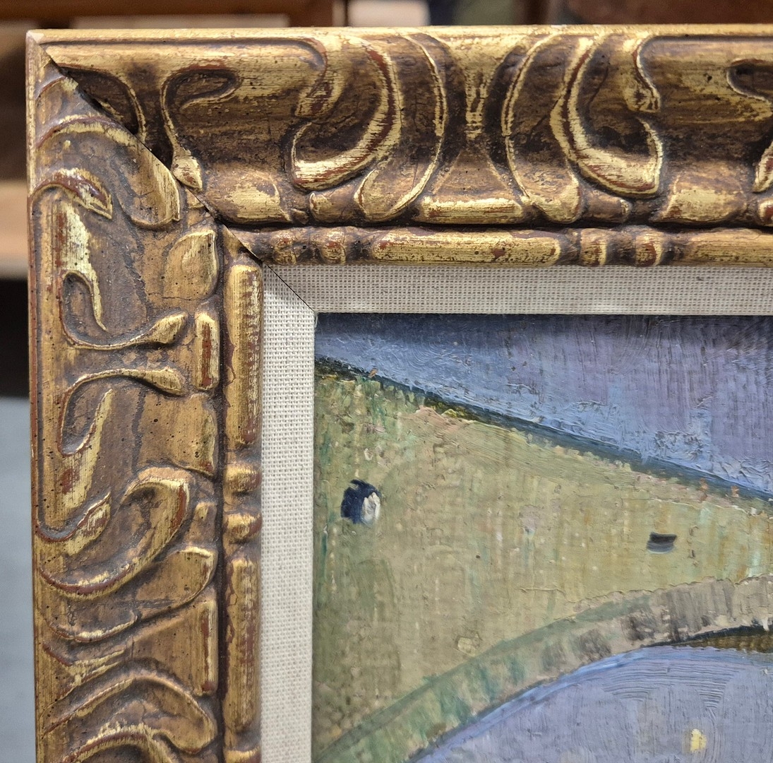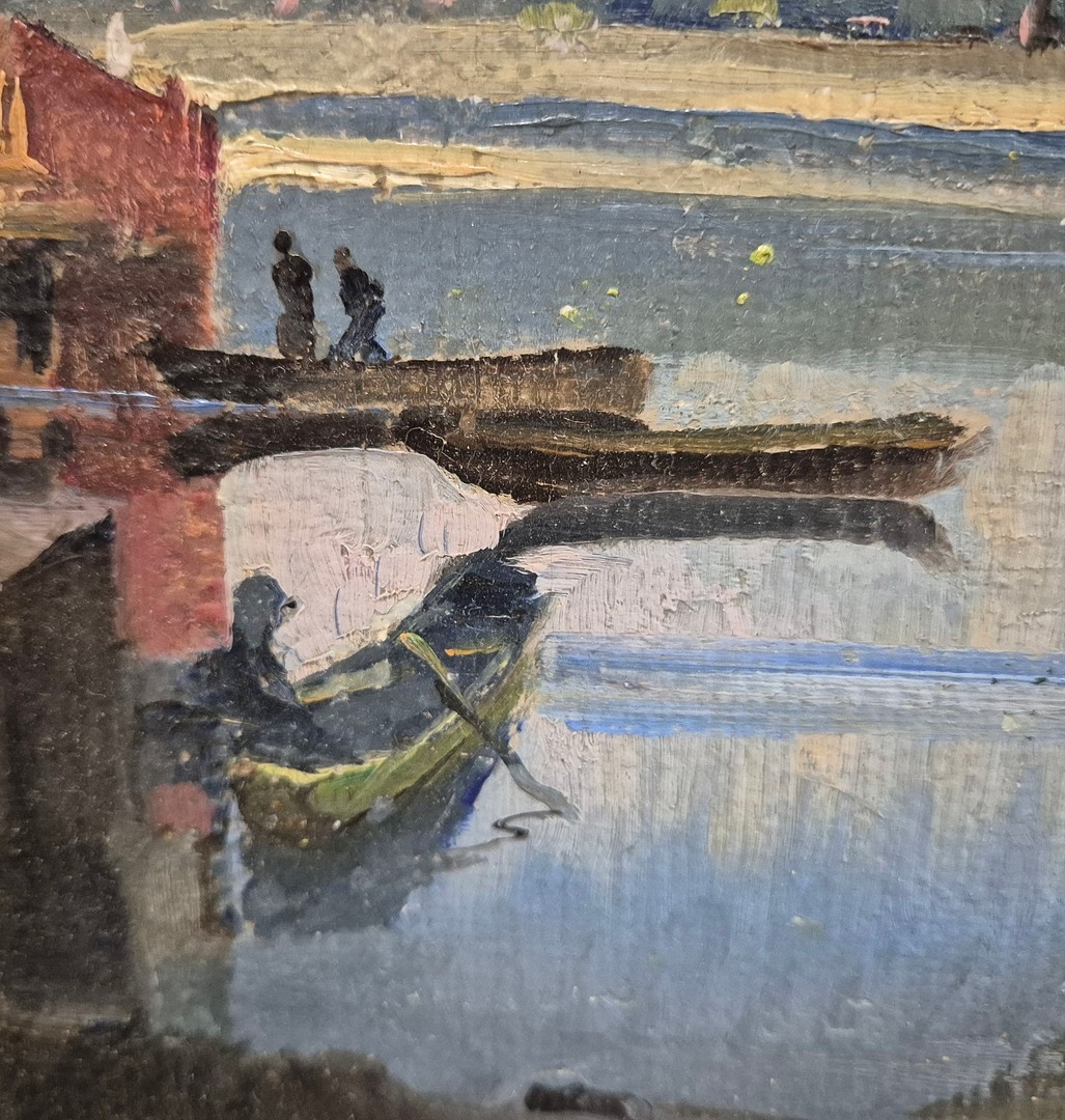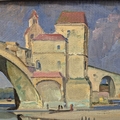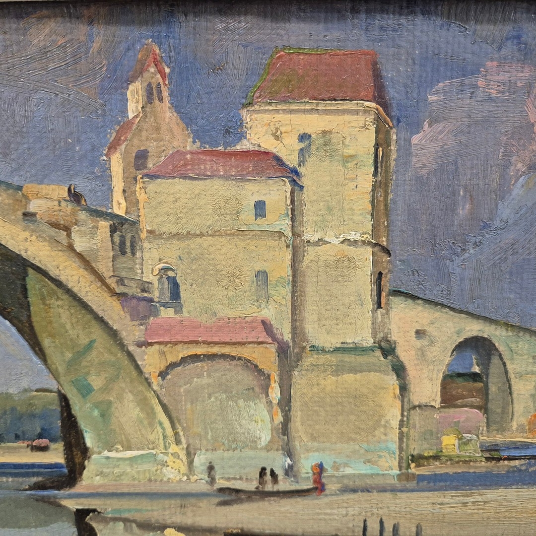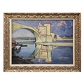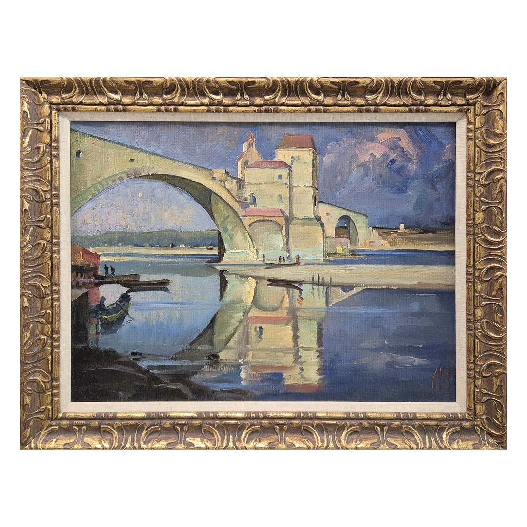 CONTINENTAL SCHOOL. LANDCAPE WITH BRIDGE (POSSIBLY AVIGNON). signed KPS, oil on canvas, 38cm x 48cm, framed.
