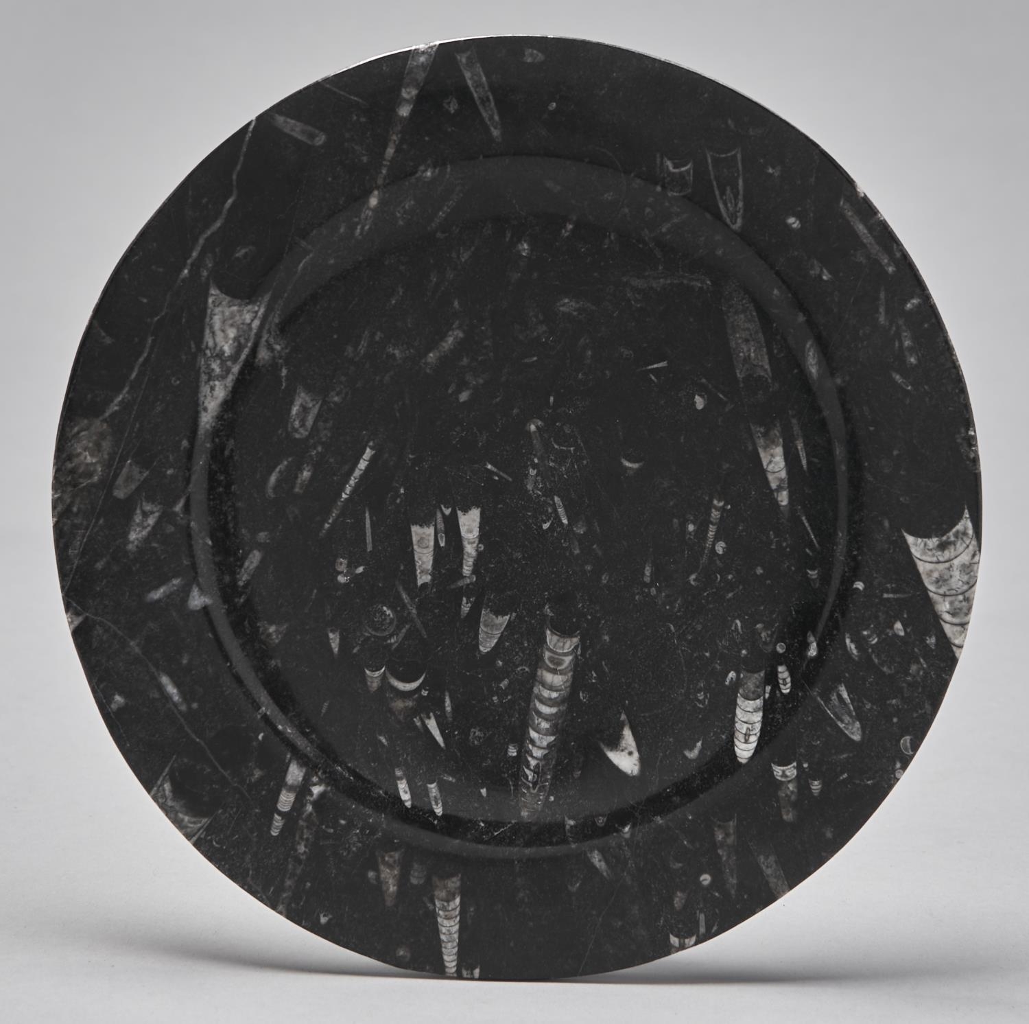 An orthoceras fossil marble plate, 20th c, 25cm diam