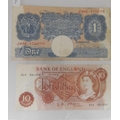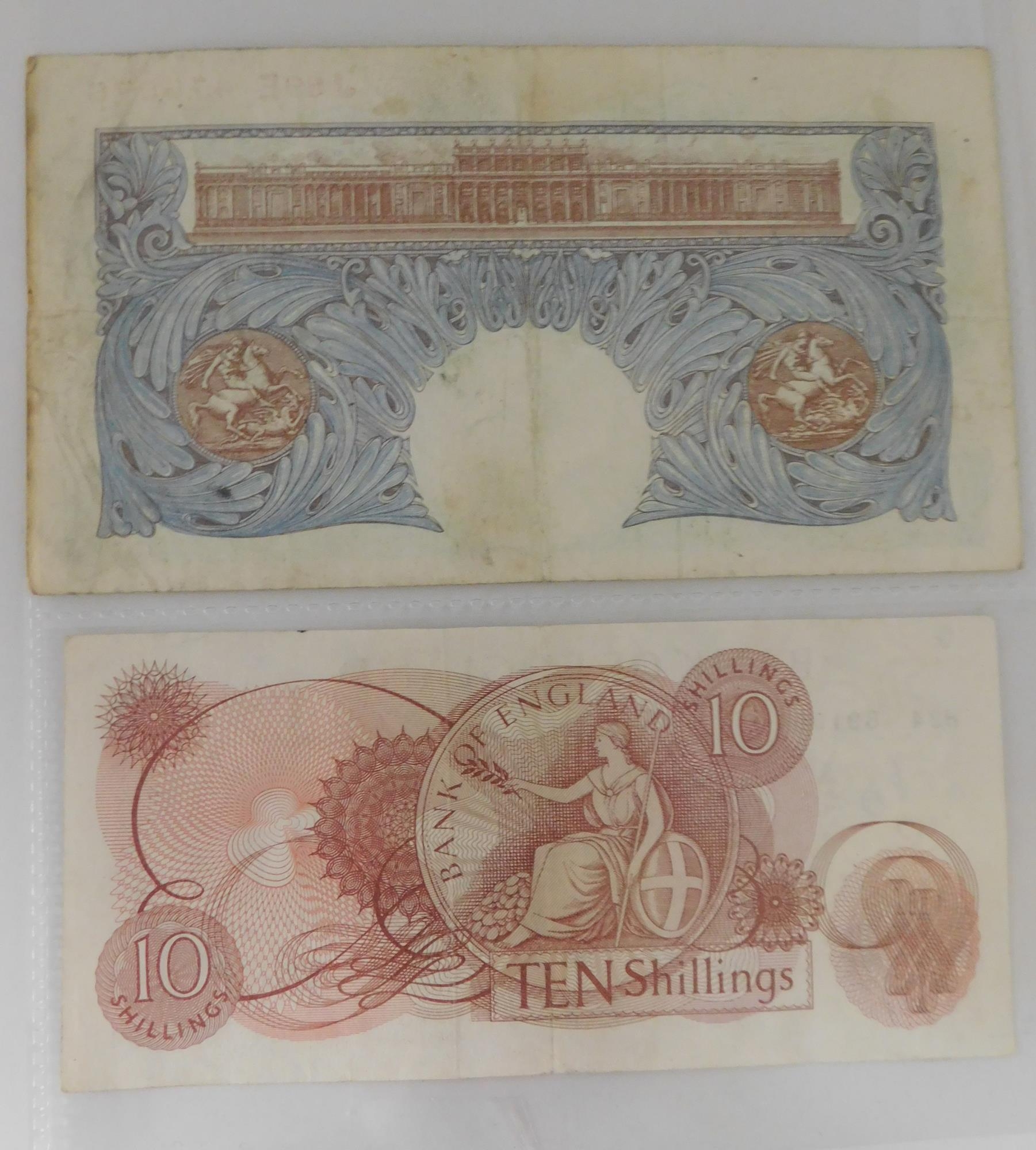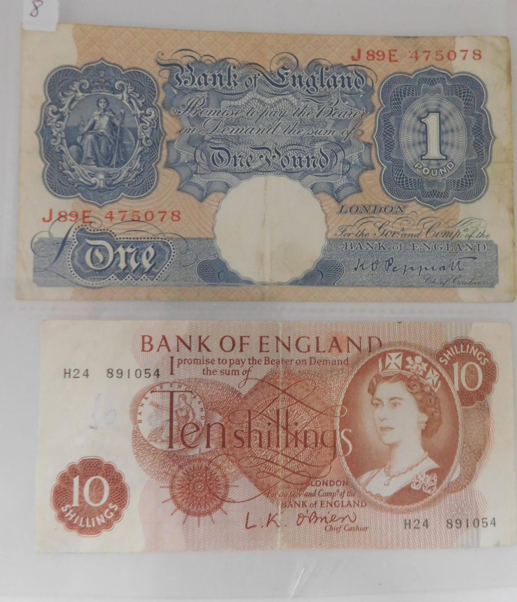 1955 O'Brien 10/- banknote and 1940 Wartime peppiatt £1 banknote