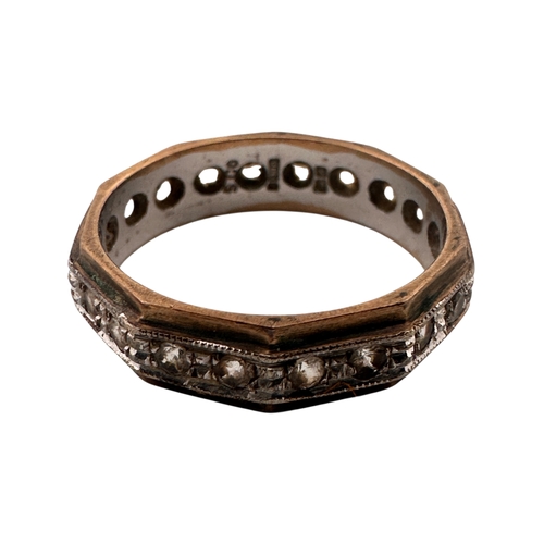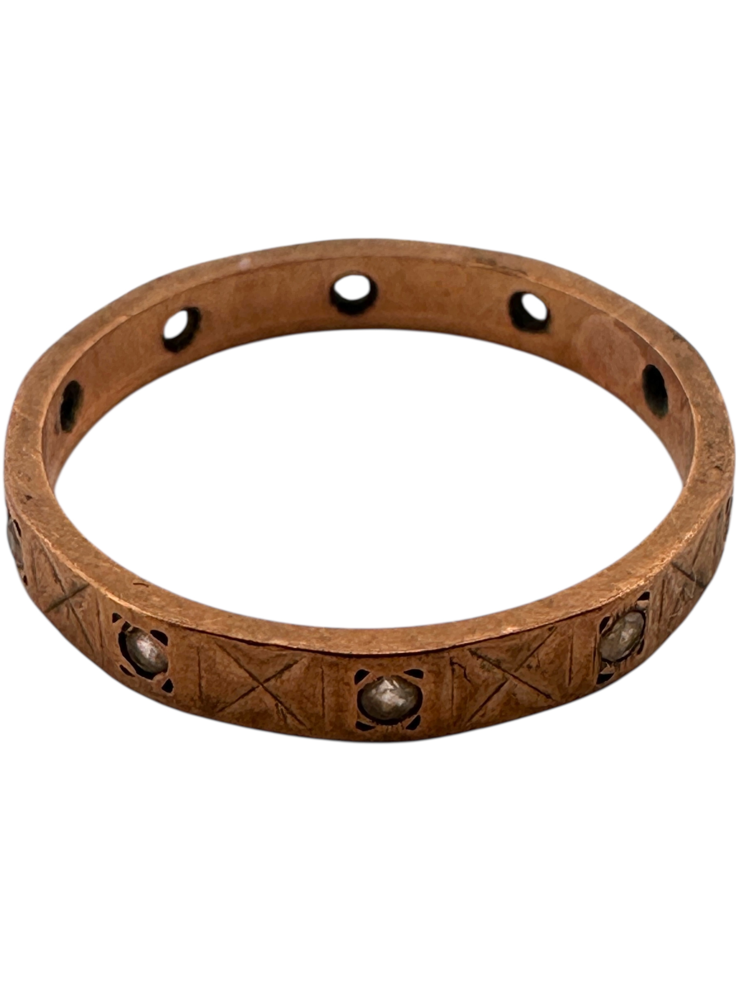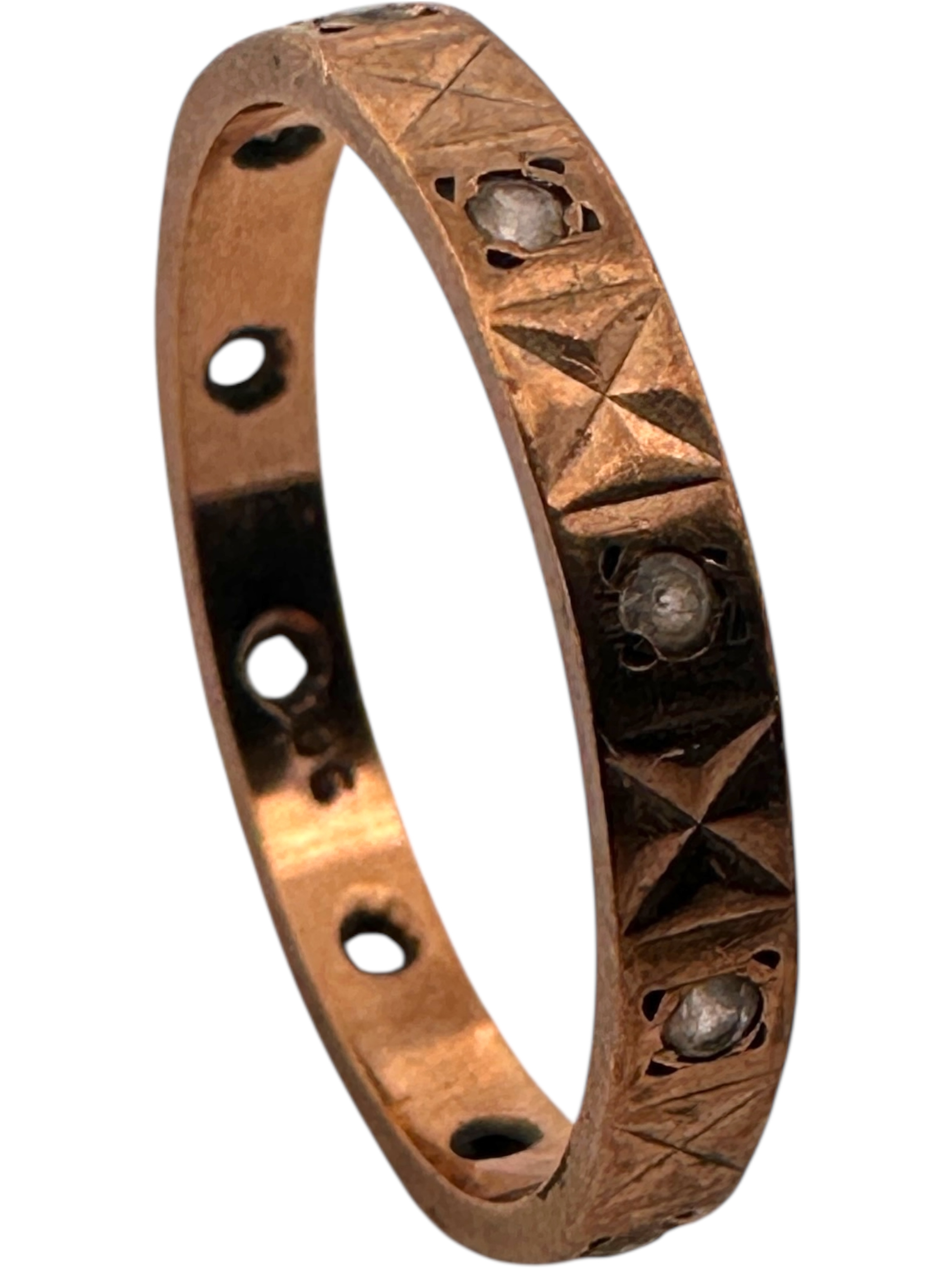 Nine Carat Gold Band Ring set with Small White Stones. Size N. 1.68g