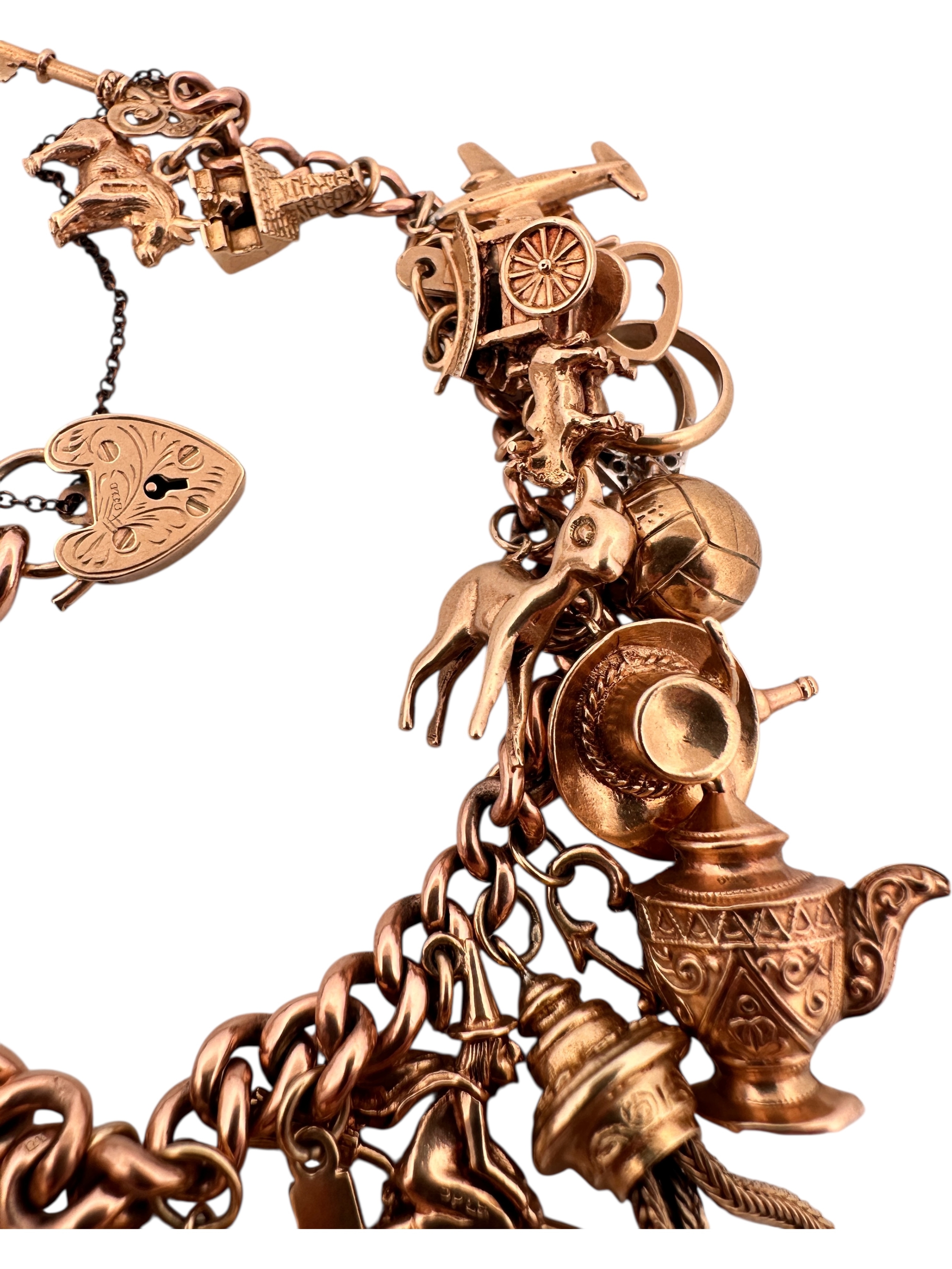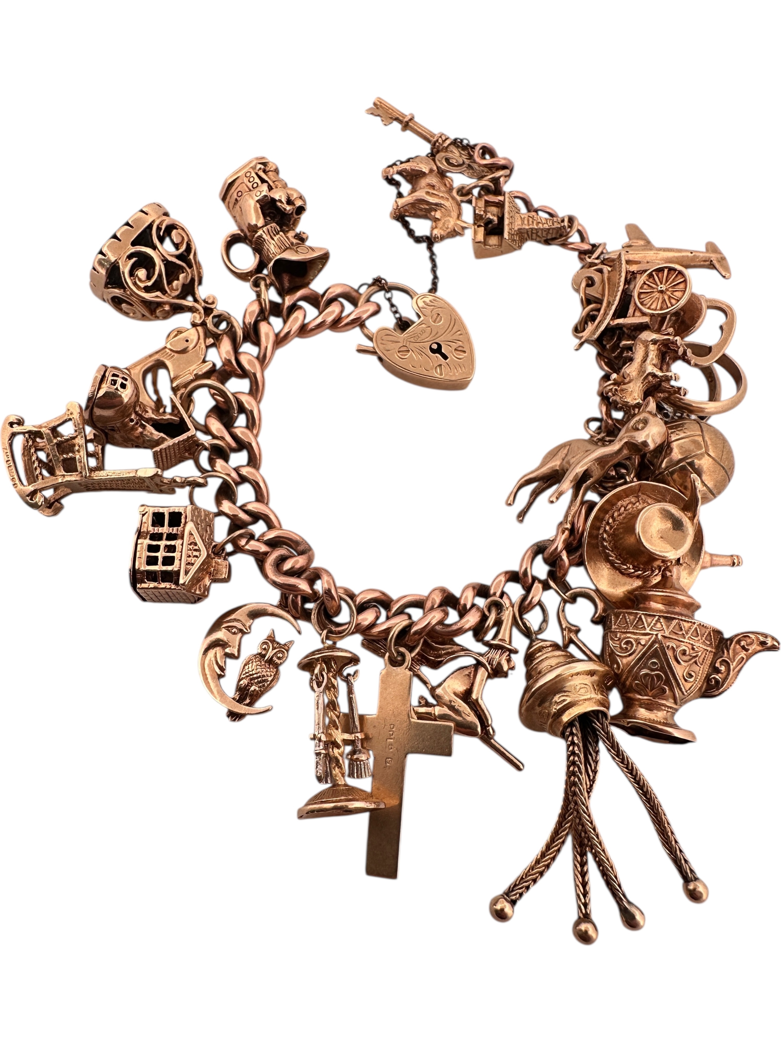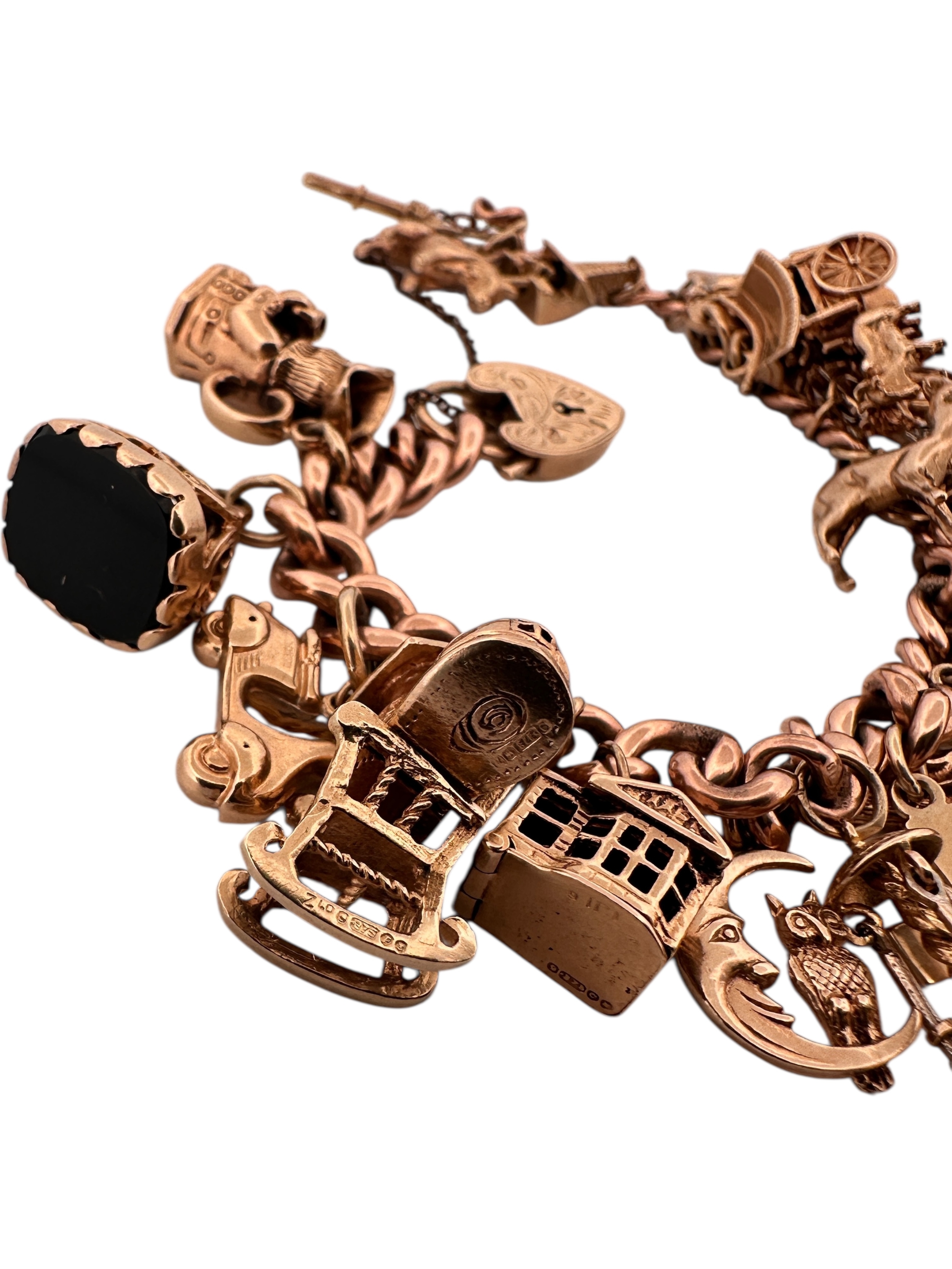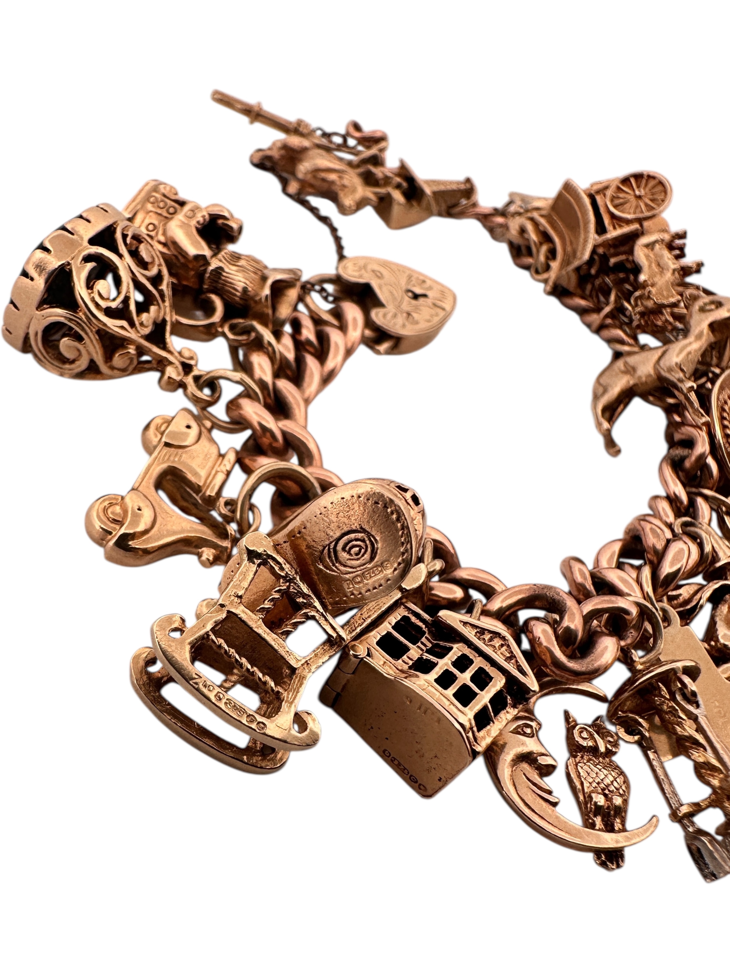 Nine Carat Gold Charm Bracelet with 25 Charms. 78.2g