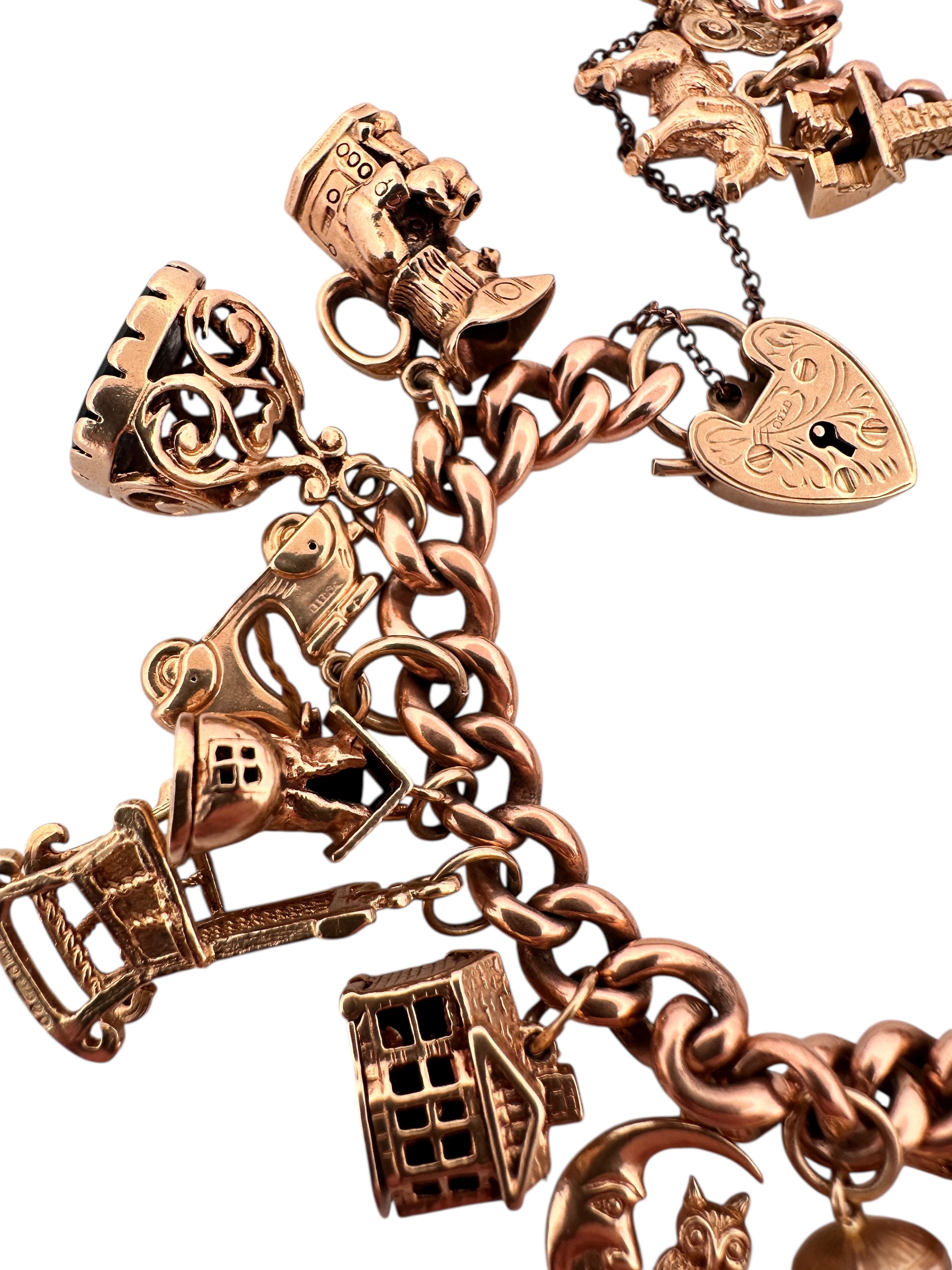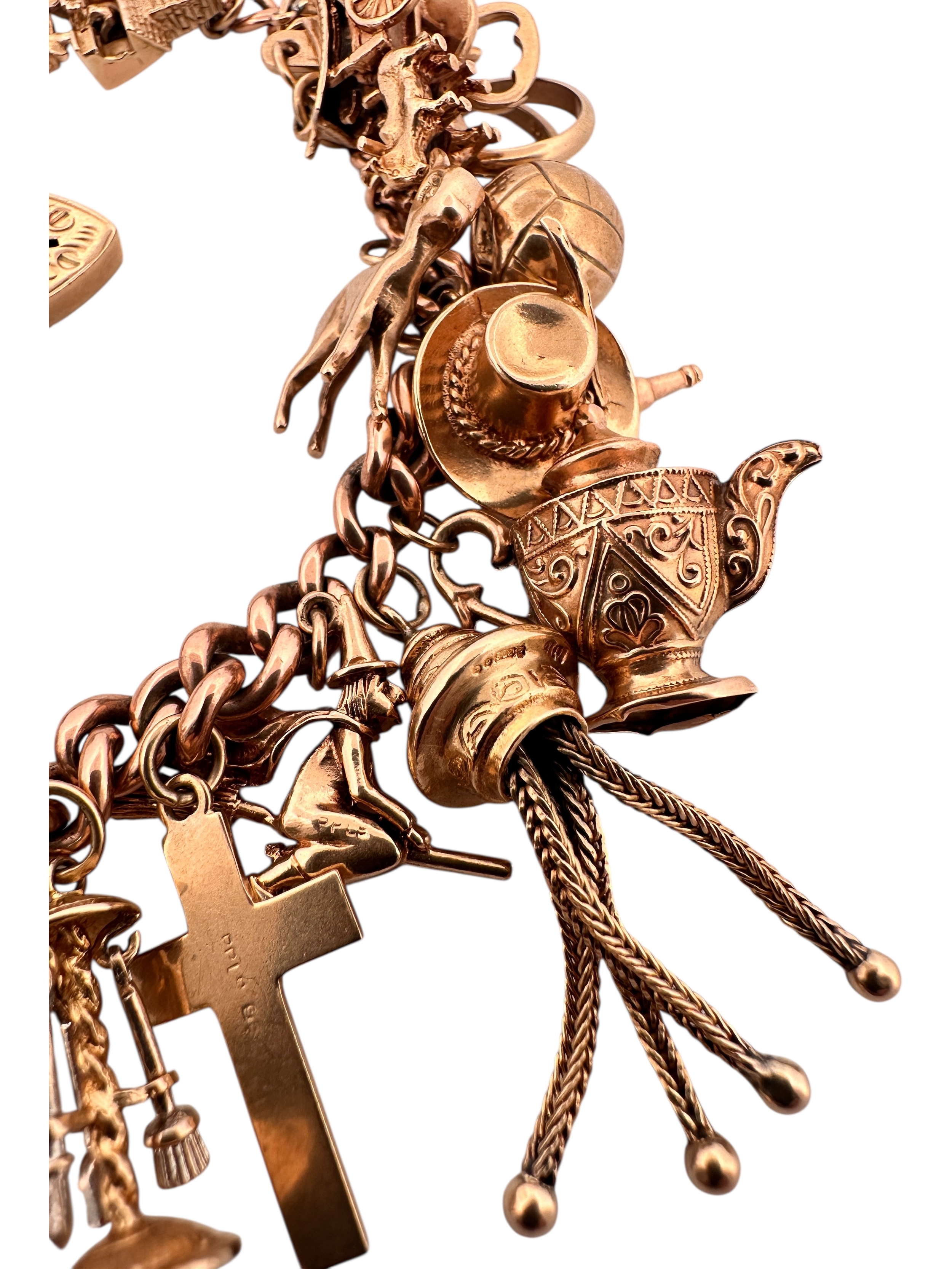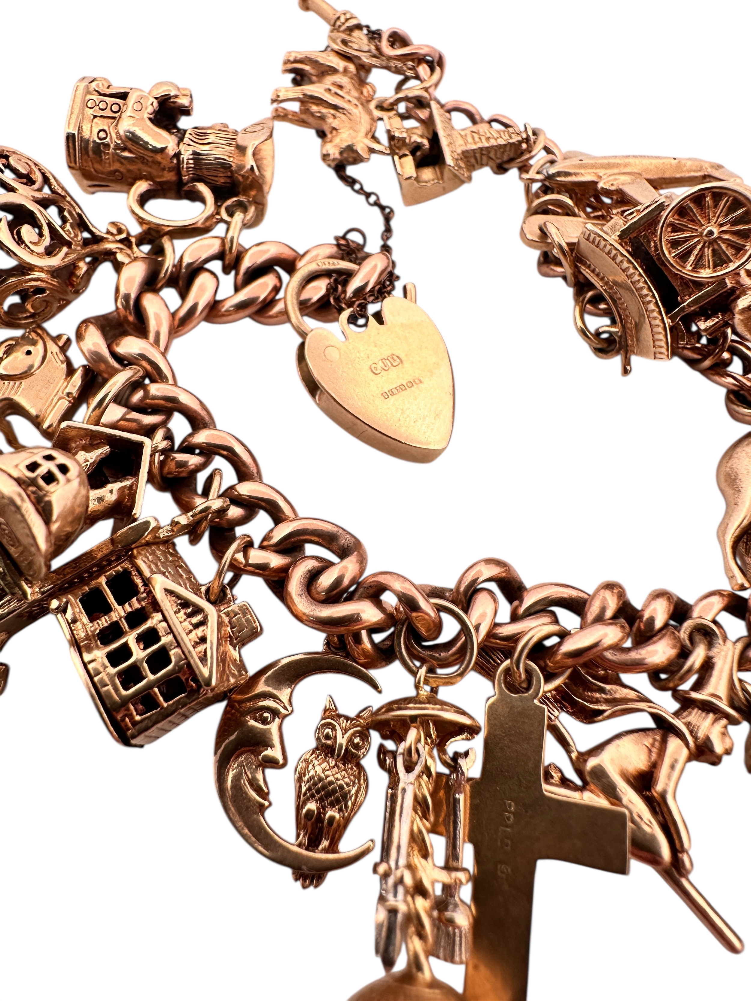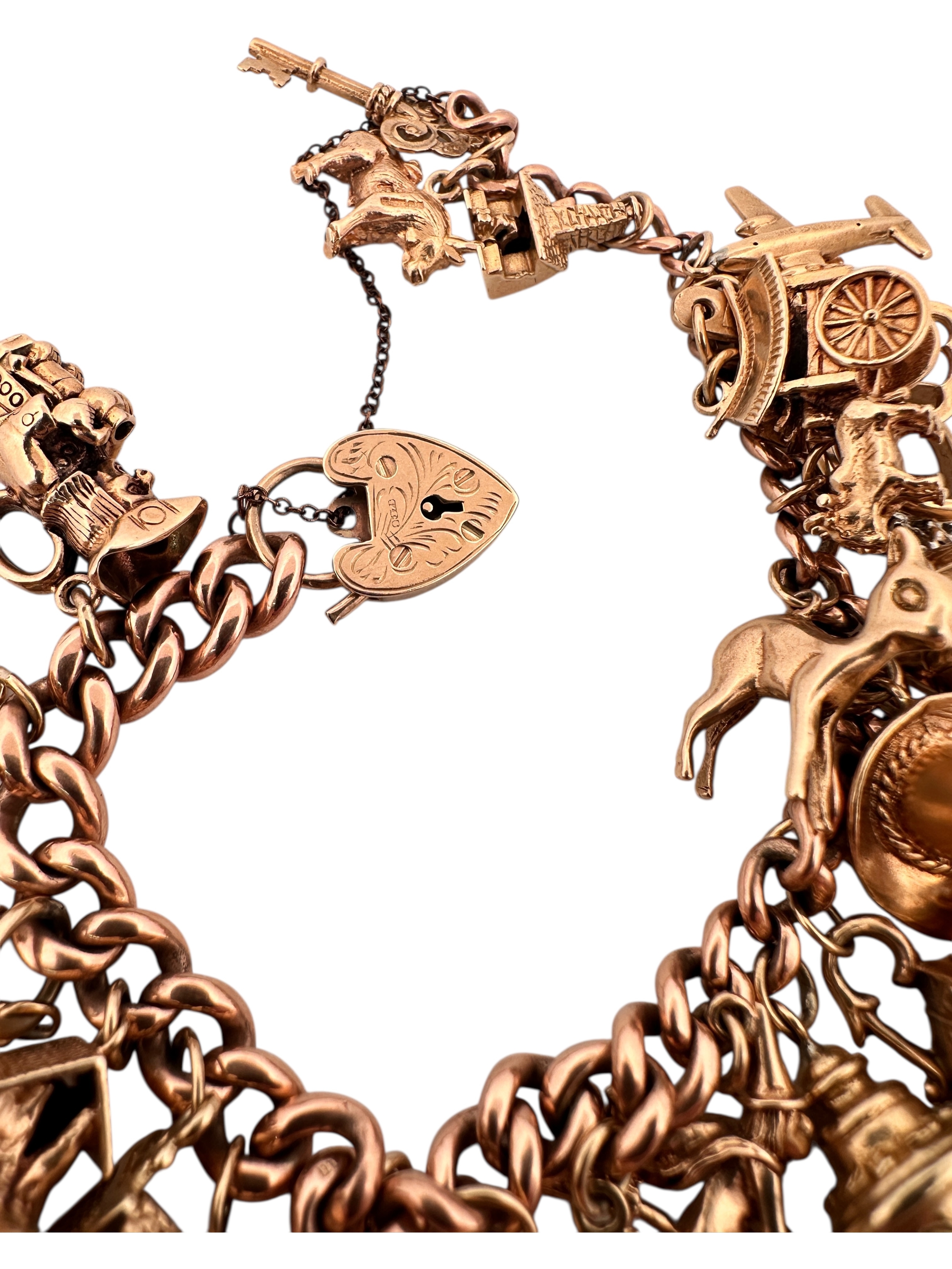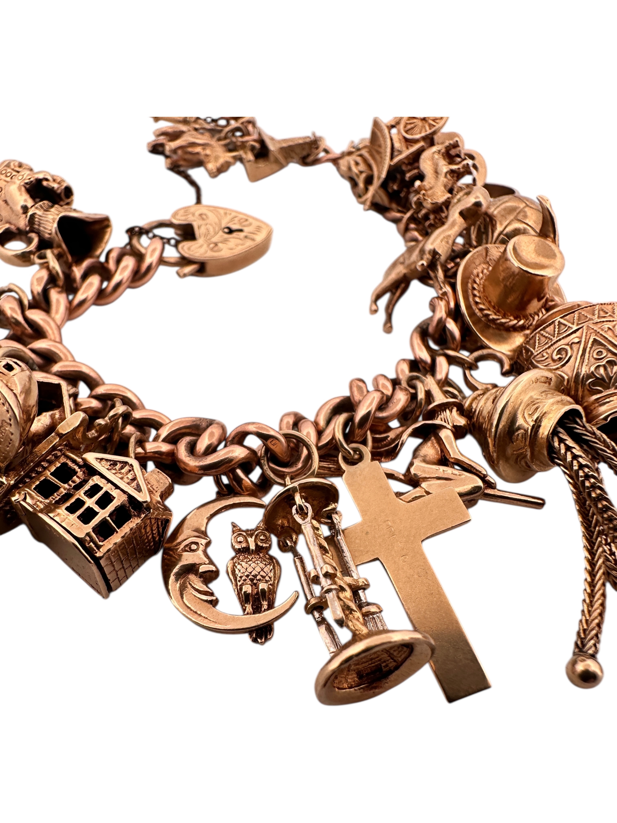 Nine Carat Gold Charm Bracelet with 25 Charms. 78.2g