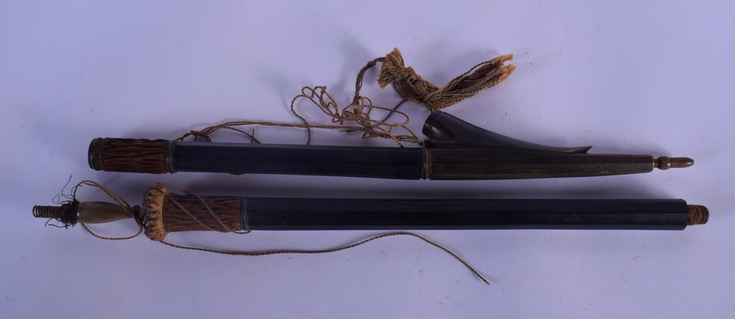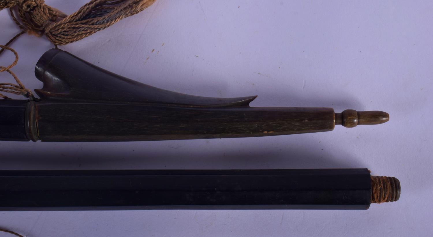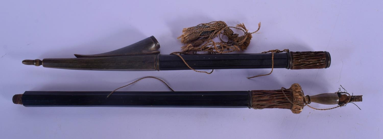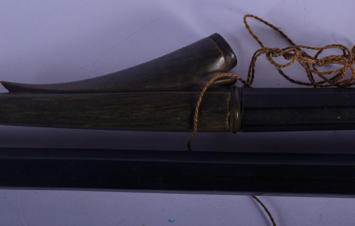 A VERY UNUSUAL 19TH CENTURY TRIBAL CARVED RHINOCEROS HORN SPEAR possibly Polynesian. 60 cm long.