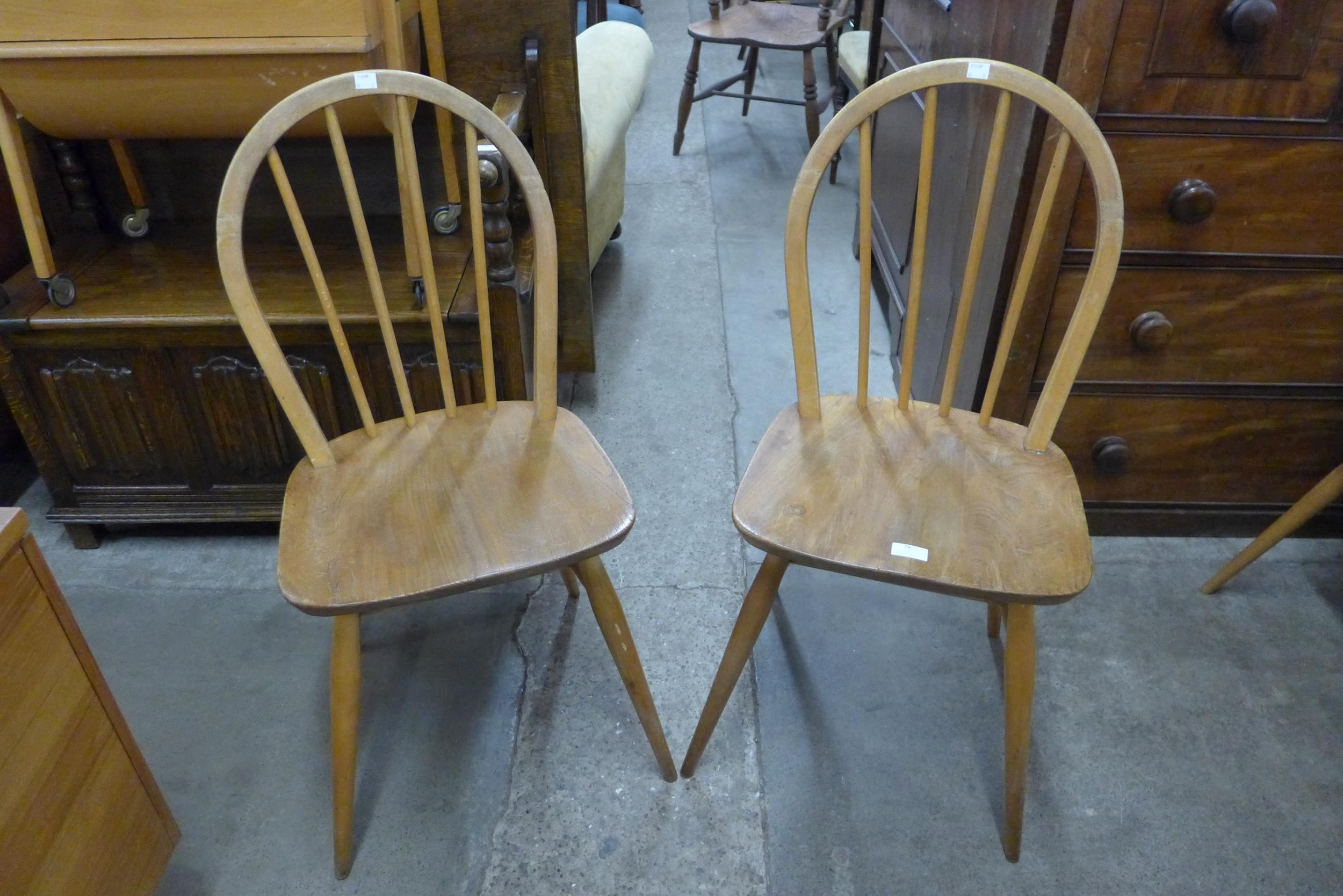 A pair of Ercol Blonde elm and beech Windsor chairs