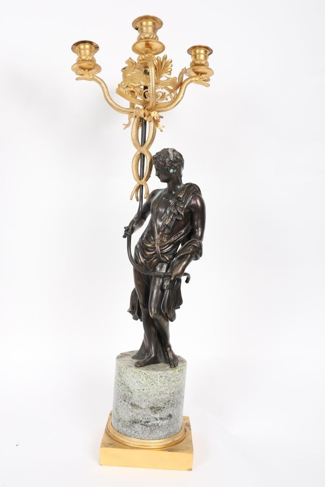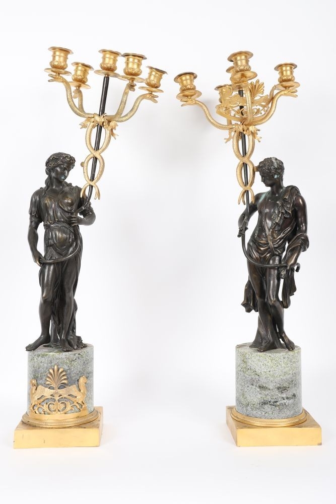 PAIR EMPIRE STYLE BRONZE & ORMOLU FIGURAL CANDELABRAS