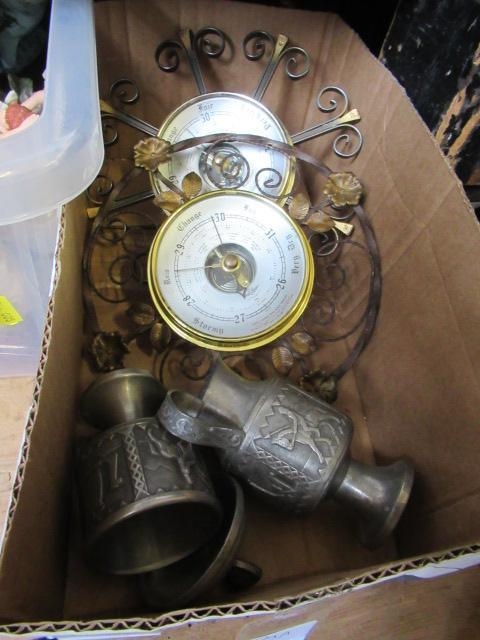 TWO BAROMETERS AND TWO PEWTER ITEMS