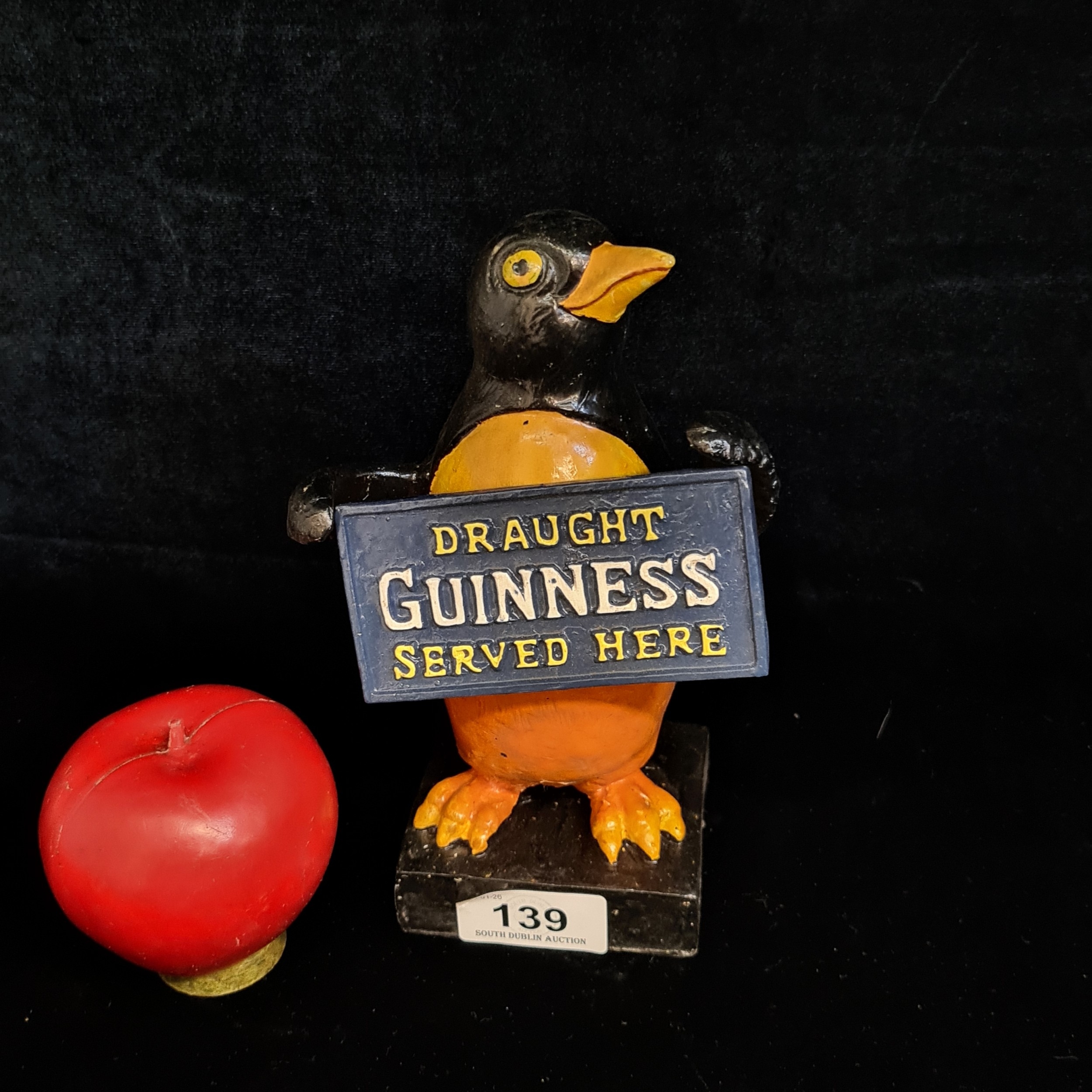 A charming advertising Penguin sculpture for Guinness sat atop a square plinth base.