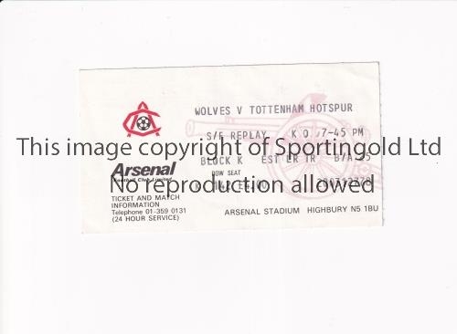 TOTTENHAM HOTSPUR Ticket for the away Semi Final Replay v Wolves at Arsenal 15/4/1981. Generally good