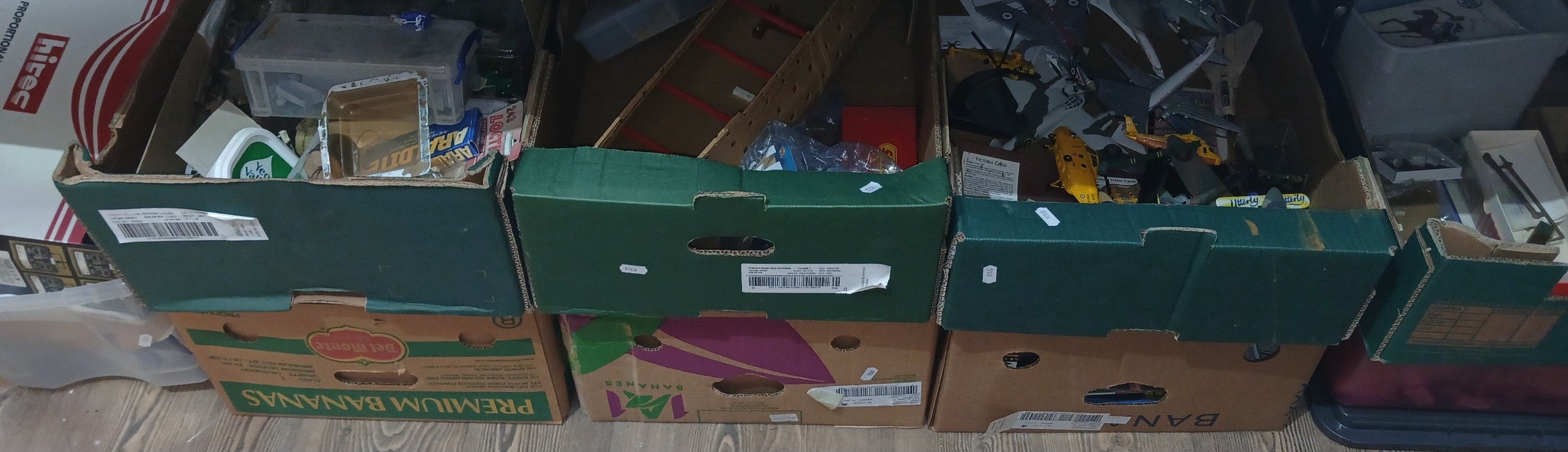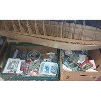 Nine boxes of mainly model kit spares and part built models, magazines etc.