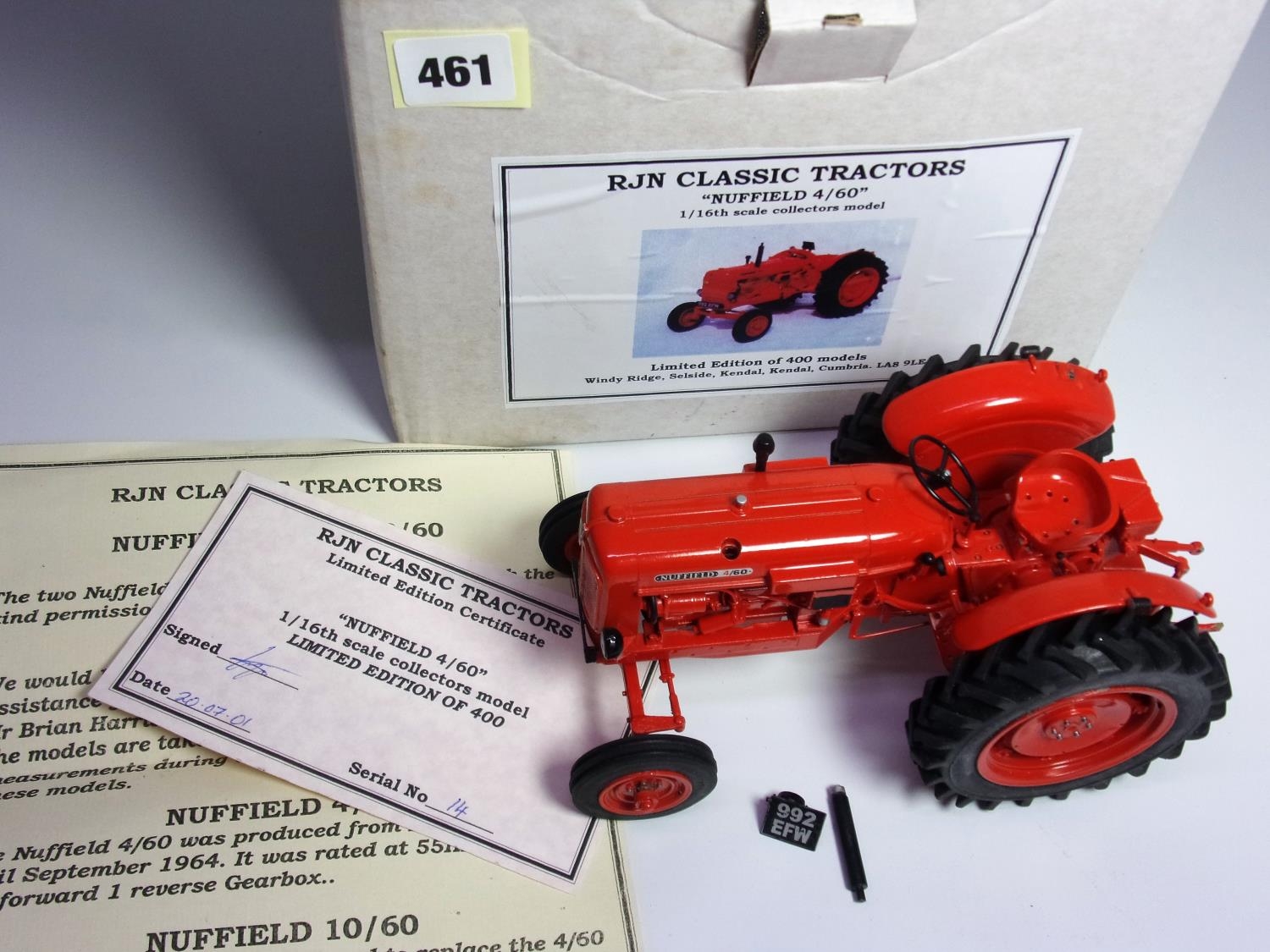 RJN CLASSIC TRACTORS NUFFIELD 4/60 ONE 16TH SCALE MODEL LIMITED EDITION OF 400 SERIAL NUMBER 14 OF 400