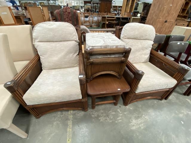 4 Piece conservatory suite (2 chairs 69W cm, coffee table 44H 97W 51D cm & footstool 44H 65W 41D cm)