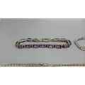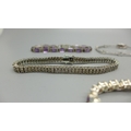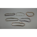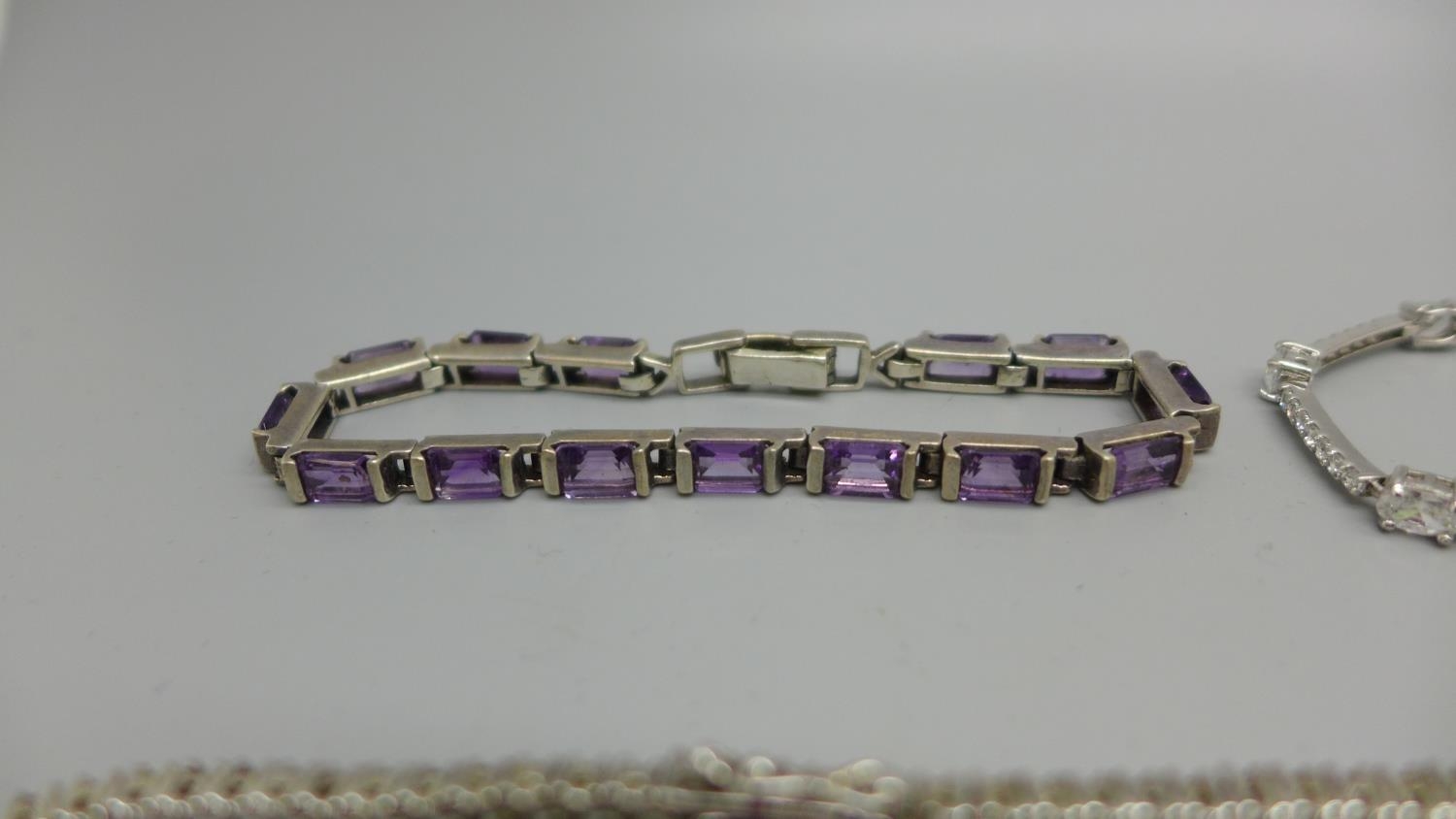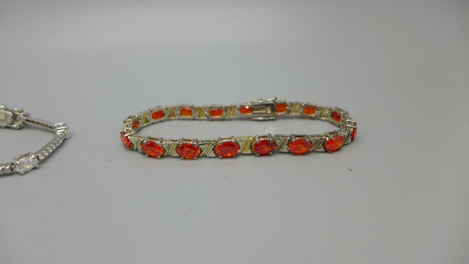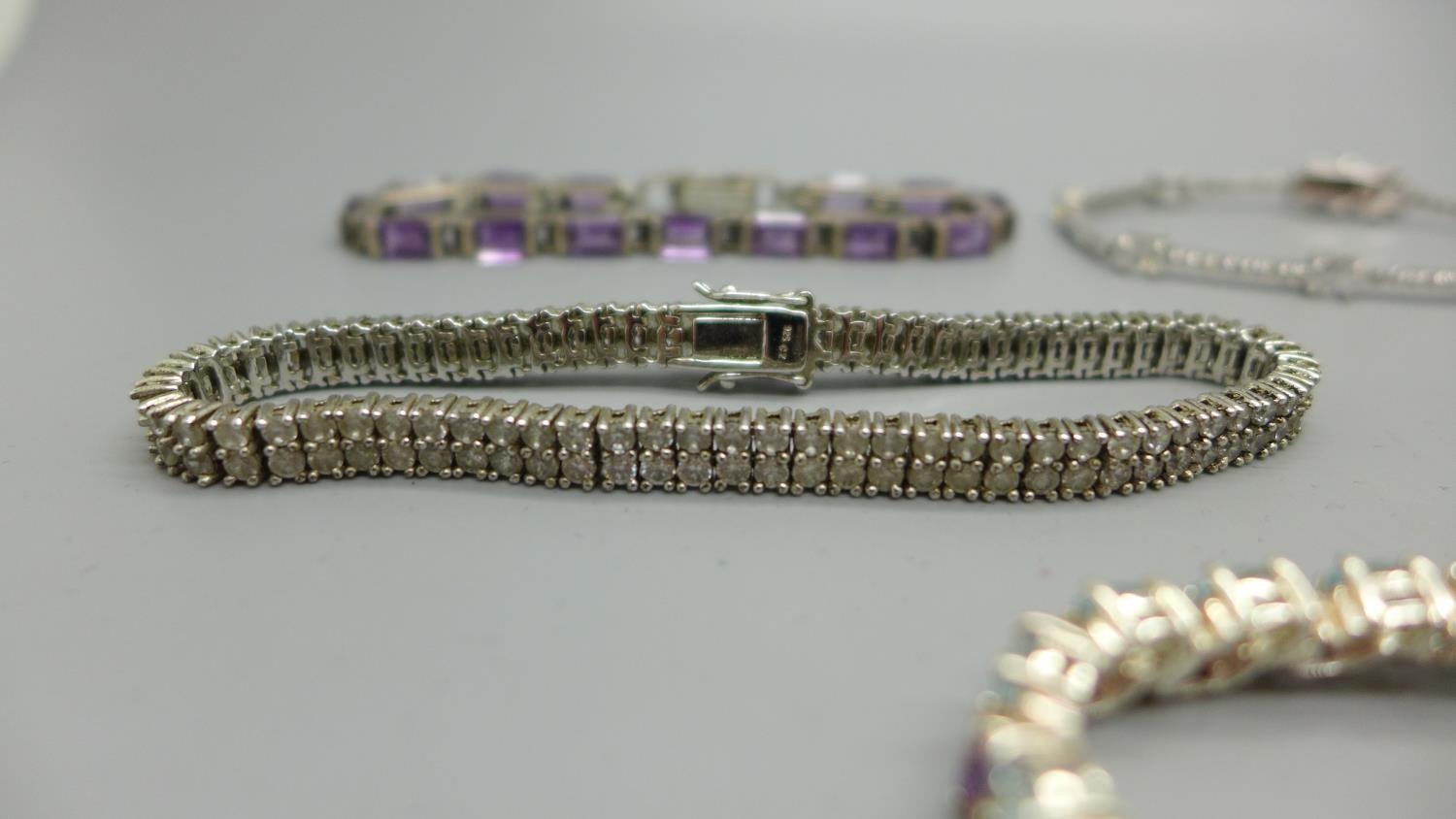 Five silver bracelets set with gemstones