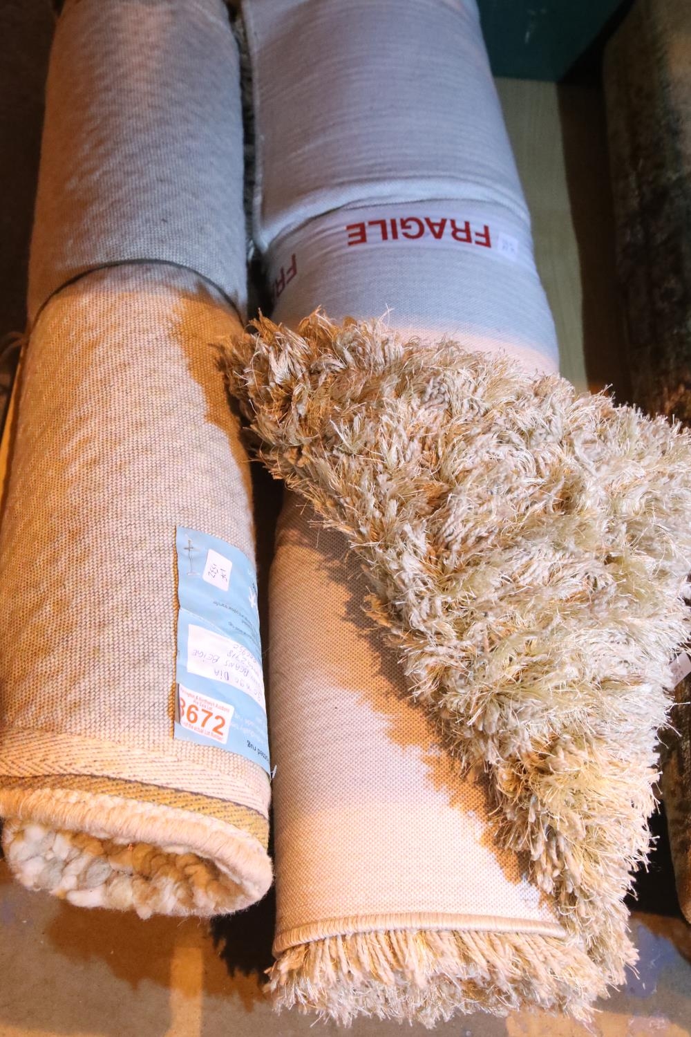 Two large shaggy floor rugs, one circular, one rectangular. Not available for in-house P&P