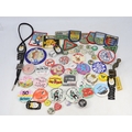 Selection of vintage and later pin badges, hostels together with patches etc