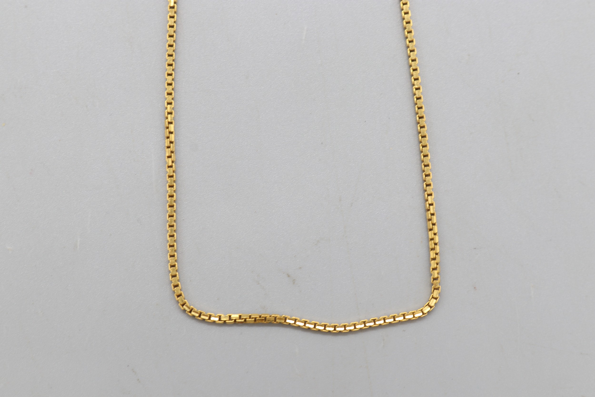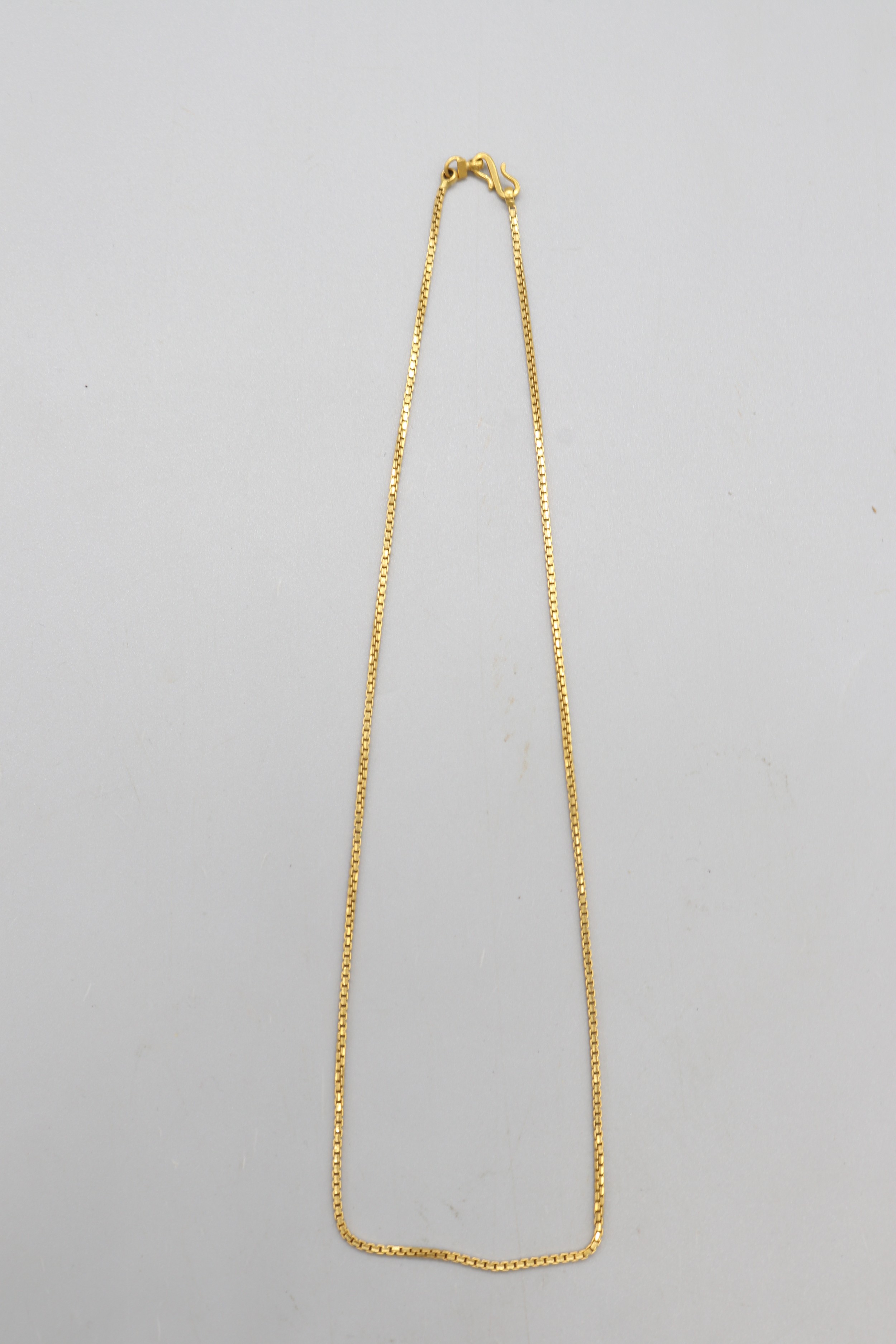 Stamped 97.6 Fineness yellow box link chain with continental style crook clasp Length 19" long, weight 10.44g