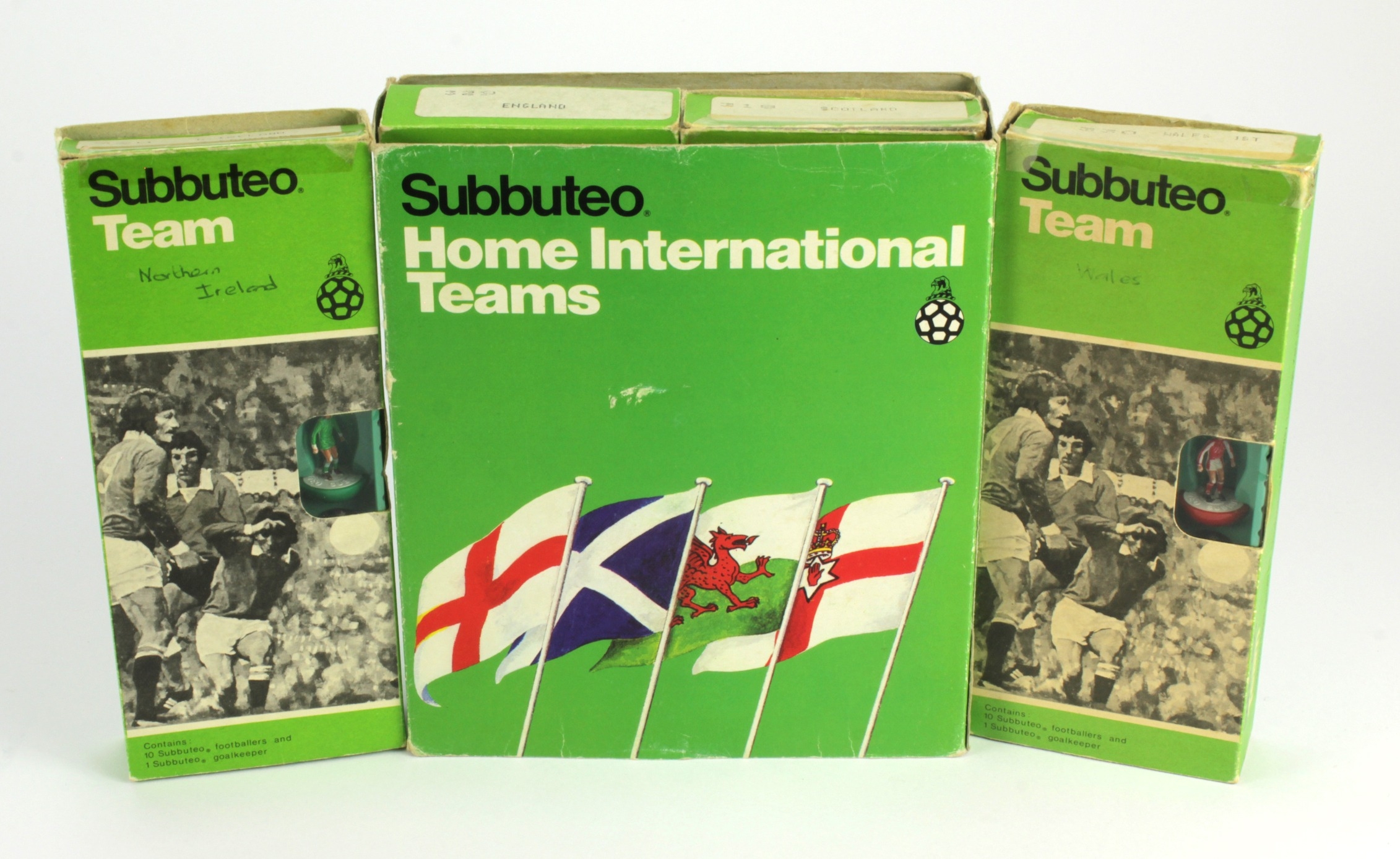 Subbuteo Home International Teams box set, comprising England, Scotland, Wales & Northern Ireland, contained in original boxes & packaging