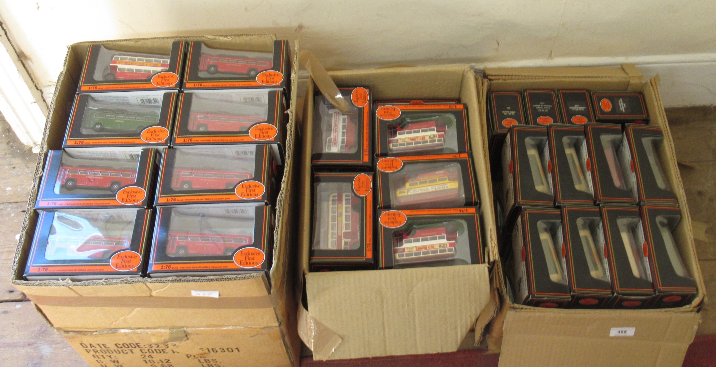 Three boxes containing a collection of Exclusive First Edition buses etc., mainly 1/76th scale