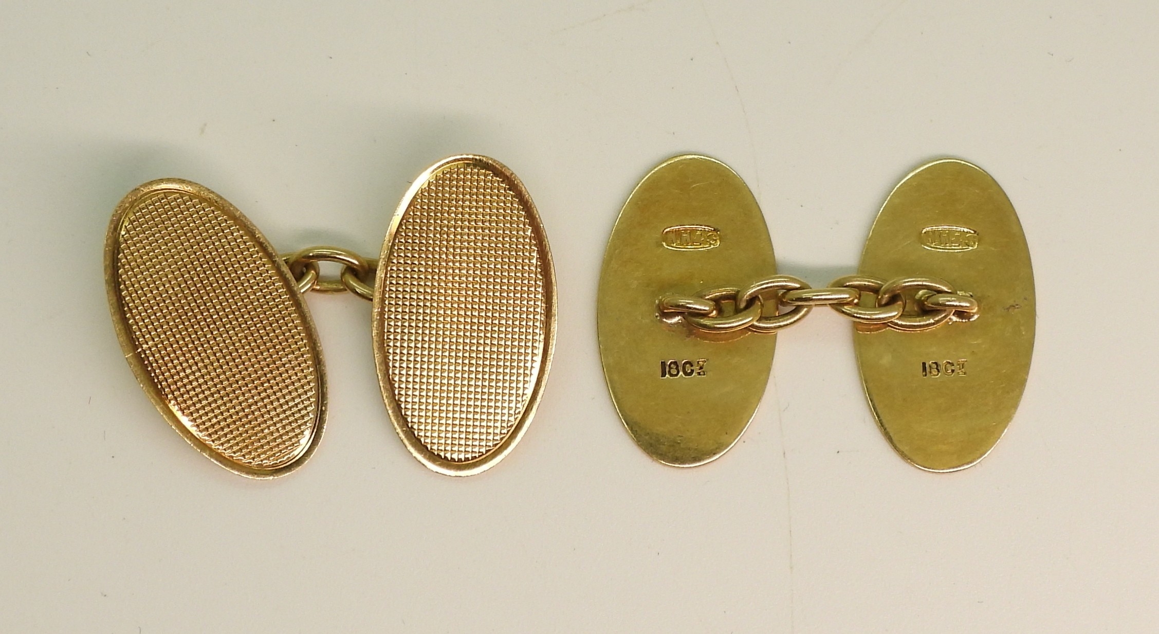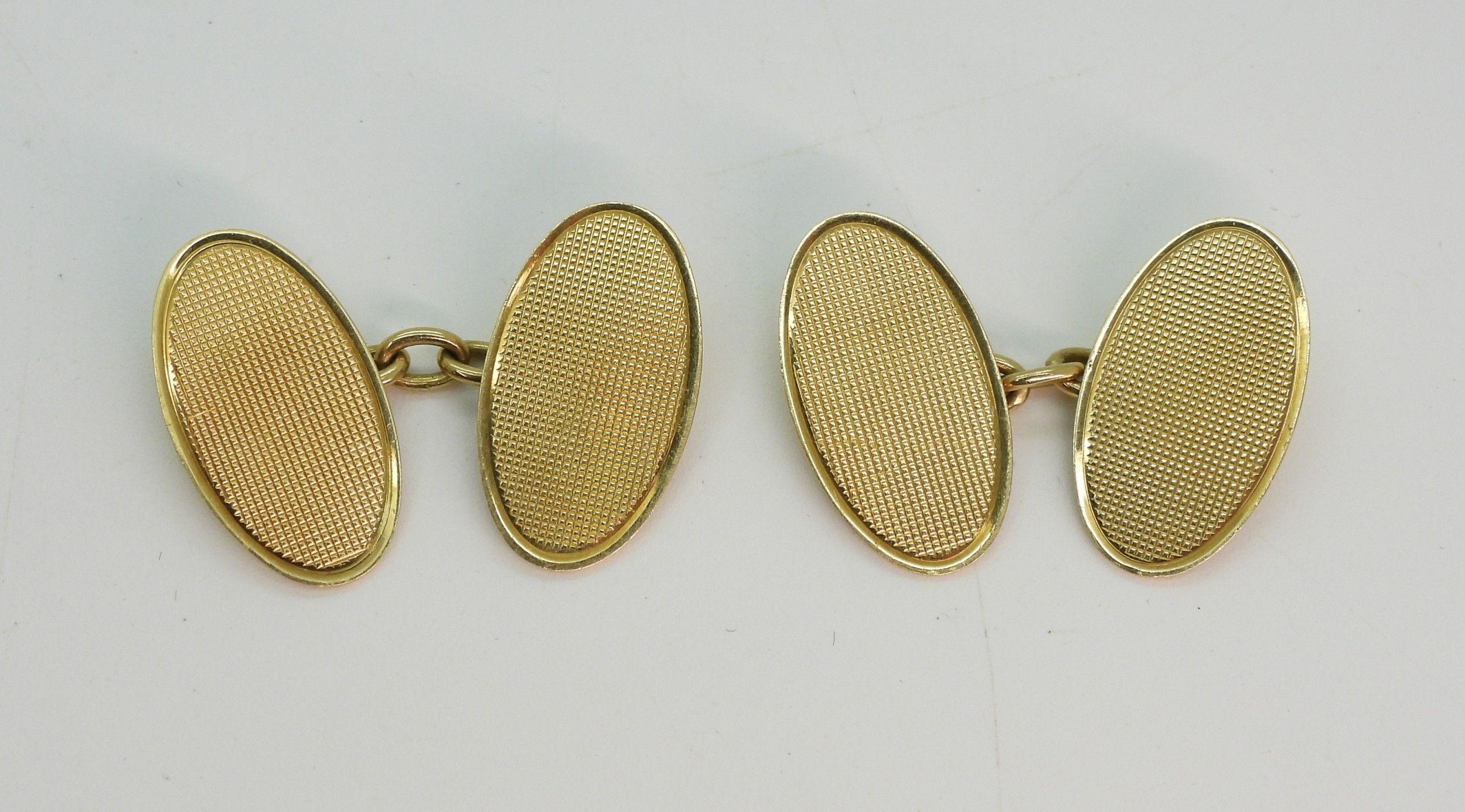 A pair of 18ct gold cross hatch pattern engraved cufflinks weight 6.8gms