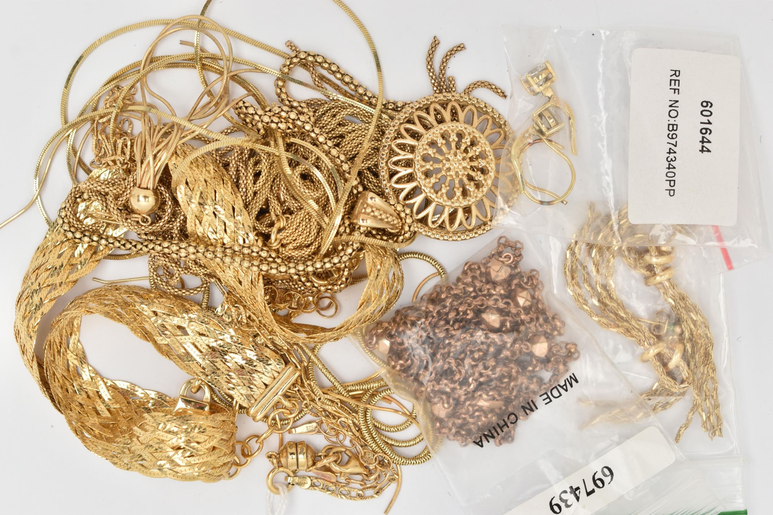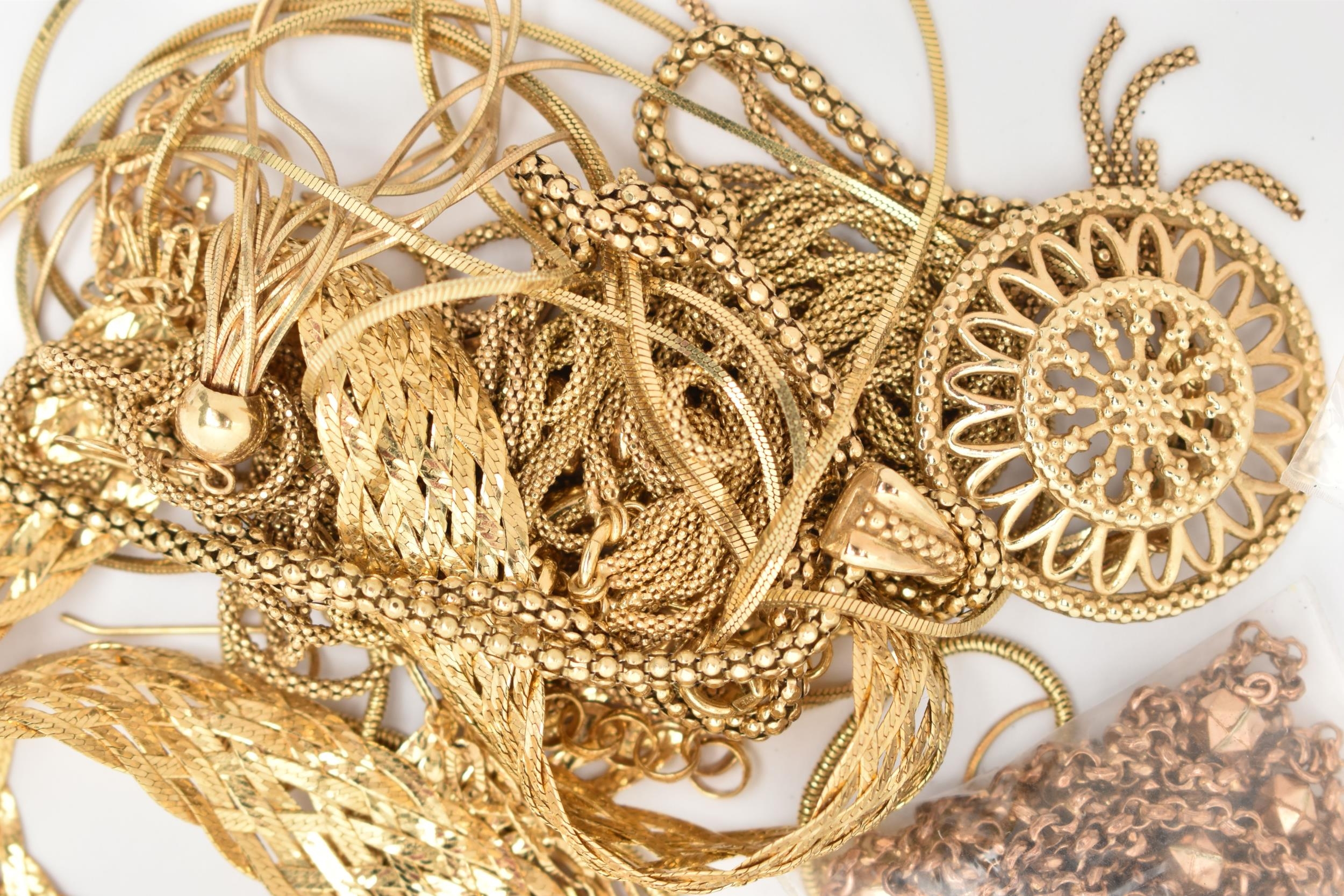 A SELECTION OF GOLD PLATED JEWELLERY, to include necklaces and earrings, most stamped 925 Italy, approximate total weight 139.6 grams