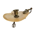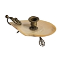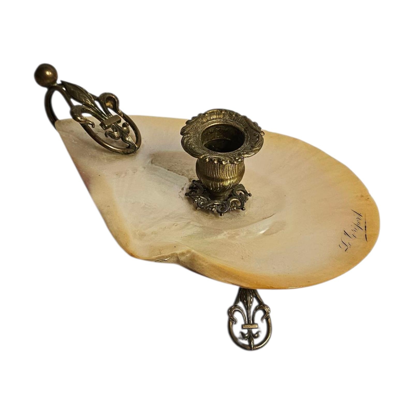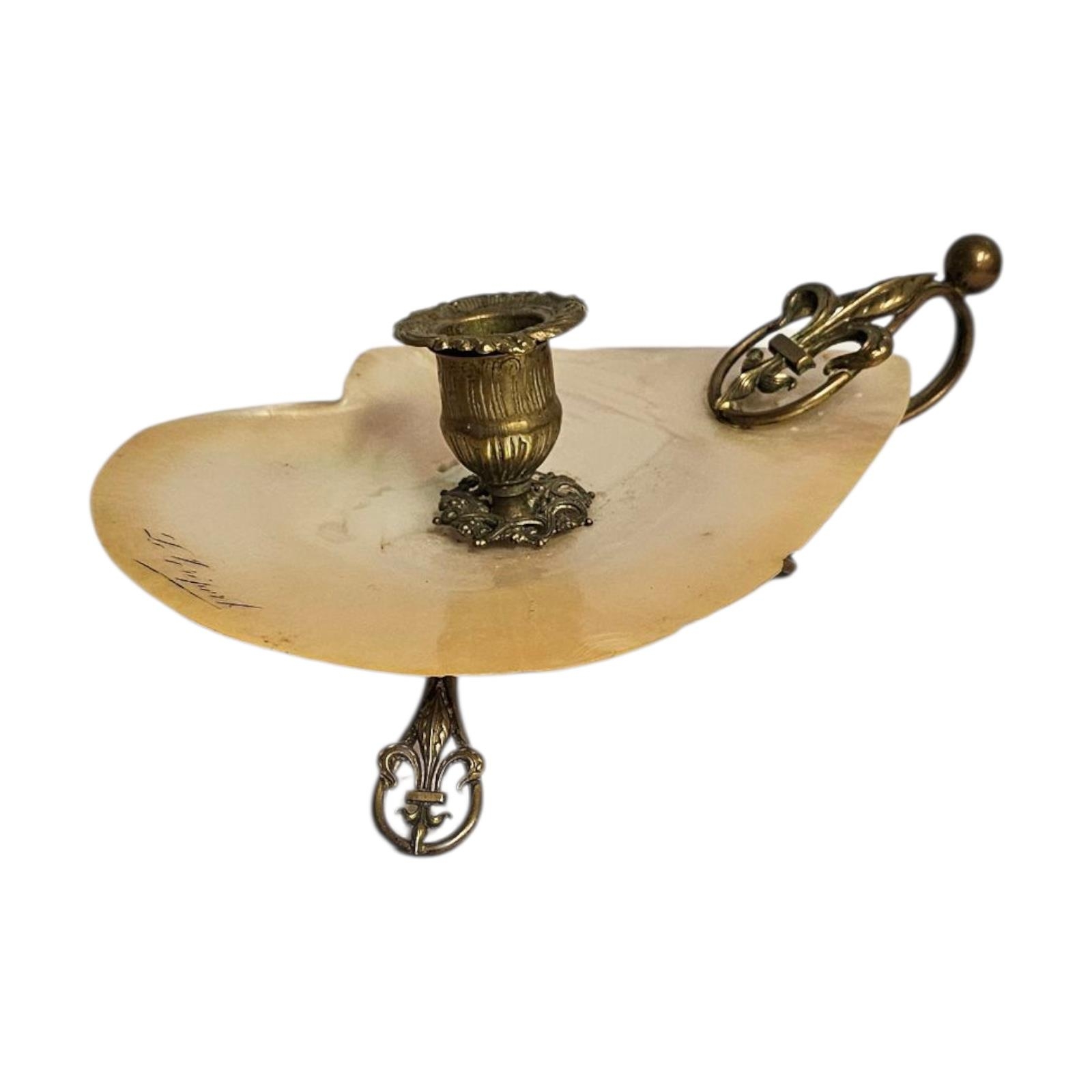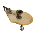 A 19TH CENTURY FRENCH GILT BRASS AND MOTHER OF PEARL CANDLESTICK