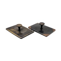 Having fleur-de-lis design to handle and tripod legs, marked ‘Le Treport’.