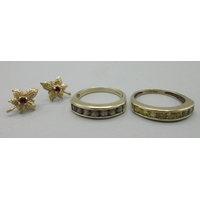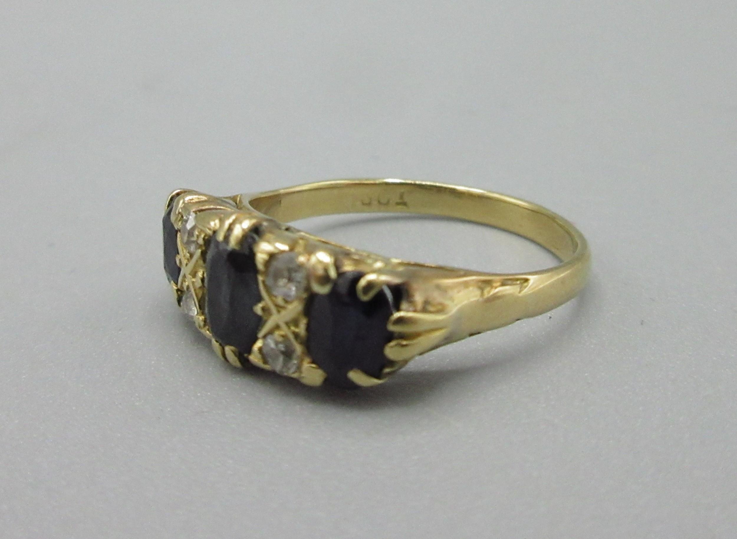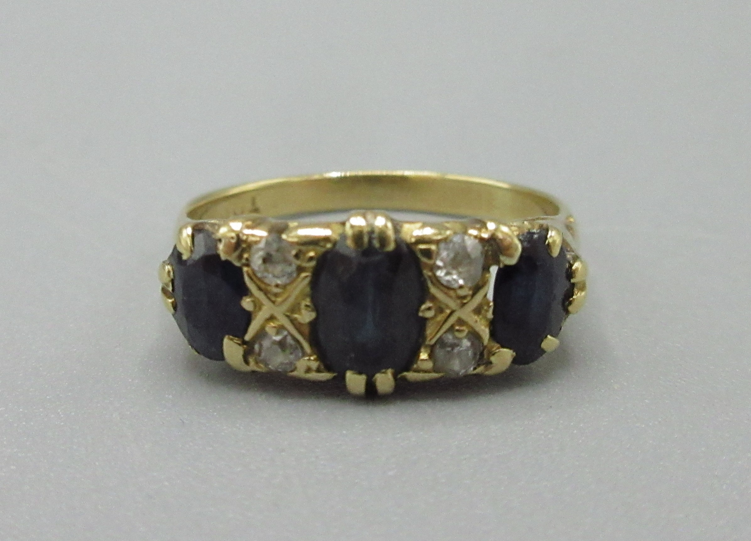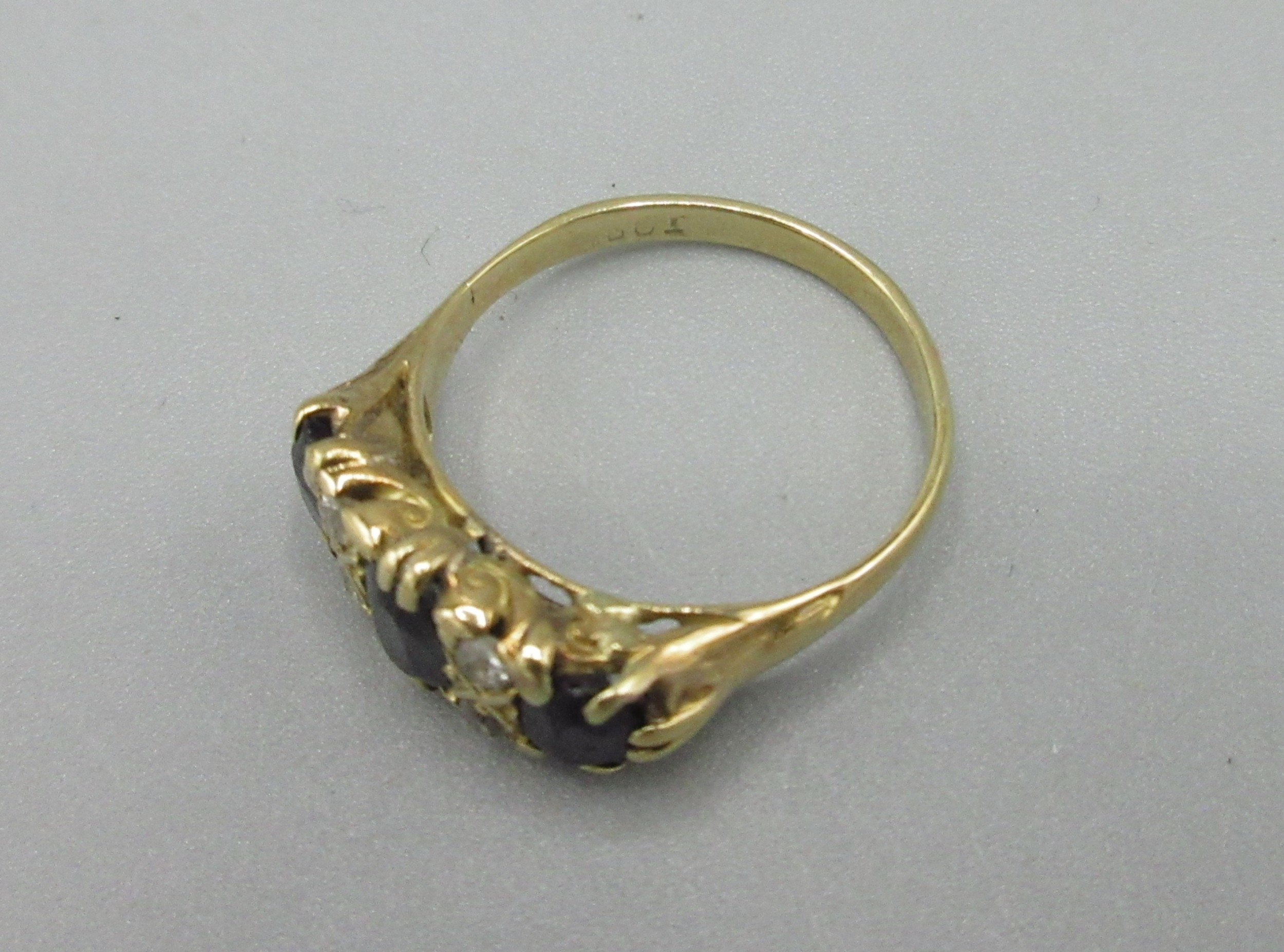 18ct yellow gold diamond and sapphire ring, stamped 18ct, size L, 3.6g