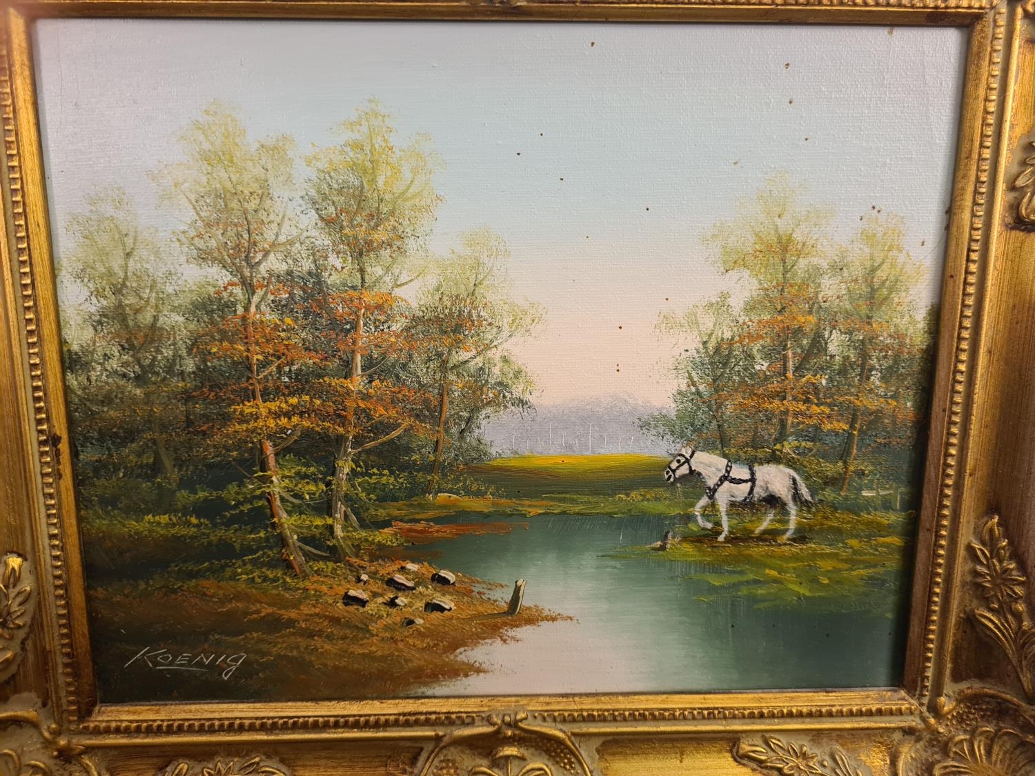Wilhelm Koenig Forest Scene Oil on Canvas 13" x 11"