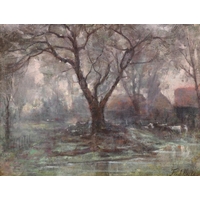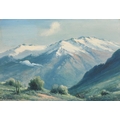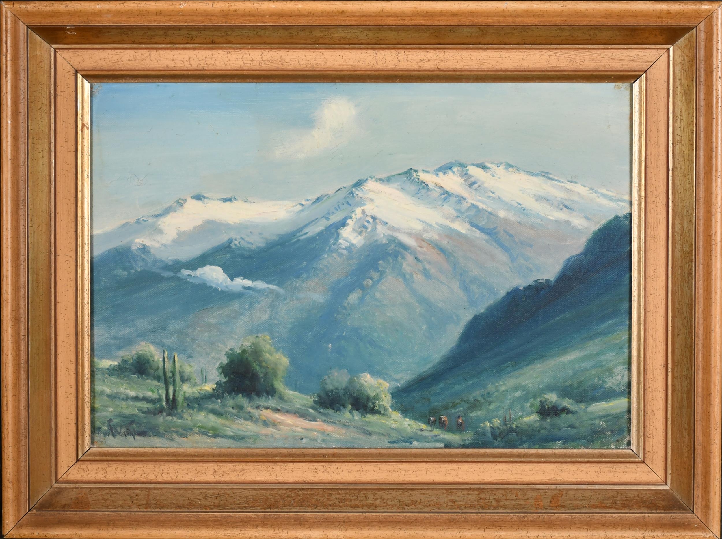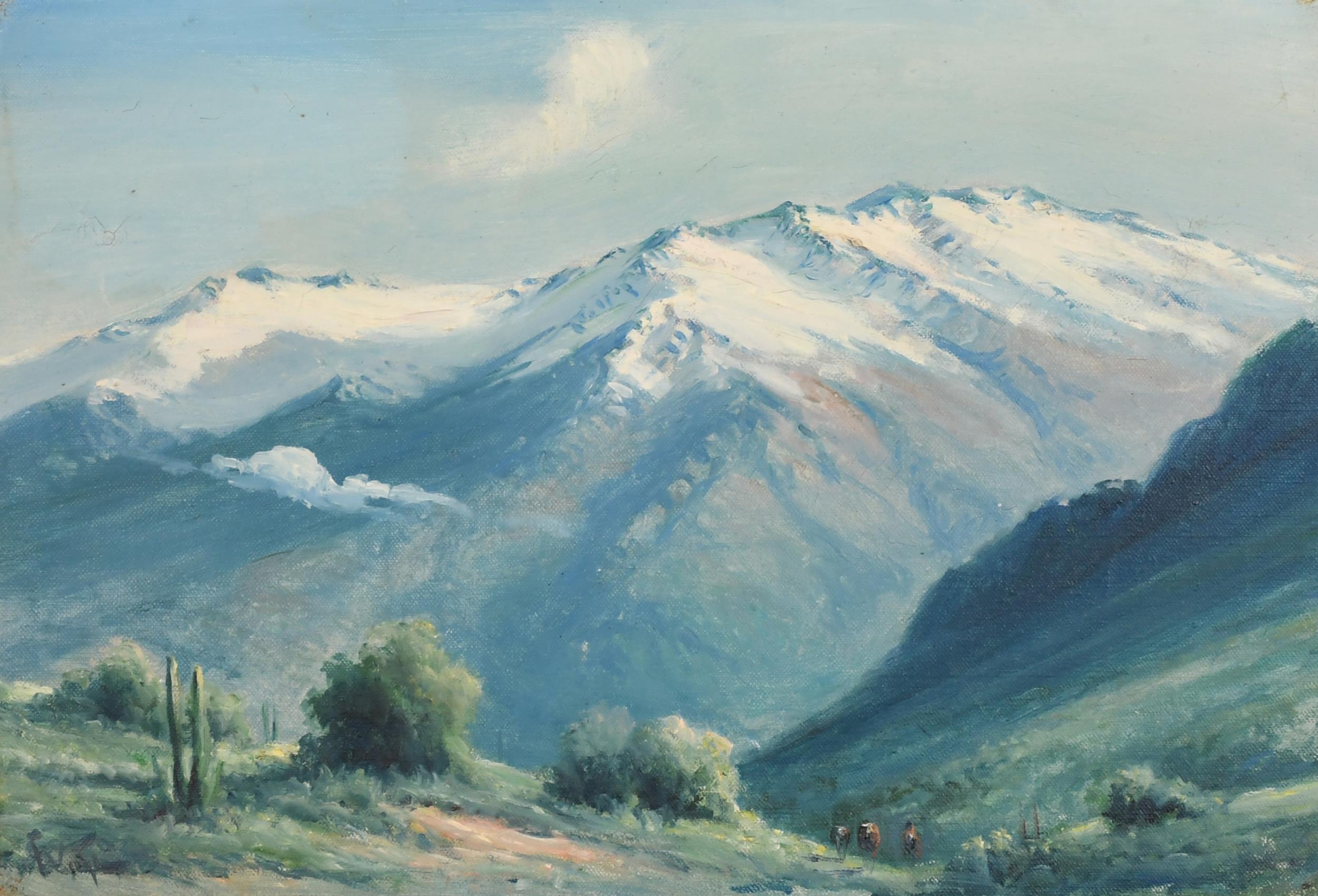 Florencio Vial (19th-20th Century) Chilean. A Mountainous Landscape, Oil on canvas, Signed, 12.5" x 18.5" (31.7 x 47cm)