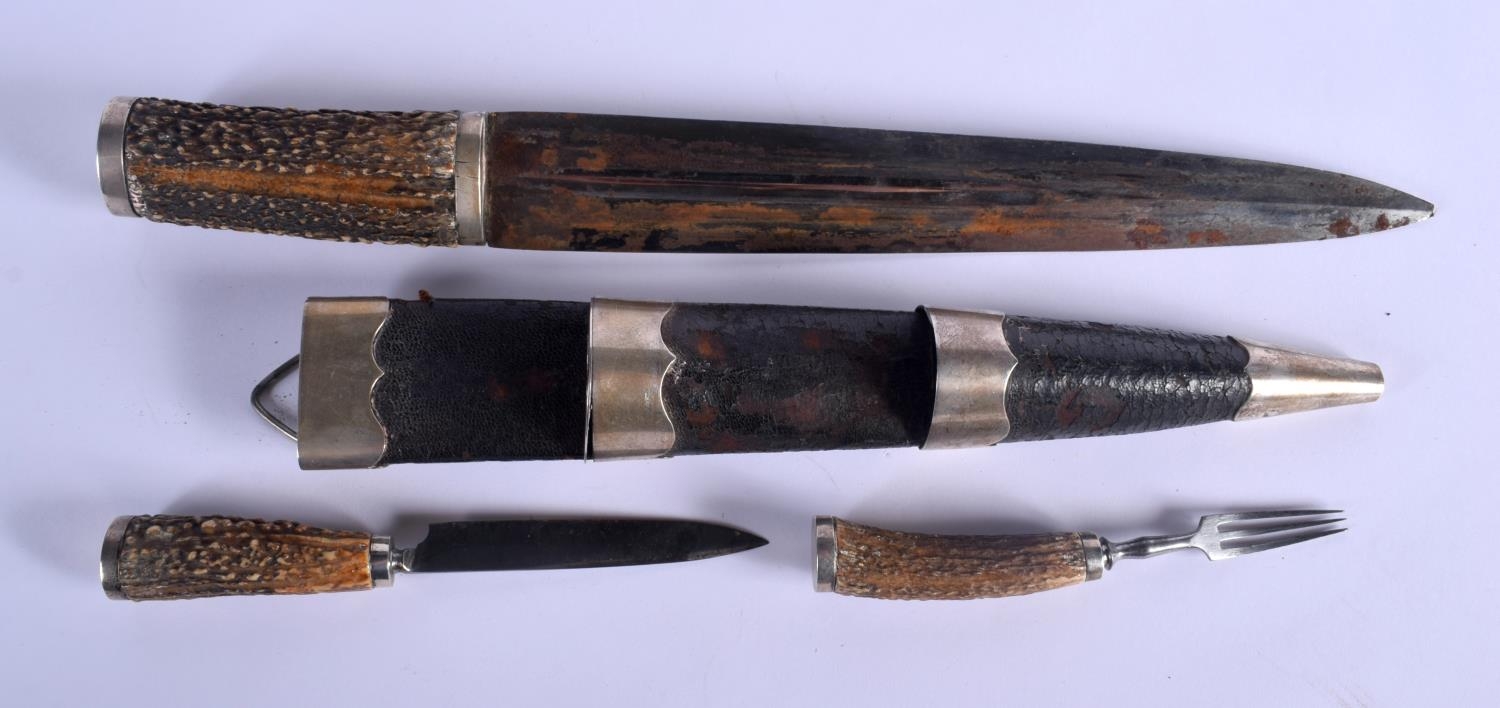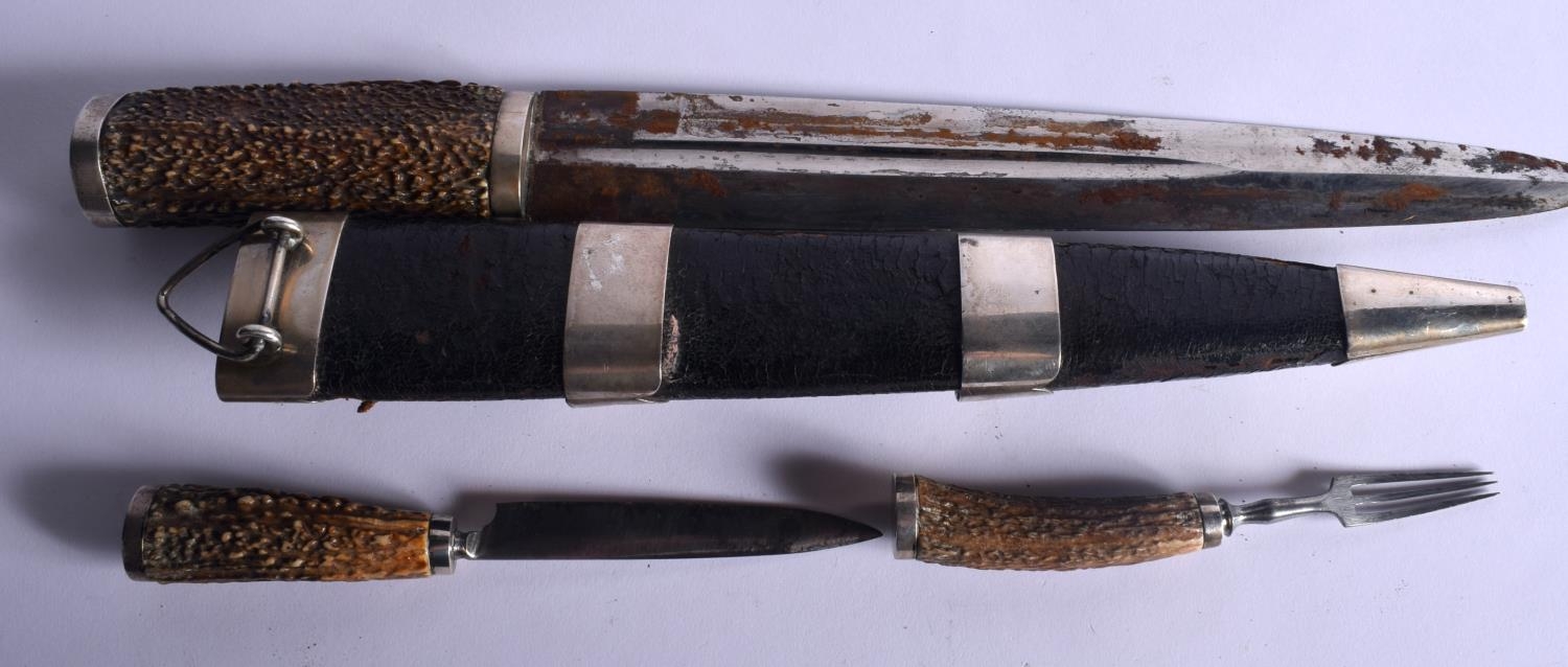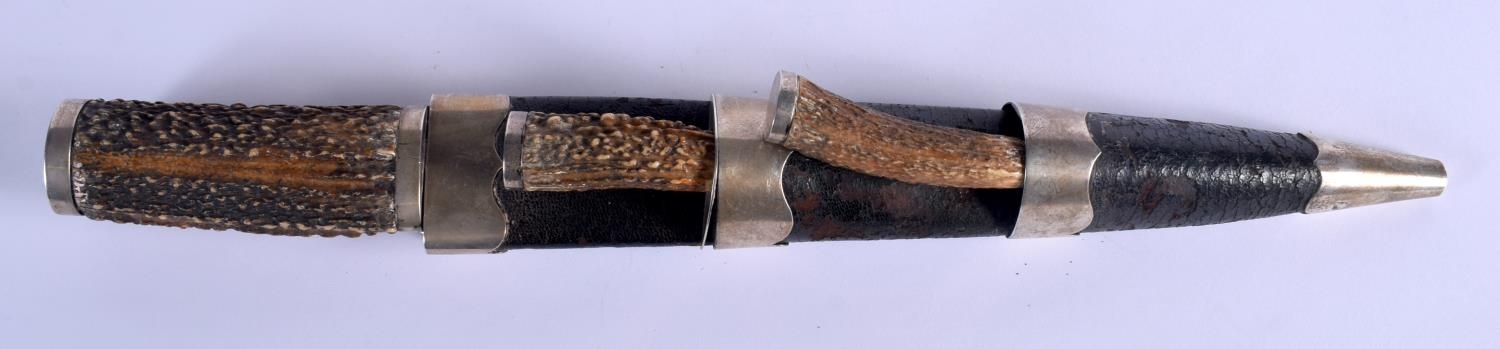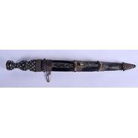 A VINTAGE SCOTTISH HORN HANDLED DIRK DAGGER with white metal mounts. 37 cm long.