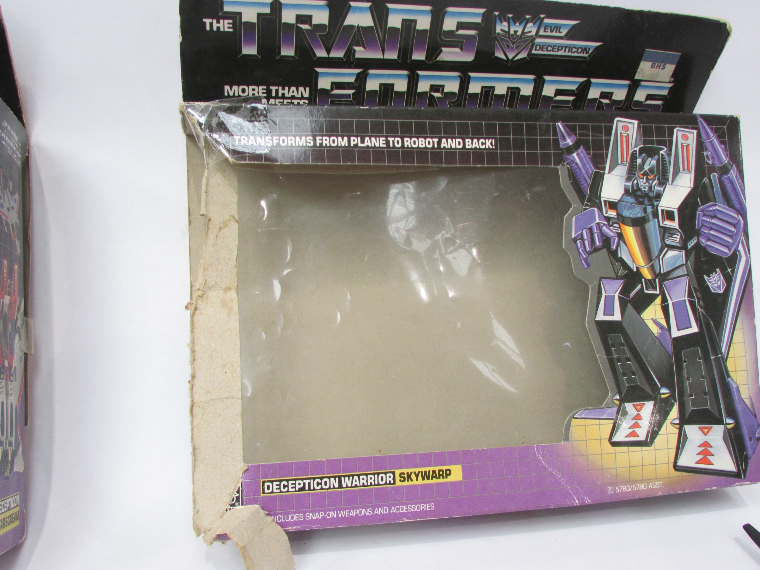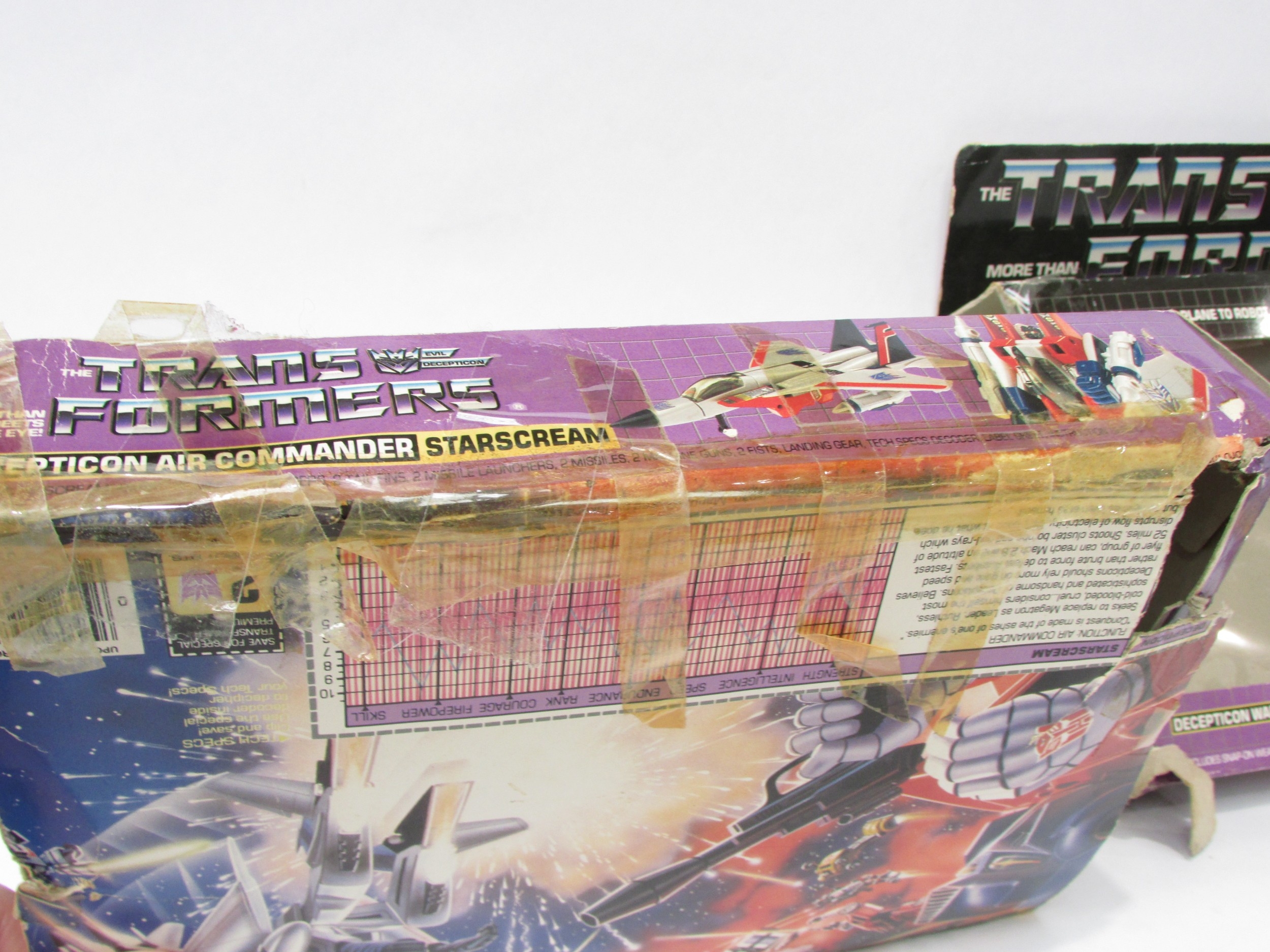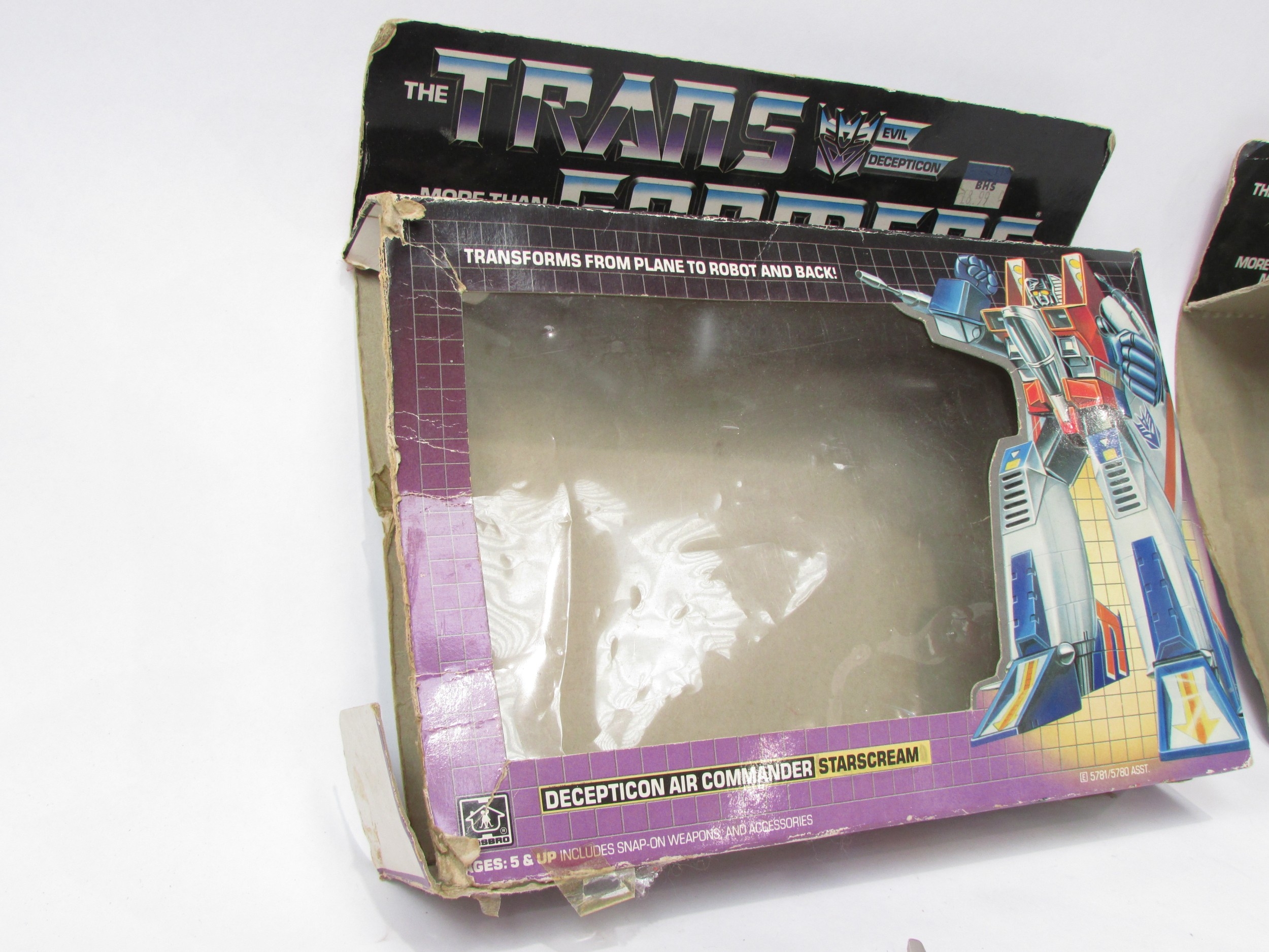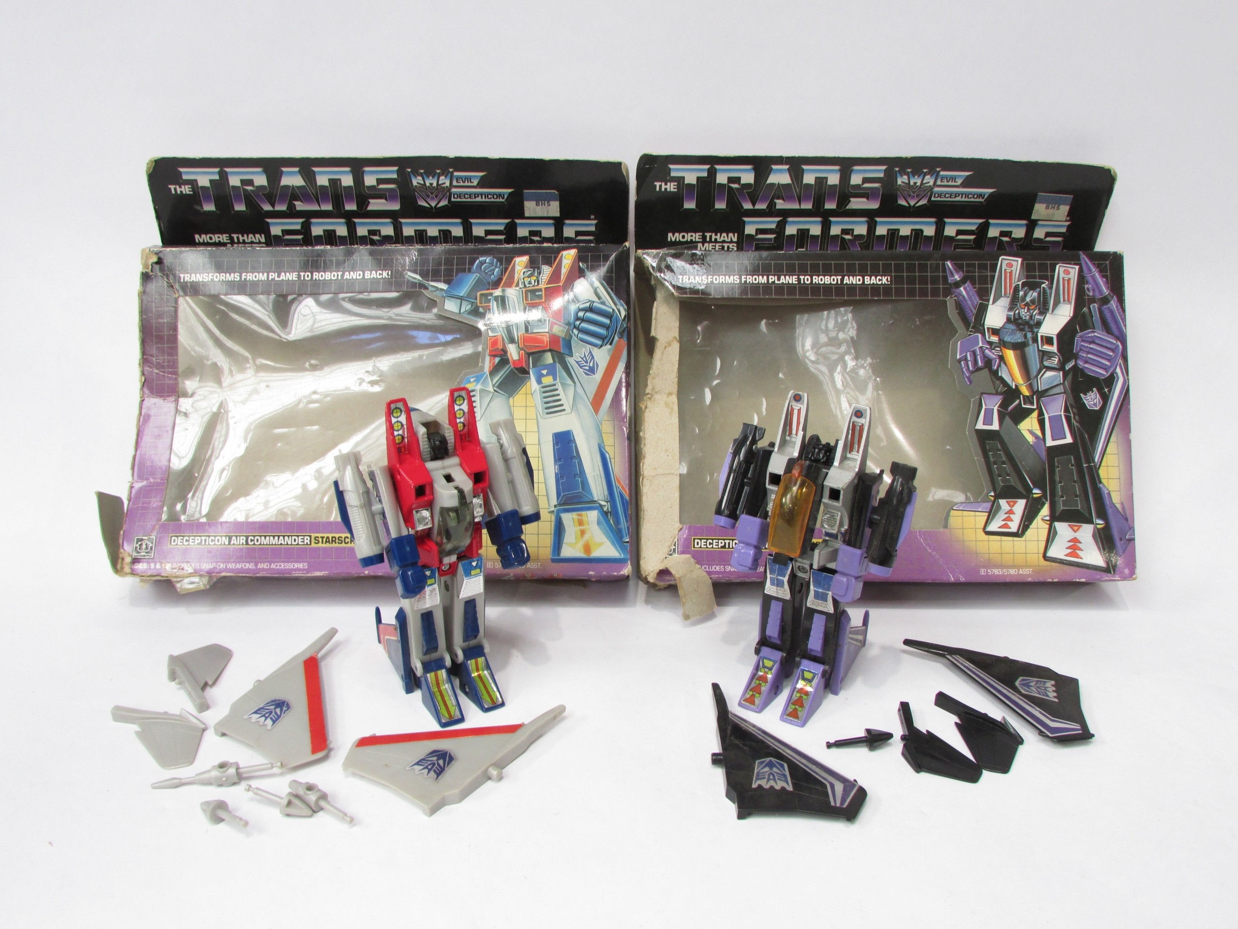 Two Hasbro Takara Transformers 1980s First Generation (G1) boxed Decepticon figures 'Air Commander Starscream' and 'Warrior Skywarp', both in original boxes (a/f)