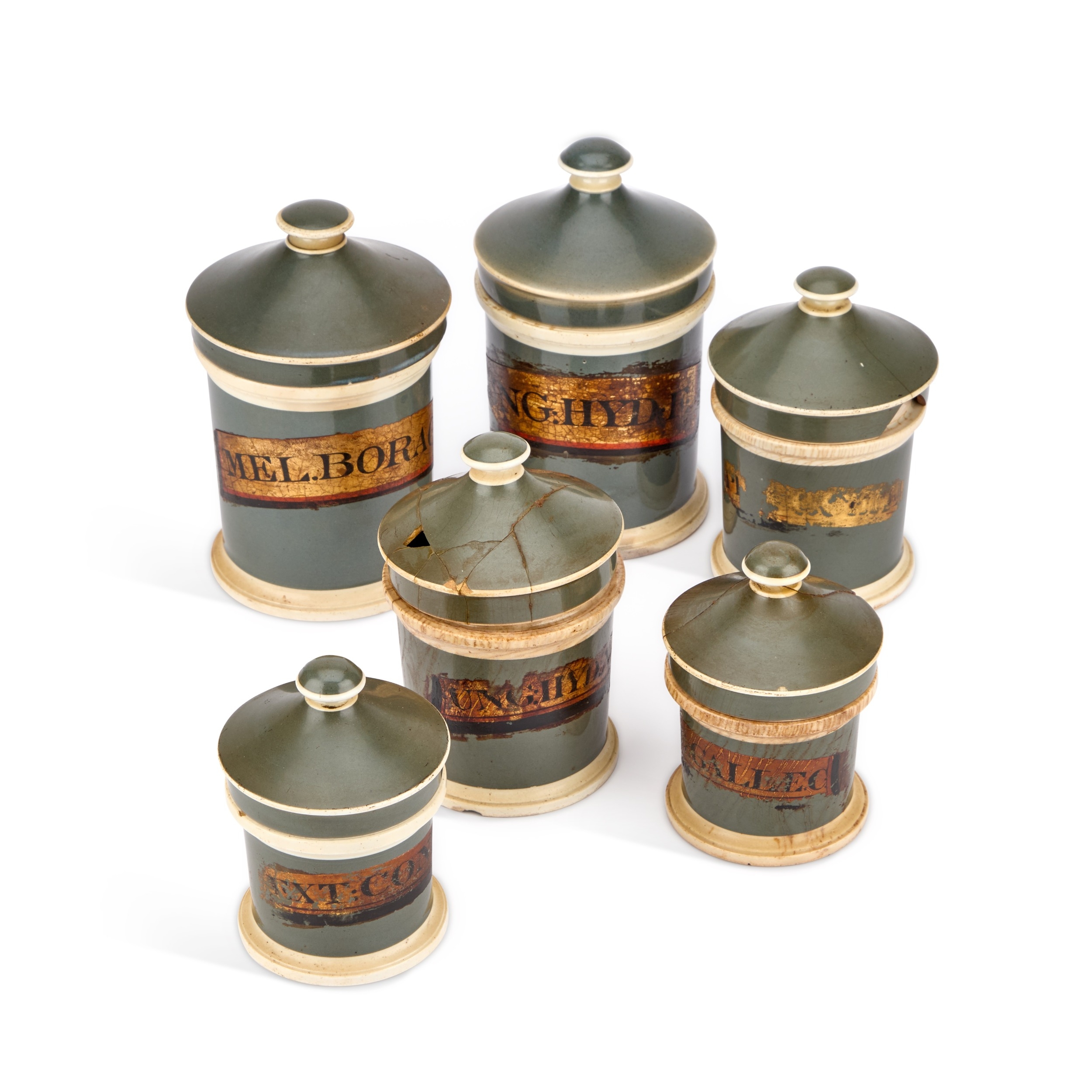 A SET OF SIX 19TH CENTURY APOTHECARY JARS