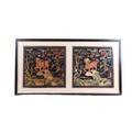 A pair of Chinese silk embroidered rank badges with central Qilin, 29 by 29cms, framed & glazed as one.
