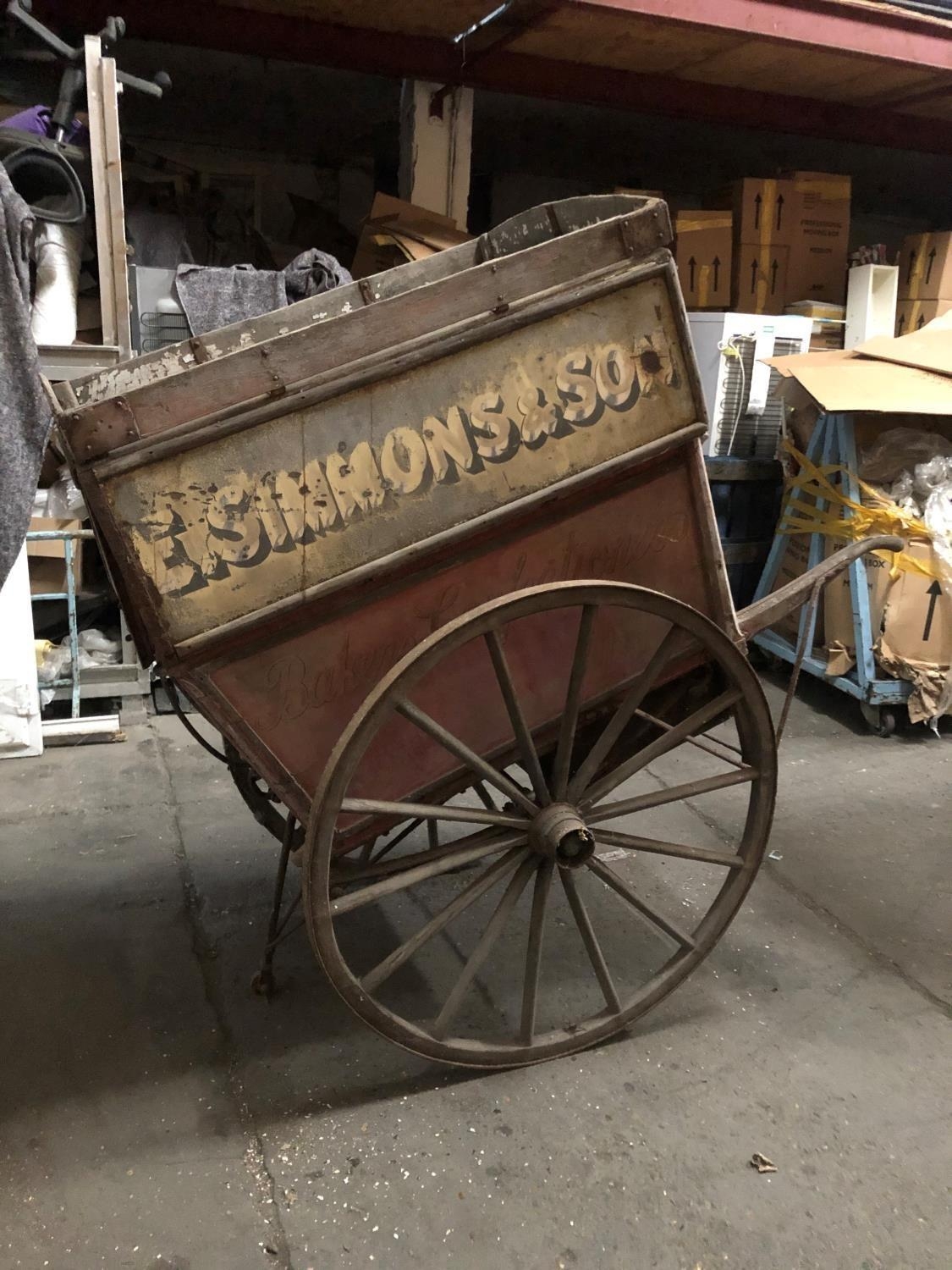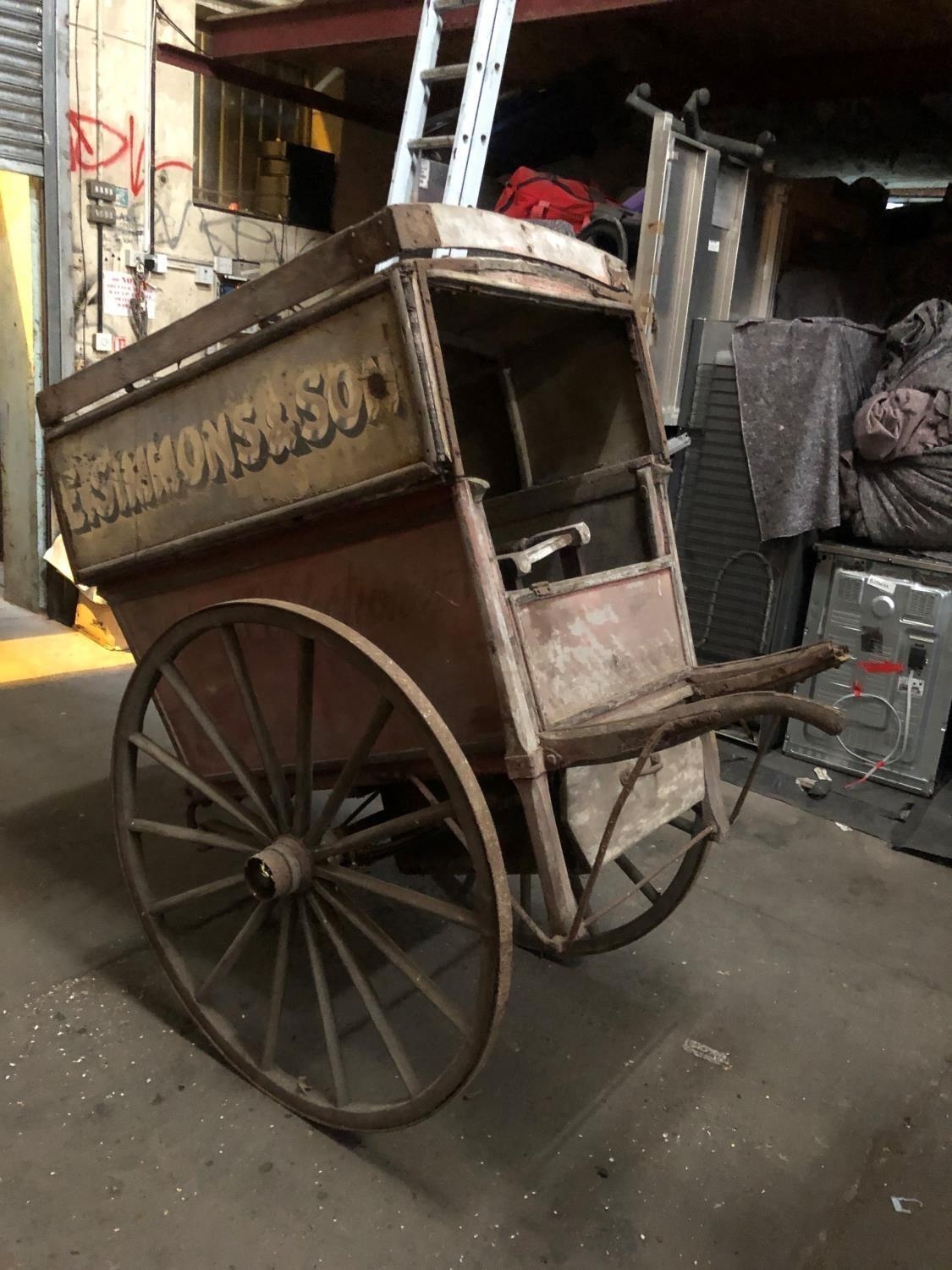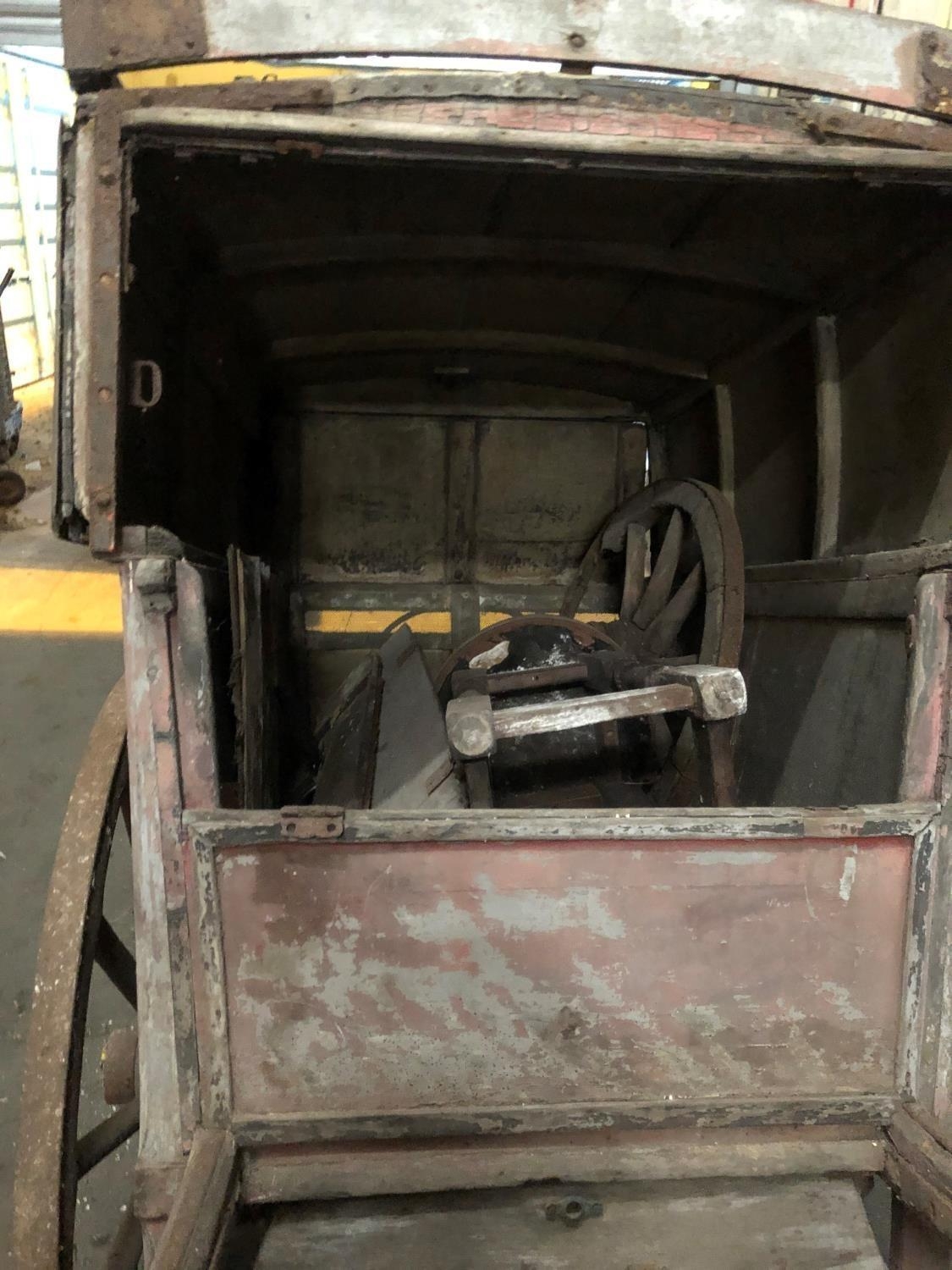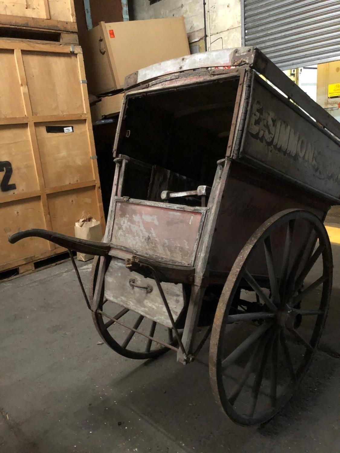 A LATE VICTORIAN WOODEN TRADESMAN COVERED HAND CART