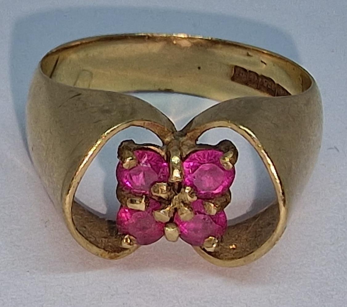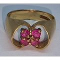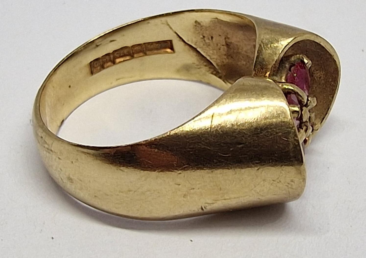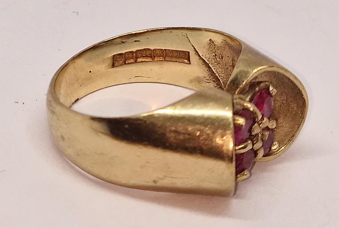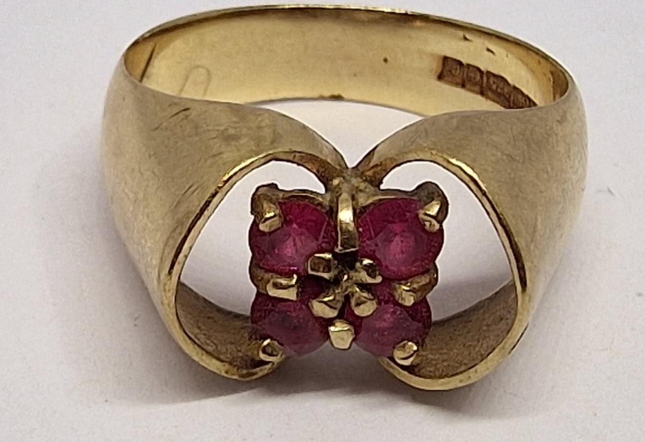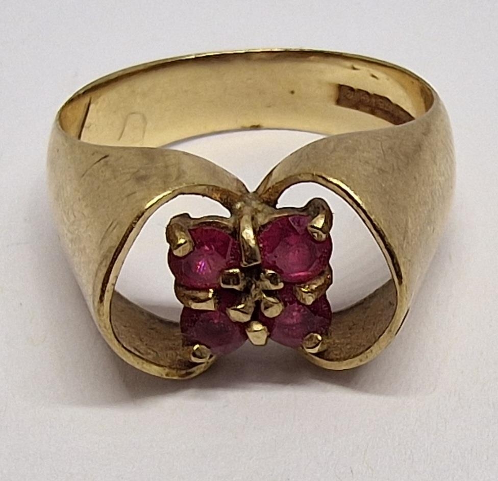 9ct GOLD RING SET 4 RUBIES - SIZE N (4.8g)