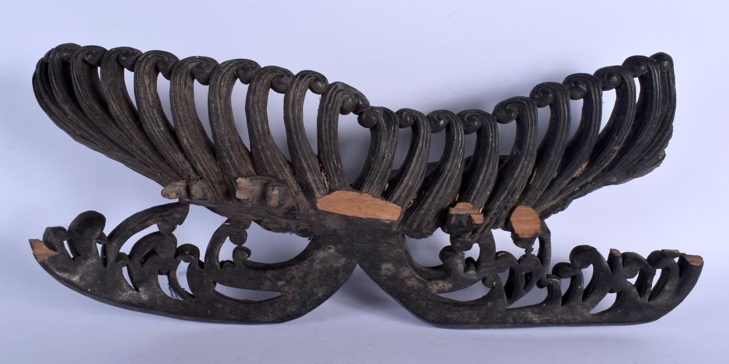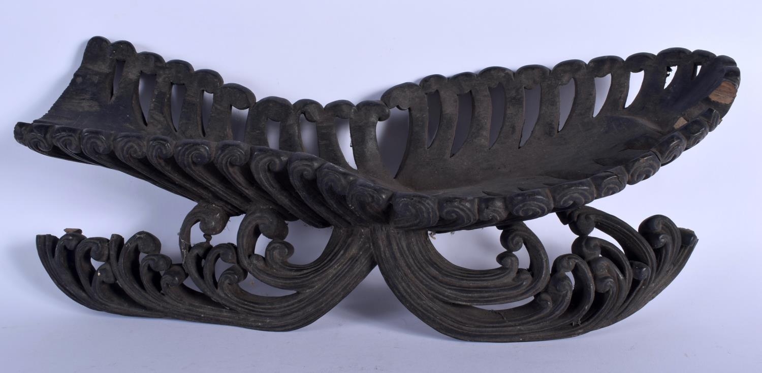 AN UNUSUAL 19TH CENTURY JAPANESE MEIJI PERIOD CARVED HARDWOOD STAND formed as waves. 38 cm x 15 cm.
