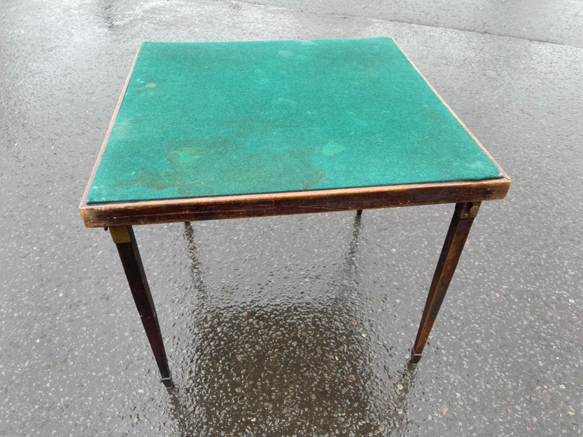 A VINTAGE green felt-covered folding card-table? - dimension 2ft square