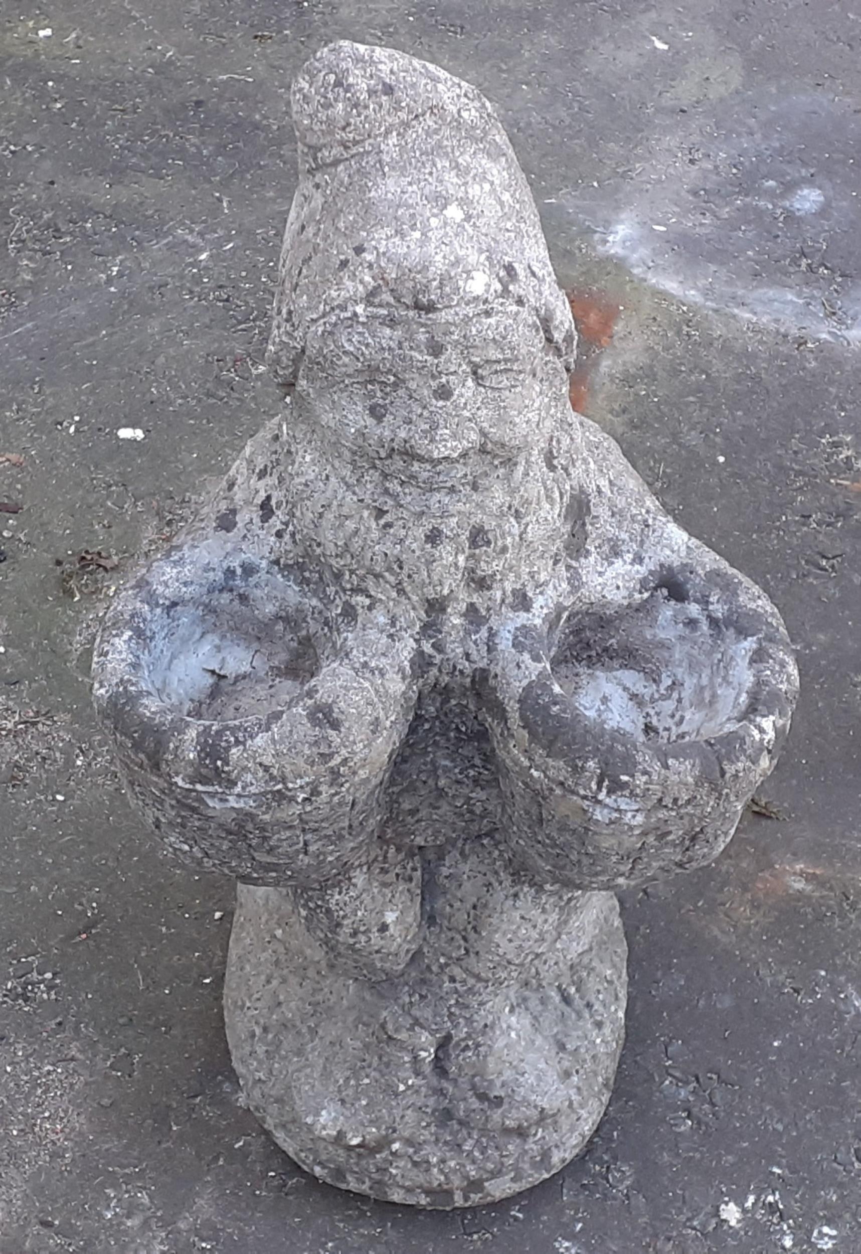 Ornamental garden gnome with twin plant pots. Stands 50cm high approx