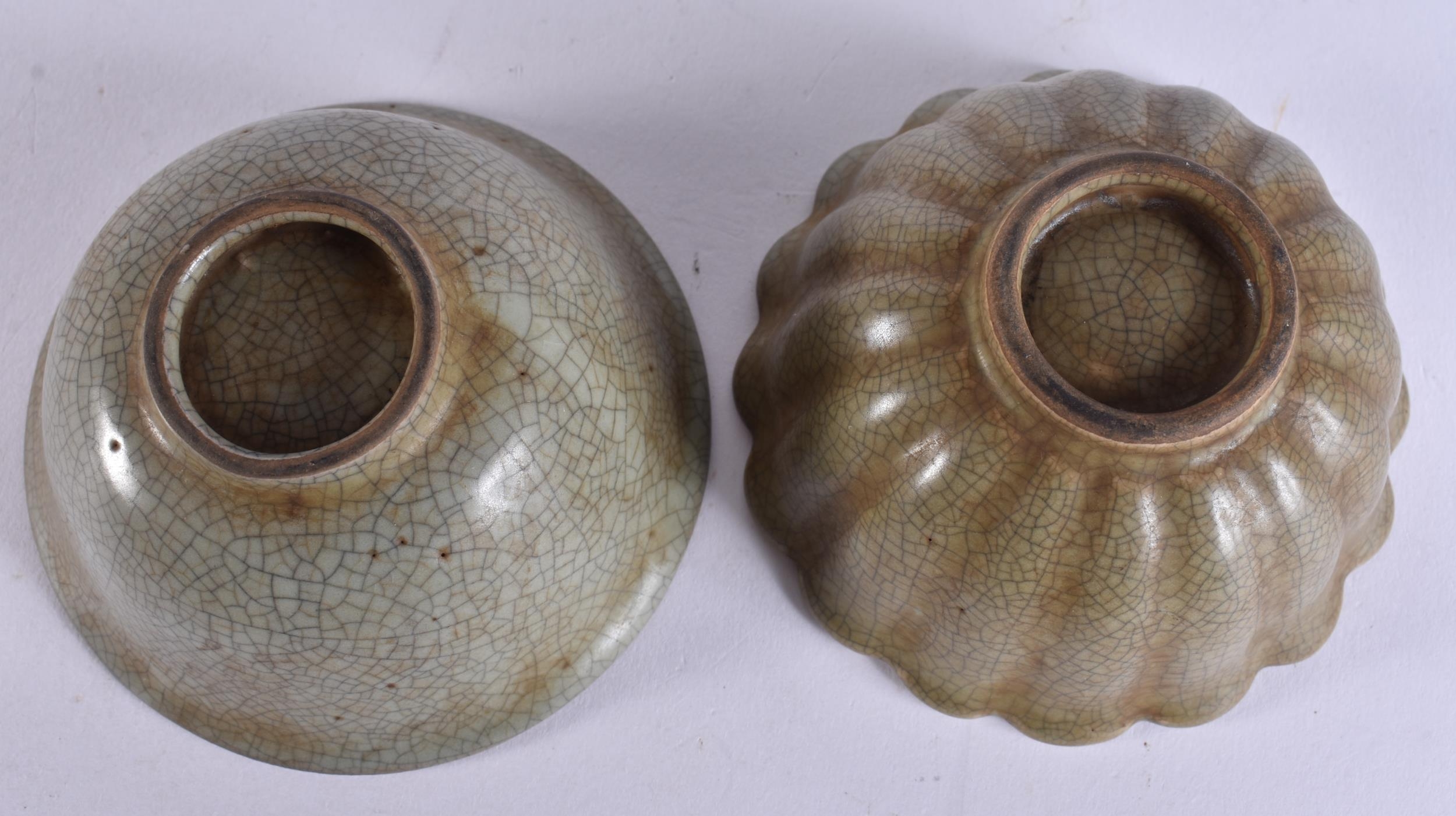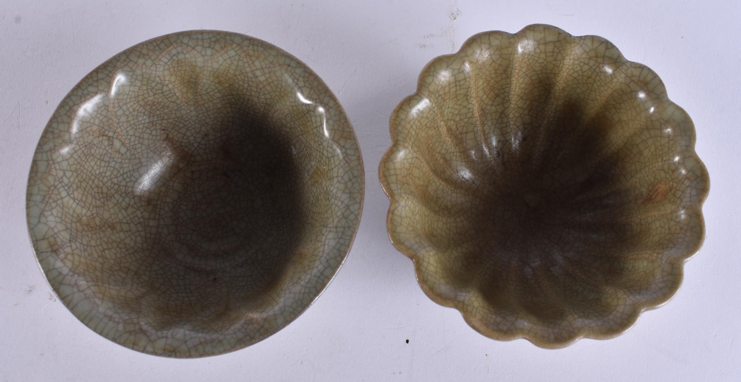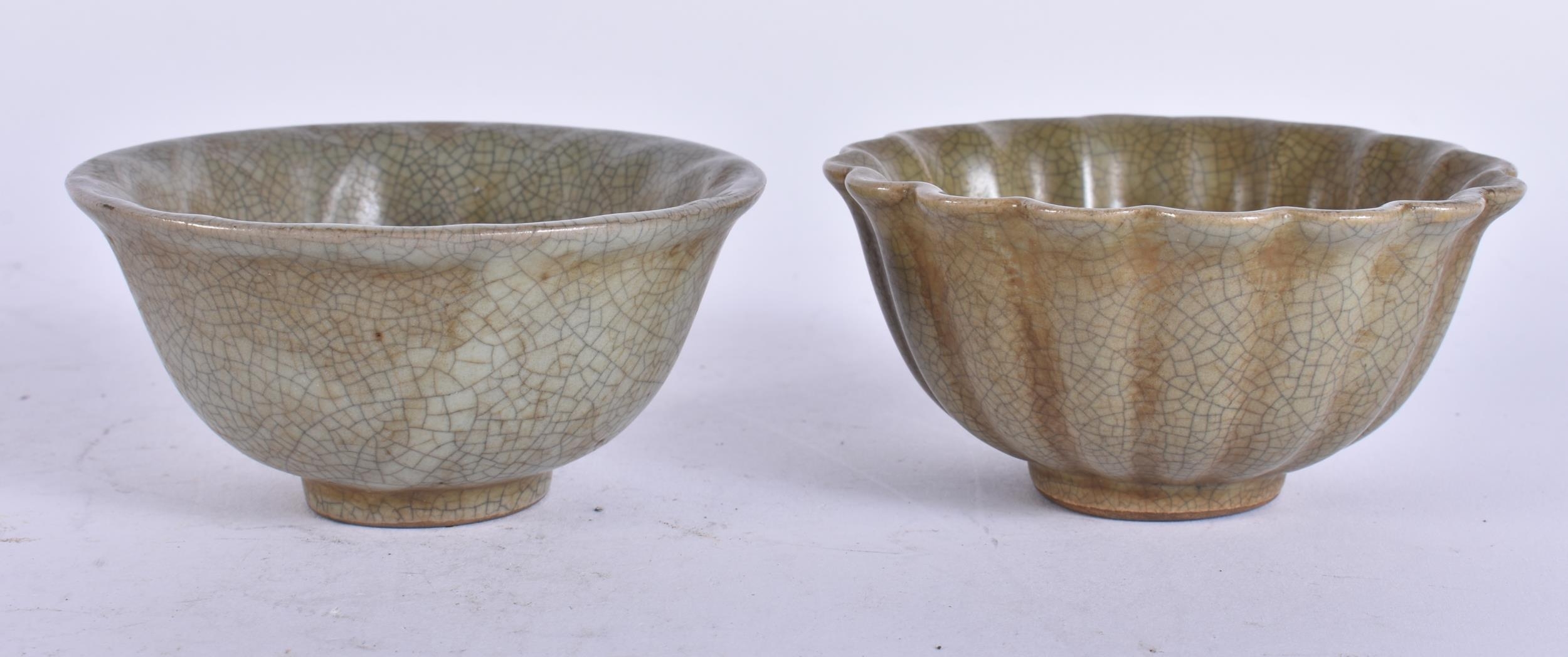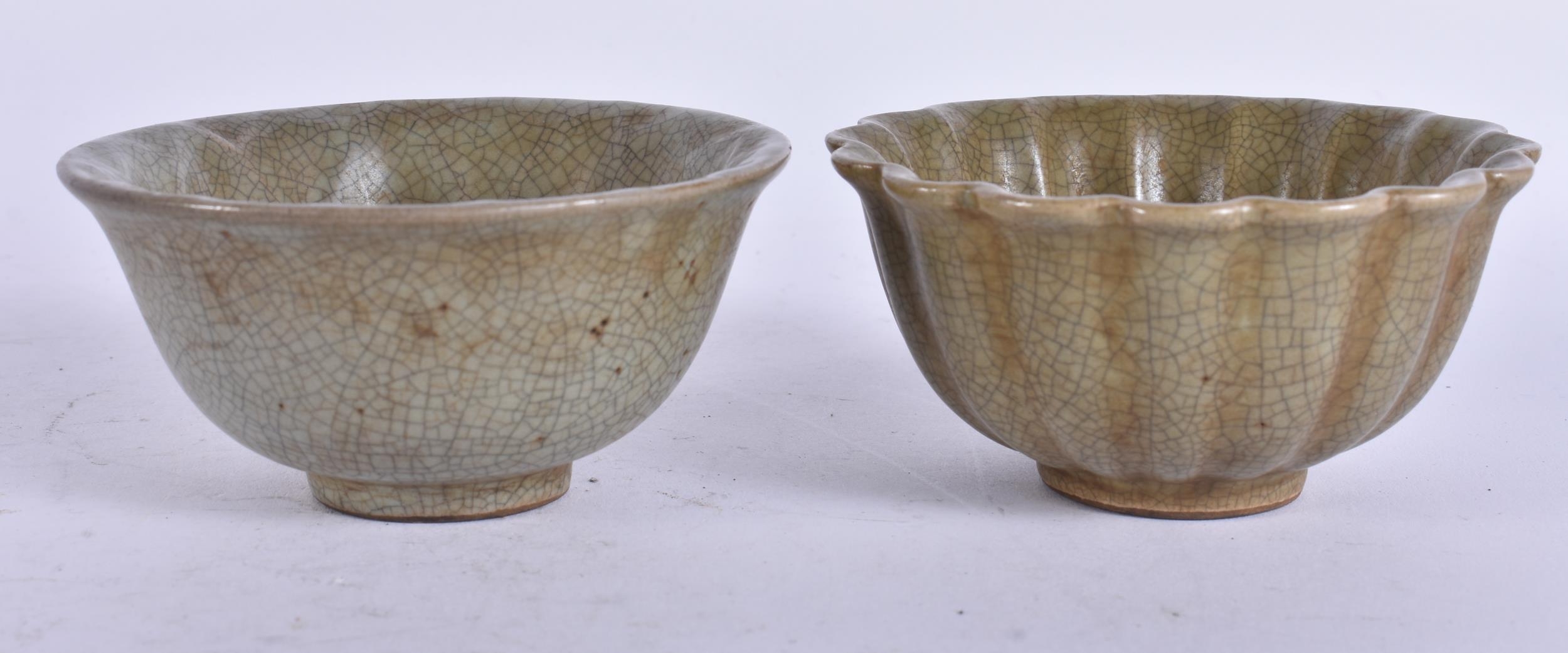 TWO CHINESE CELADON TEABOWLS. 9 cm wide. (2)