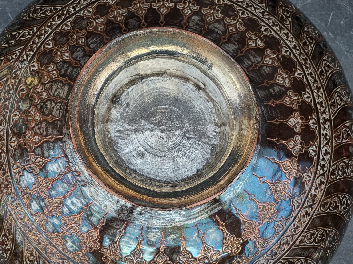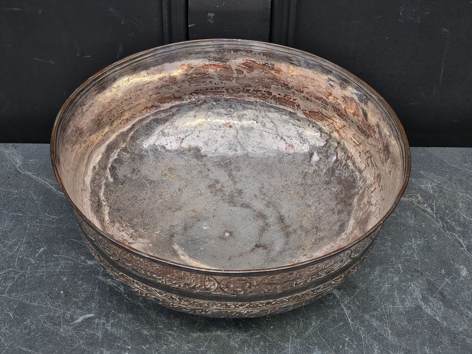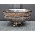 A large Persian electroplated pedestal bowl, inscribed with Islamic script, 34.5cm diameter.