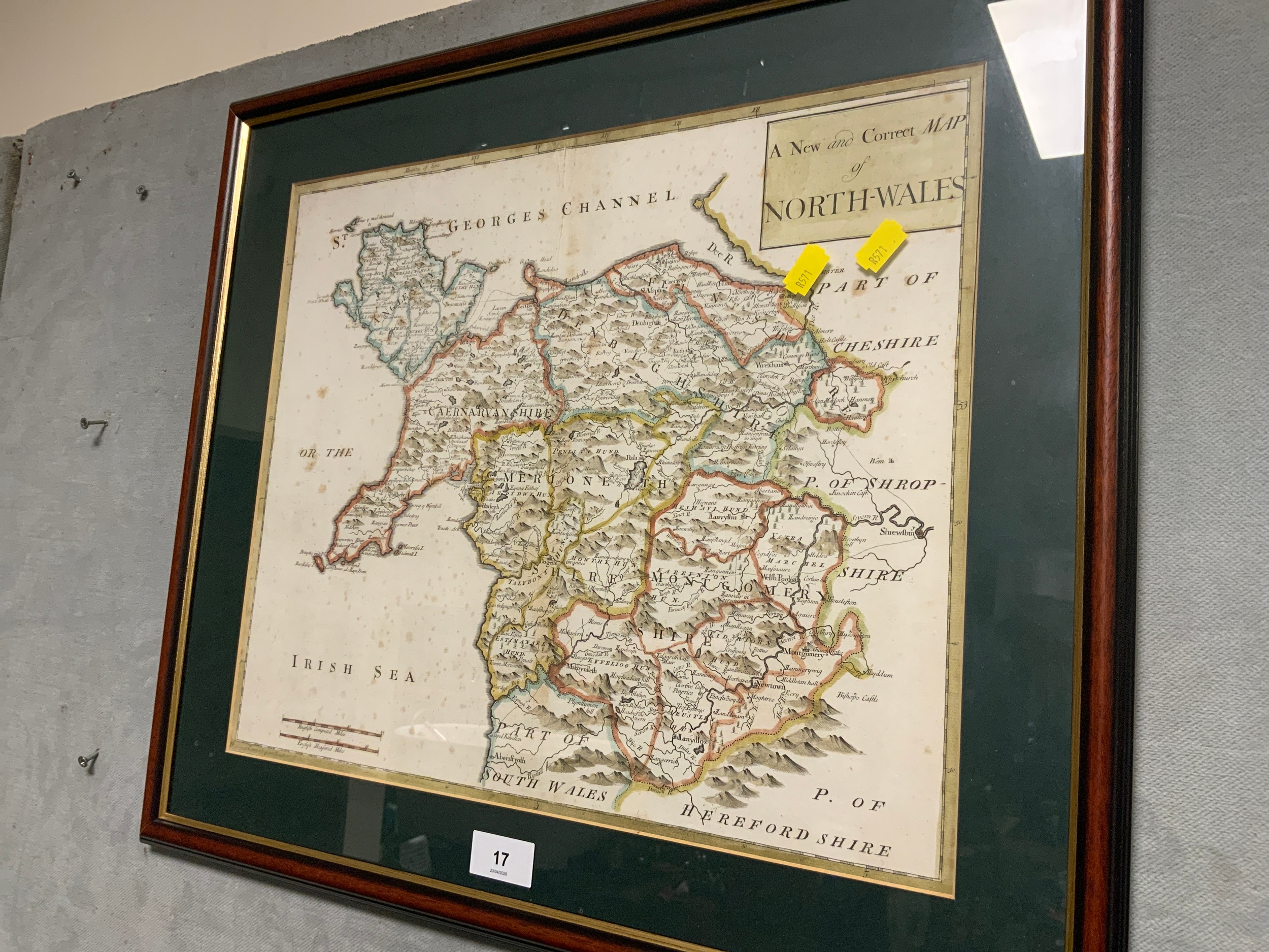 An antique hand coloured map of North Wales by Robert Morden circa 1722 36 x 42 cm