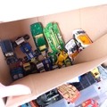 3 boxes of various diecast and other cars, trucks, Formula 1 cars, Dinky Toys, etc