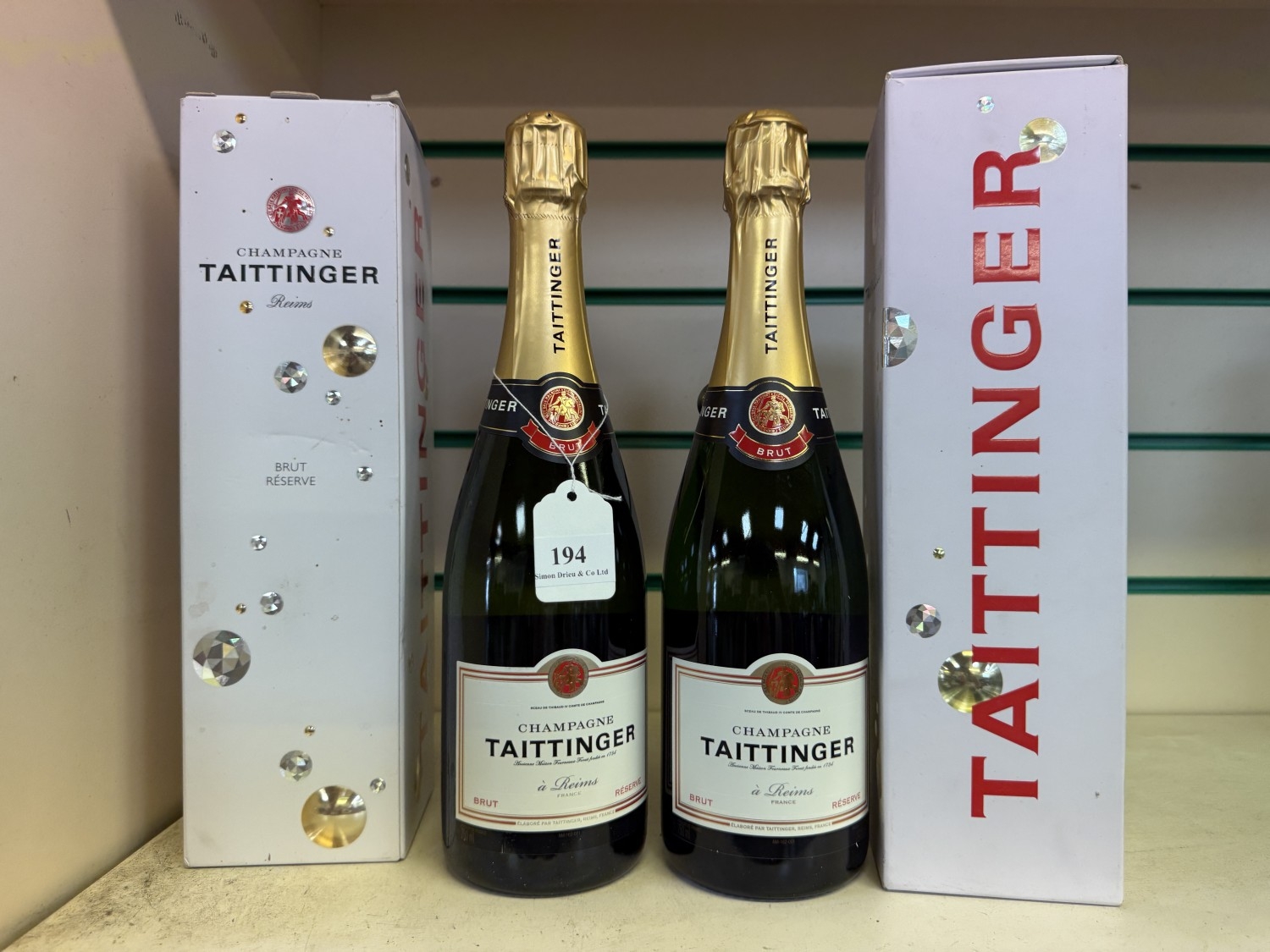 Two presentation bottles of Tattinger Brut Reserve Champagne