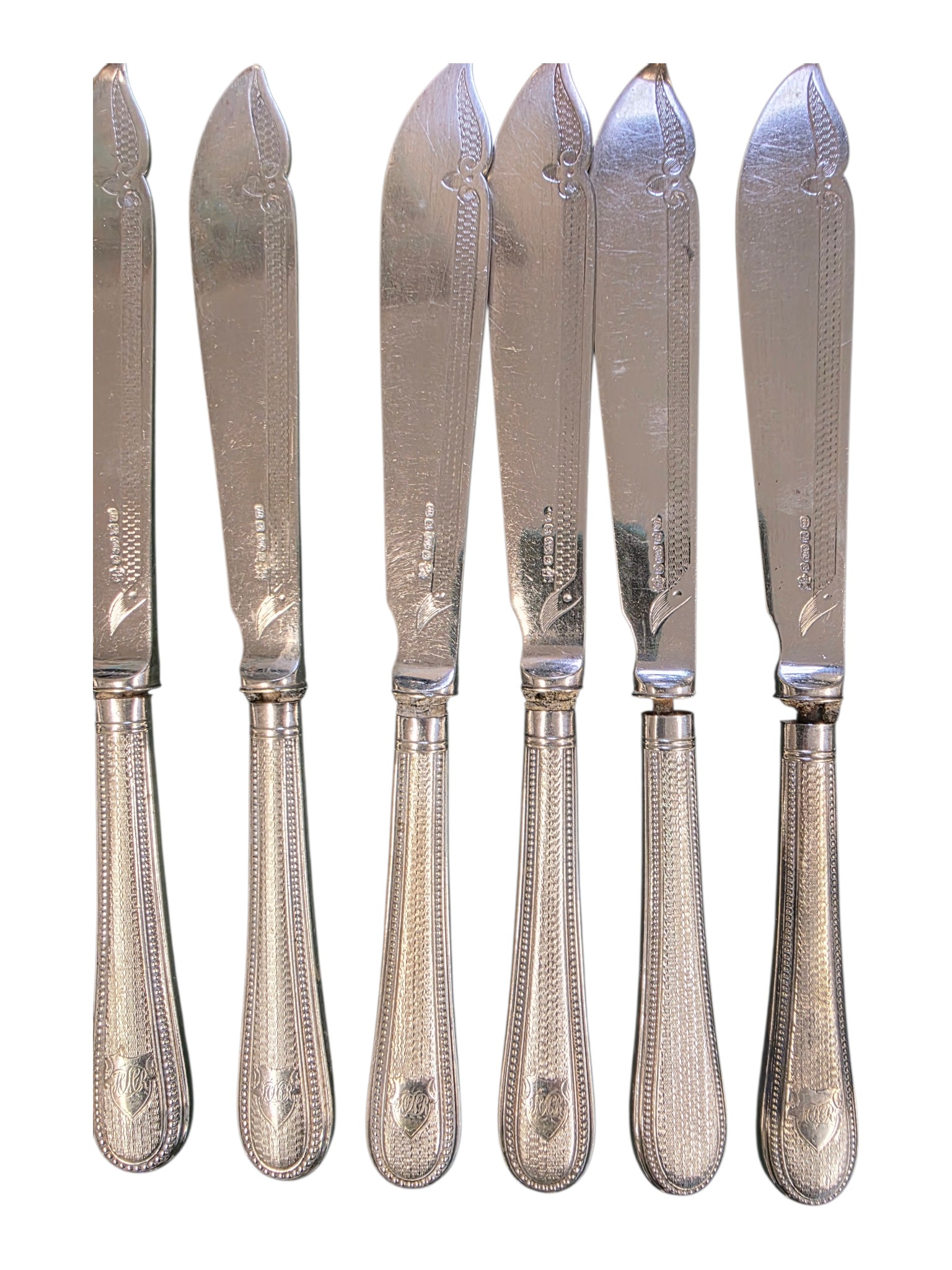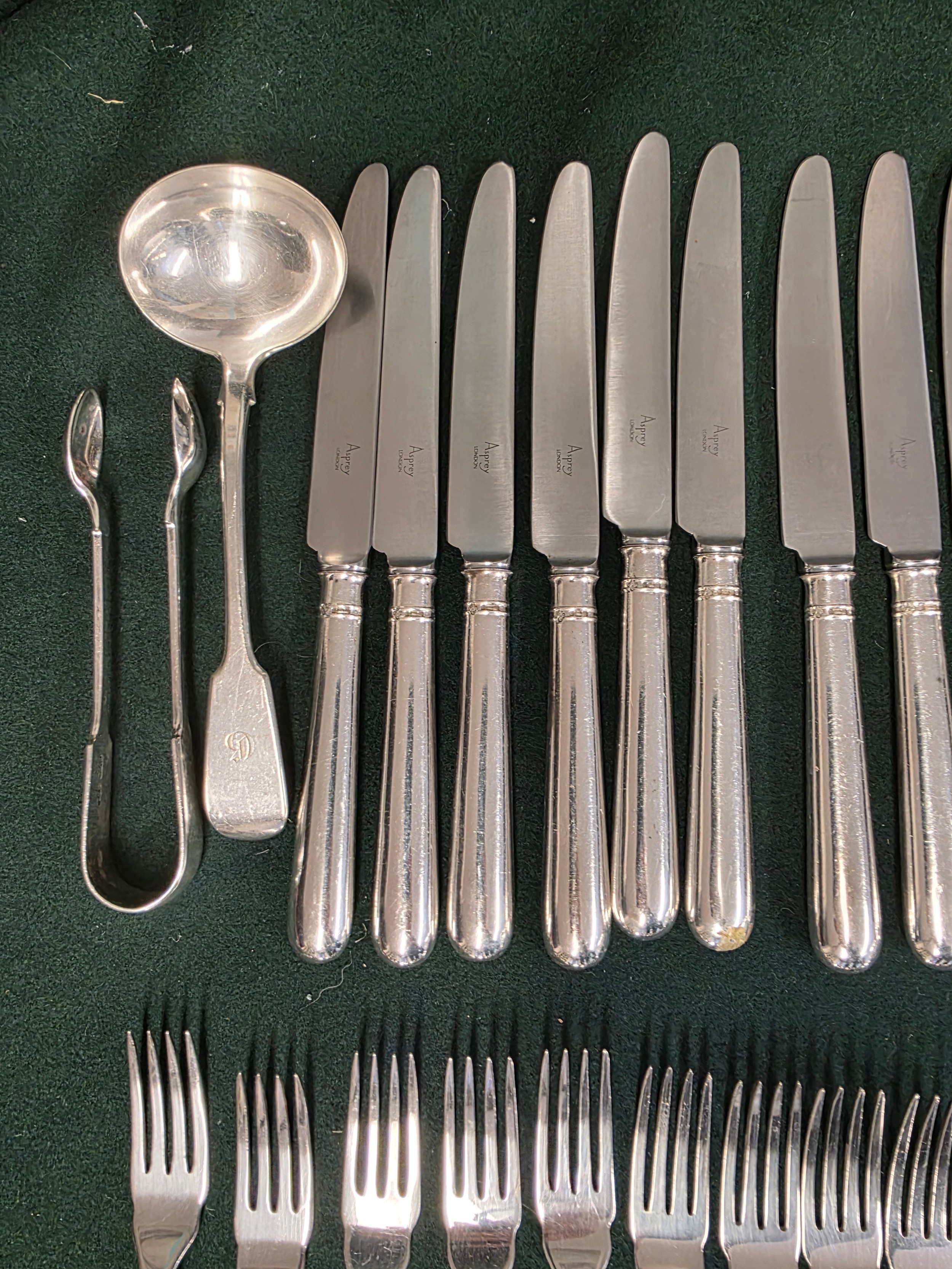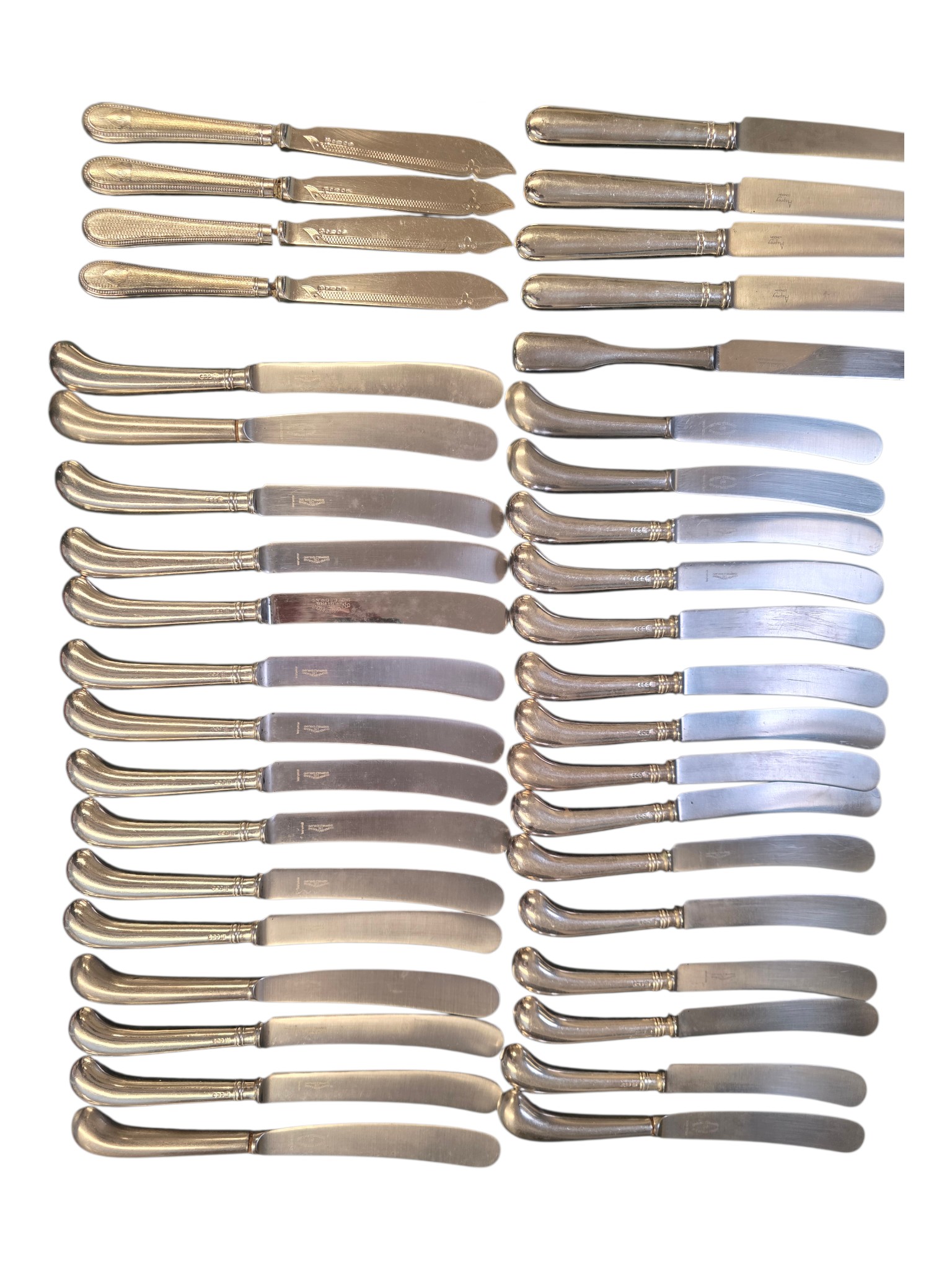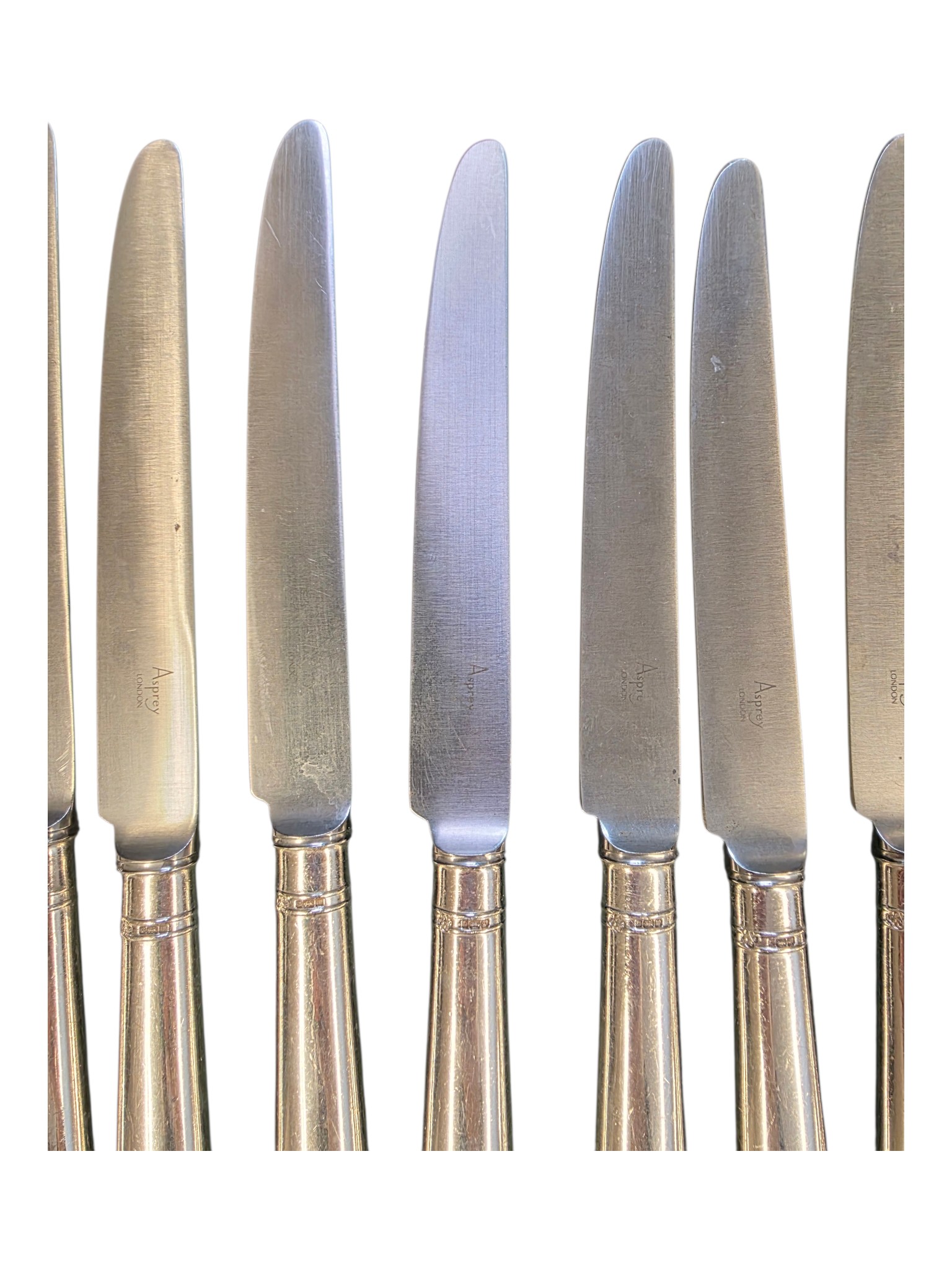 A collection of sterling silver and white metal handled knives, two of the sets by Asprey's .