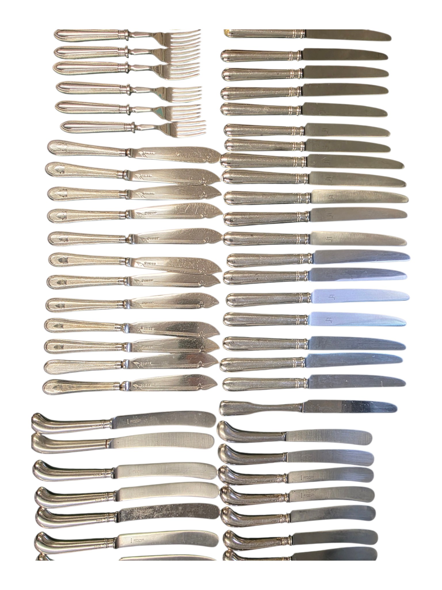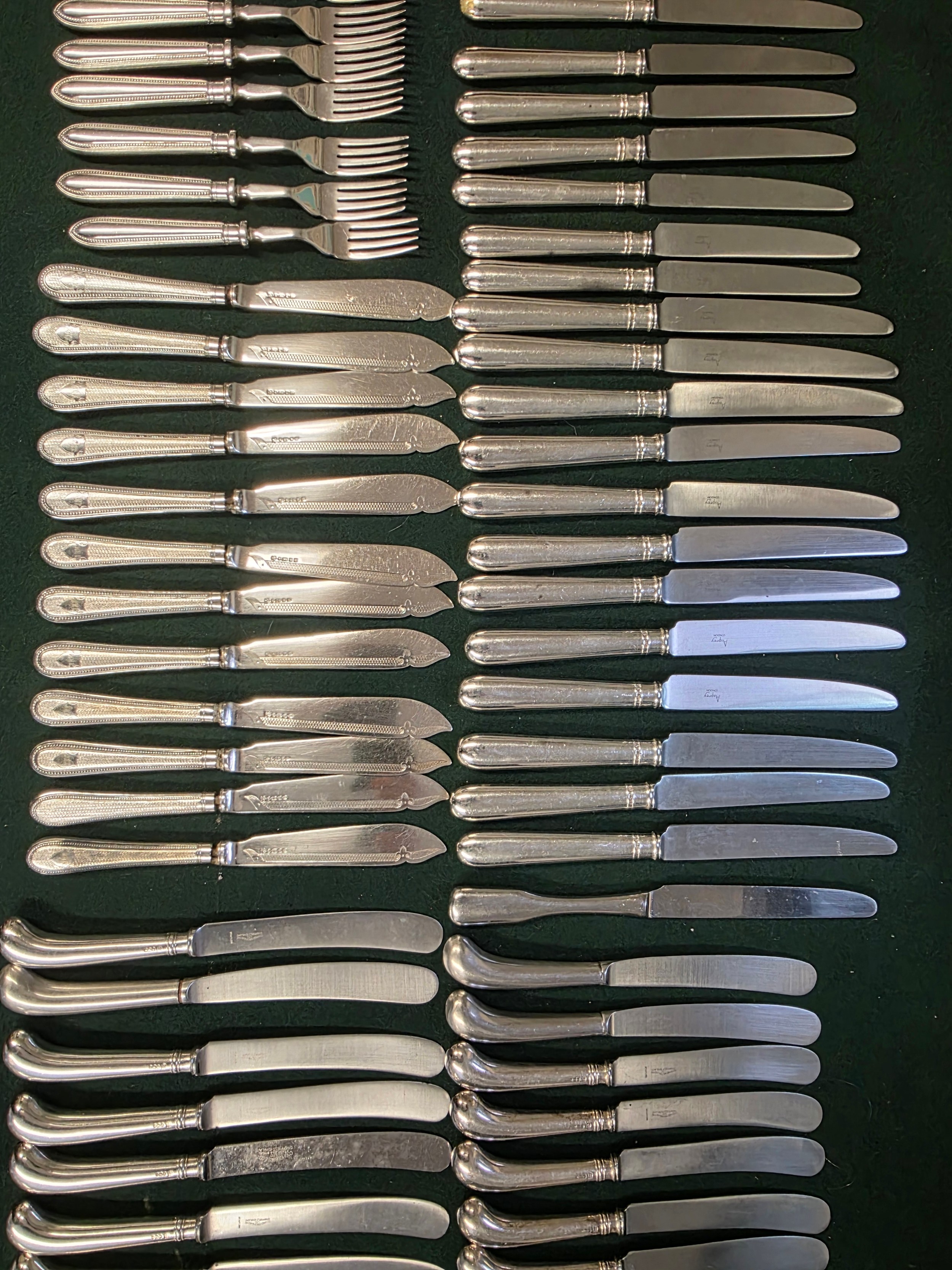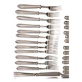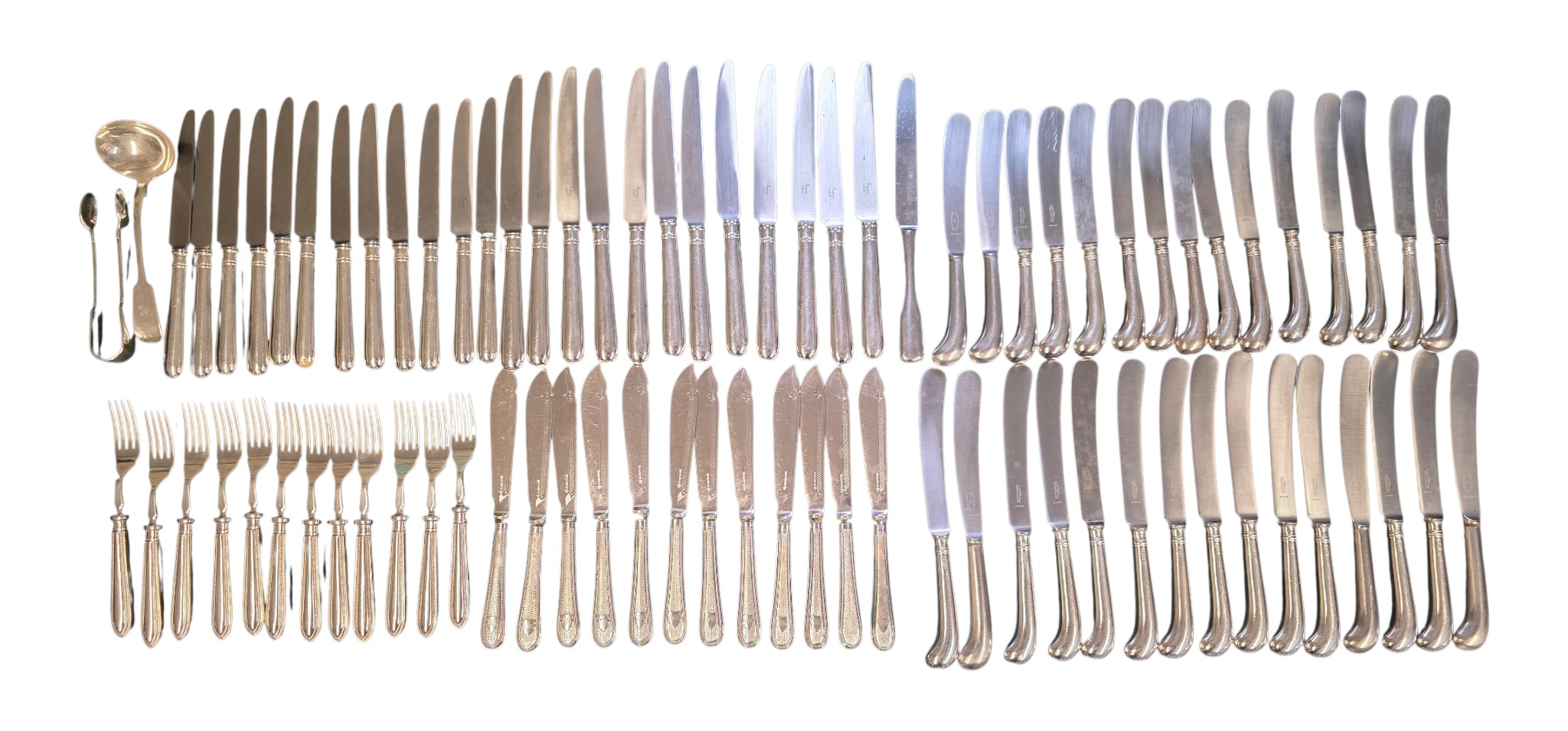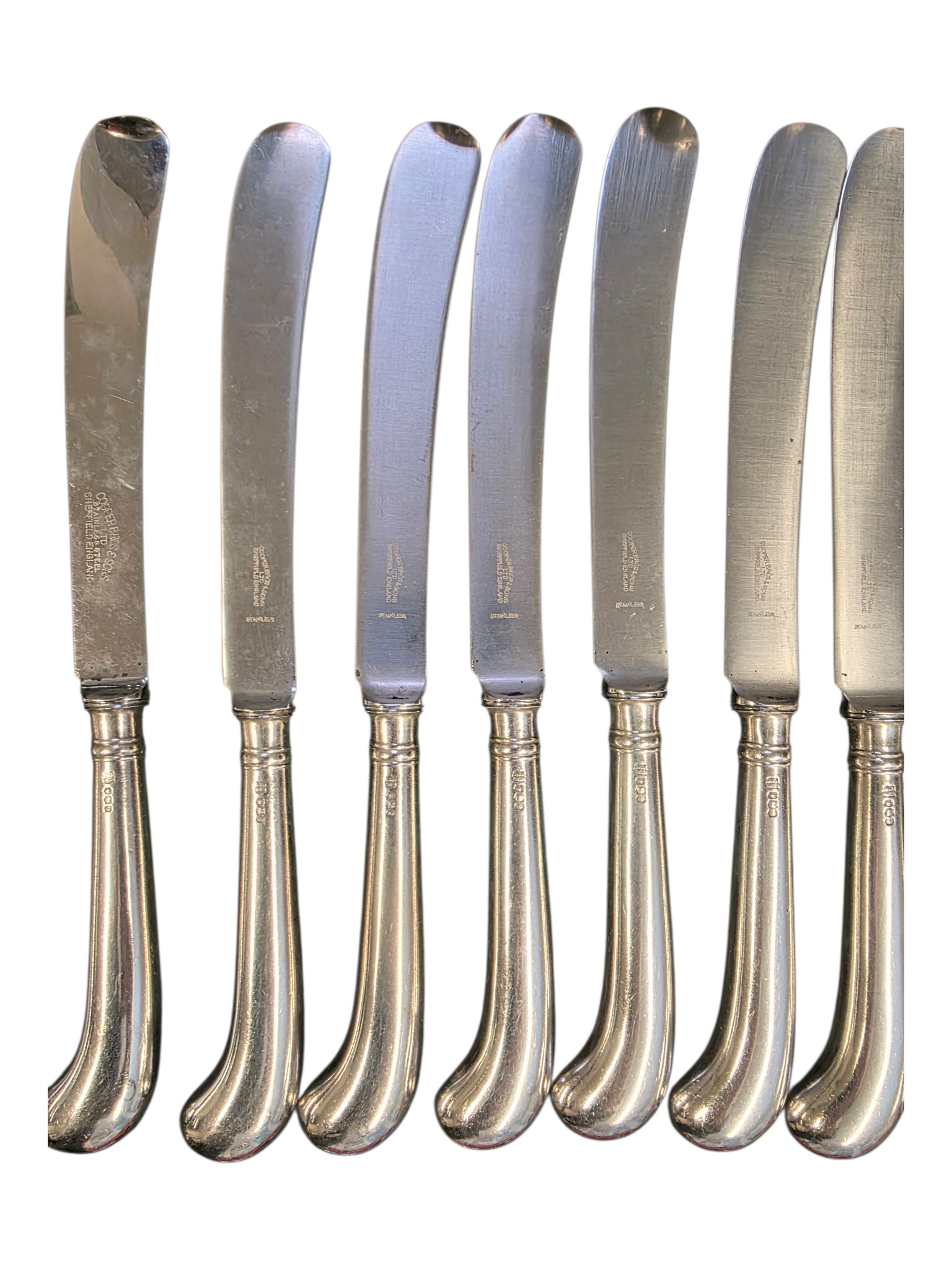 A collection of sterling silver and white metal handled knives, two of the sets by Asprey's .