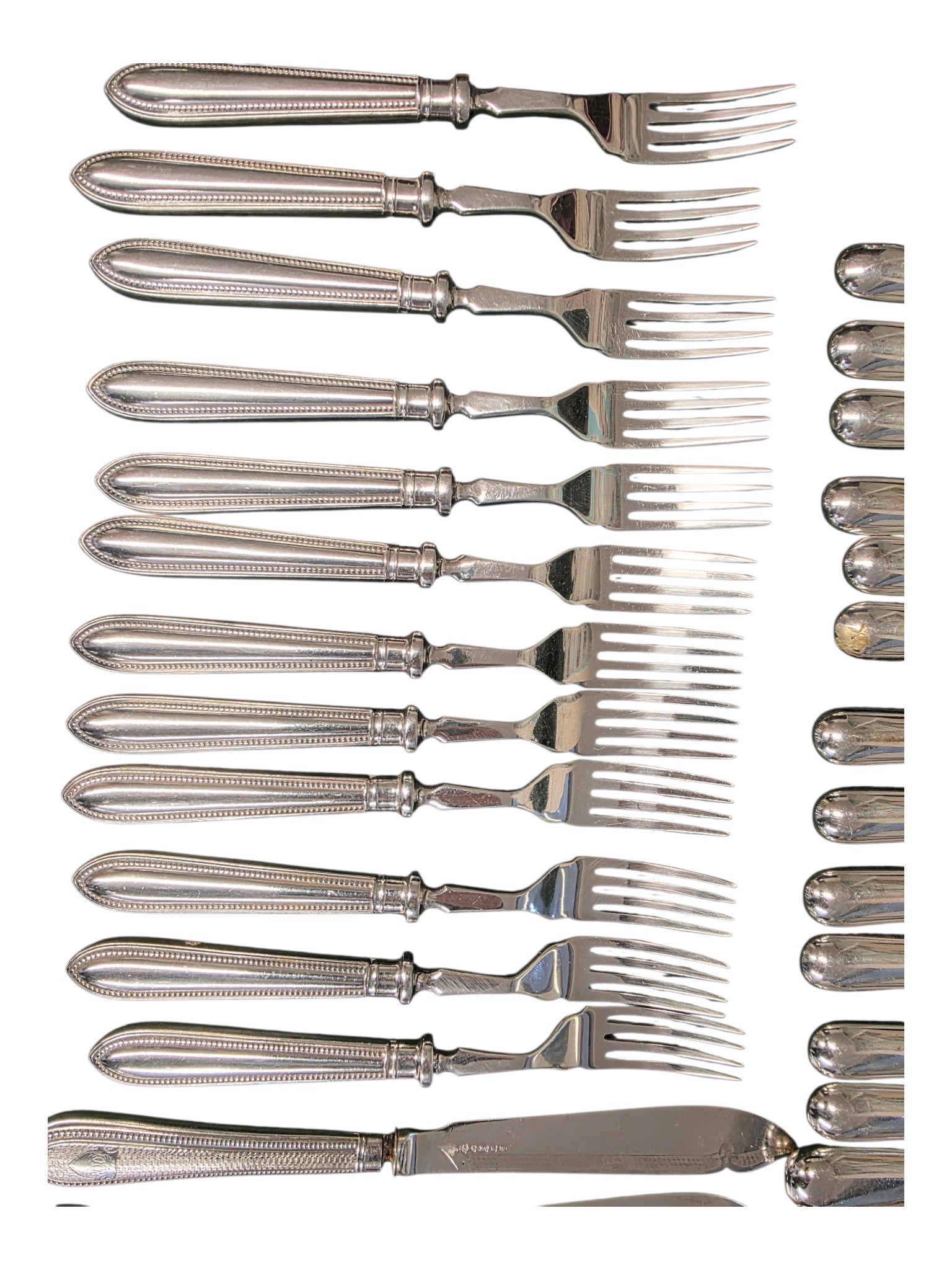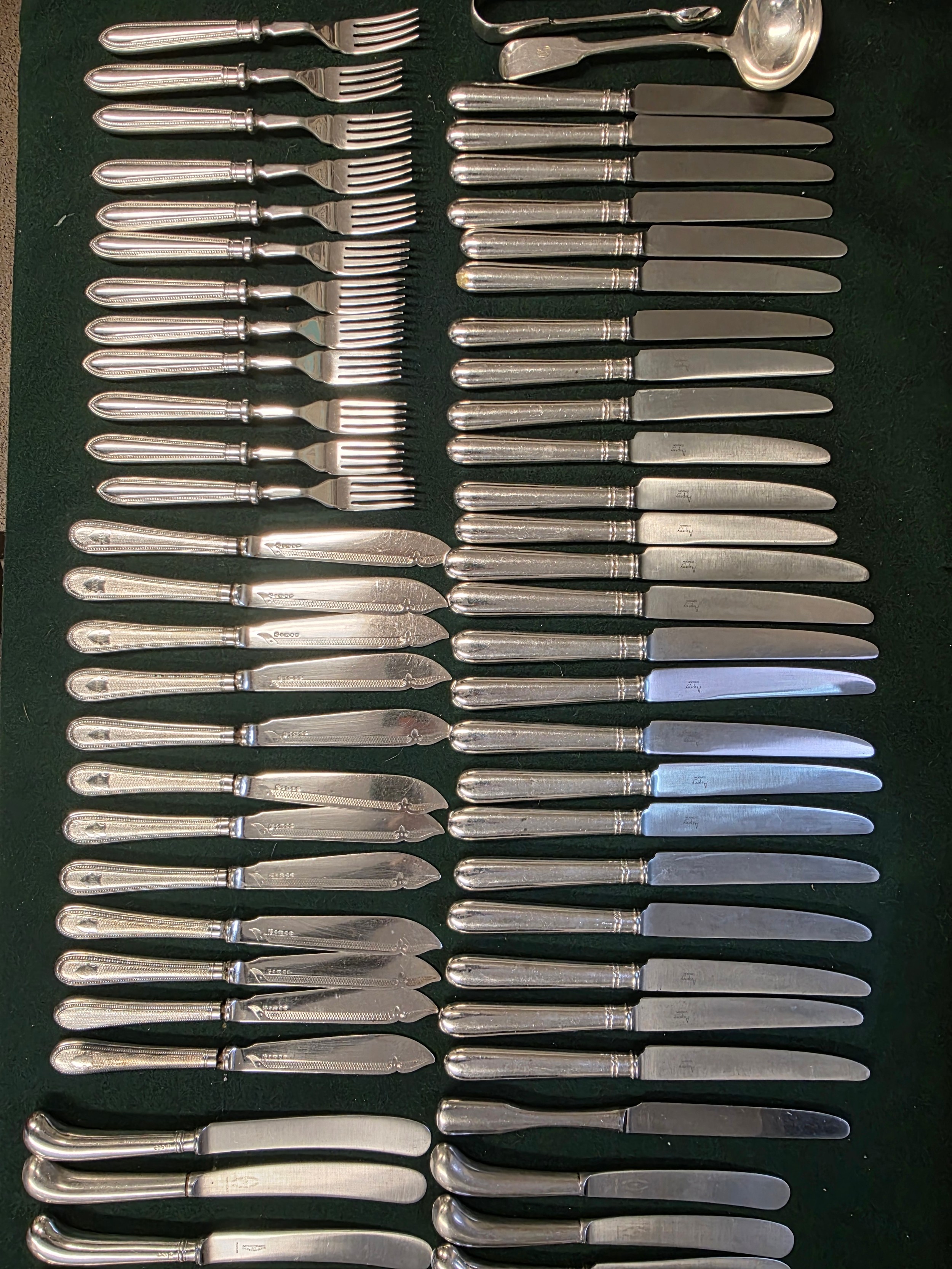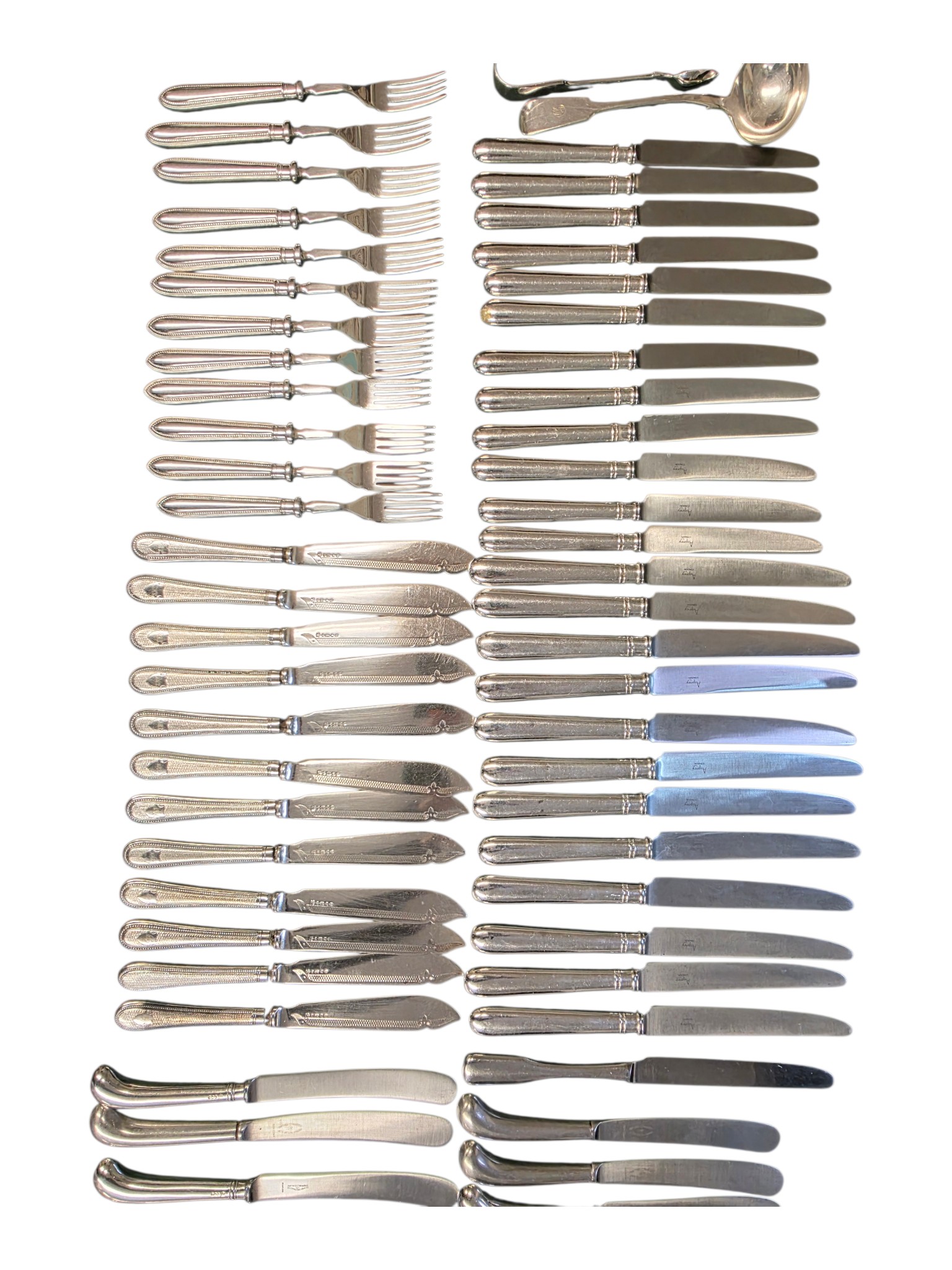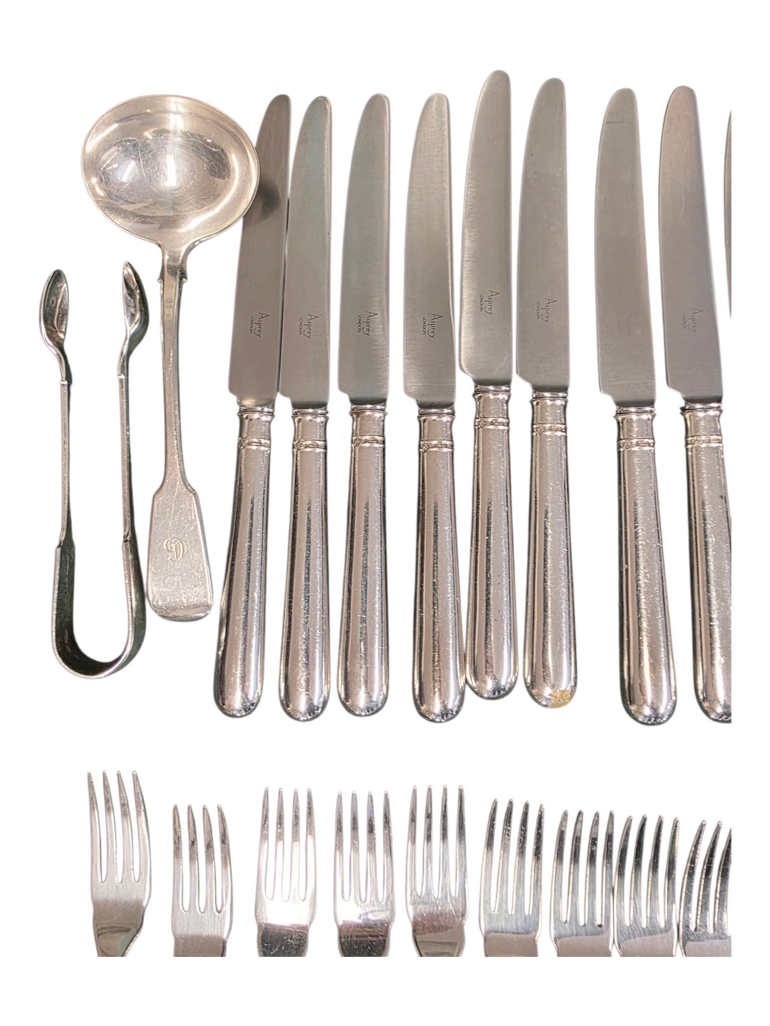 A collection of sterling silver and white metal handled knives, two of the sets by Asprey's .