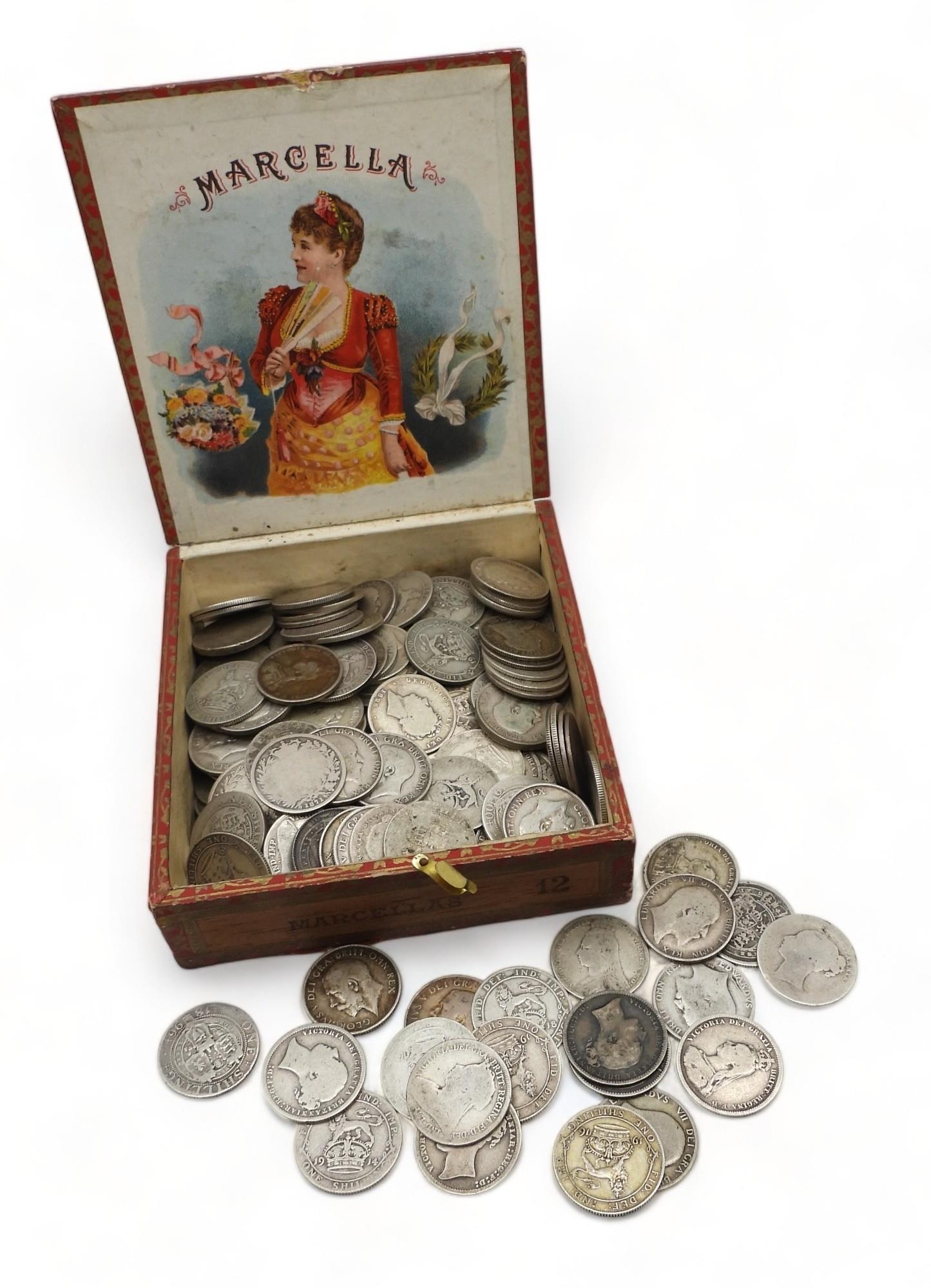 1 Shilling (1⁄20) a quantity of pre 1920 one shilling coins to include George III, Victoria, Edward VII and George V examples approximately 900 grams