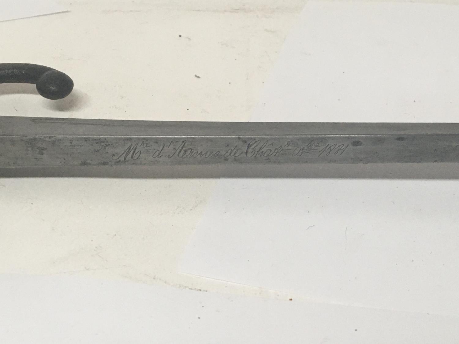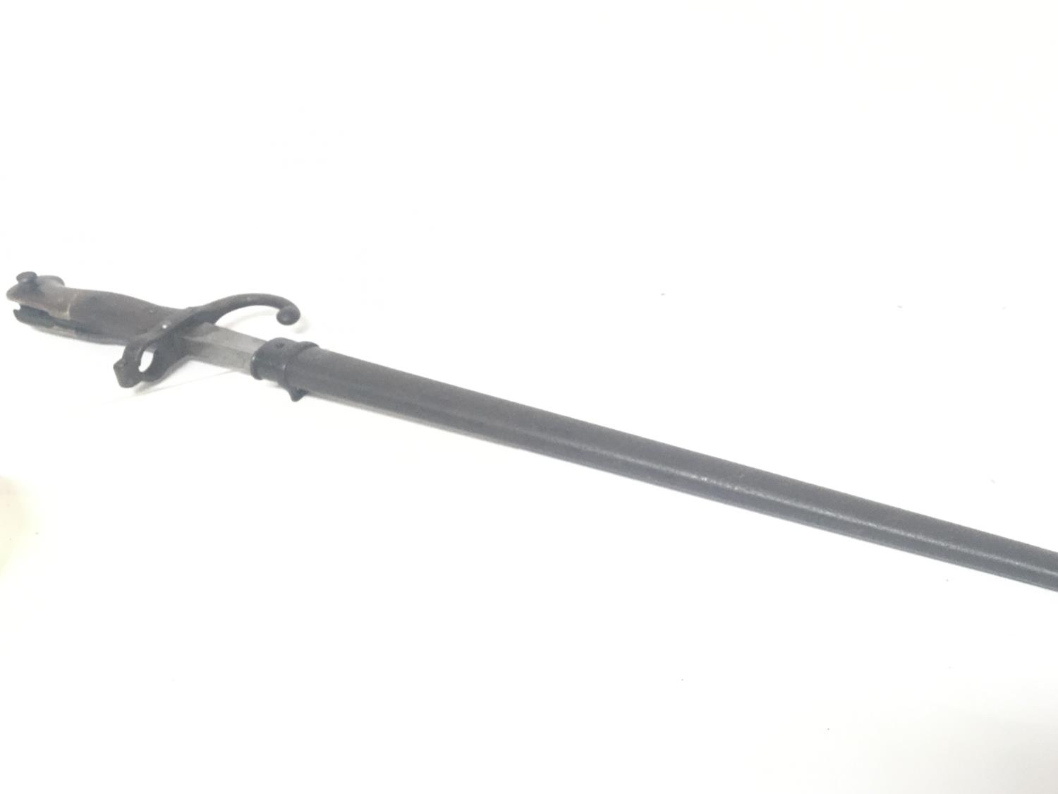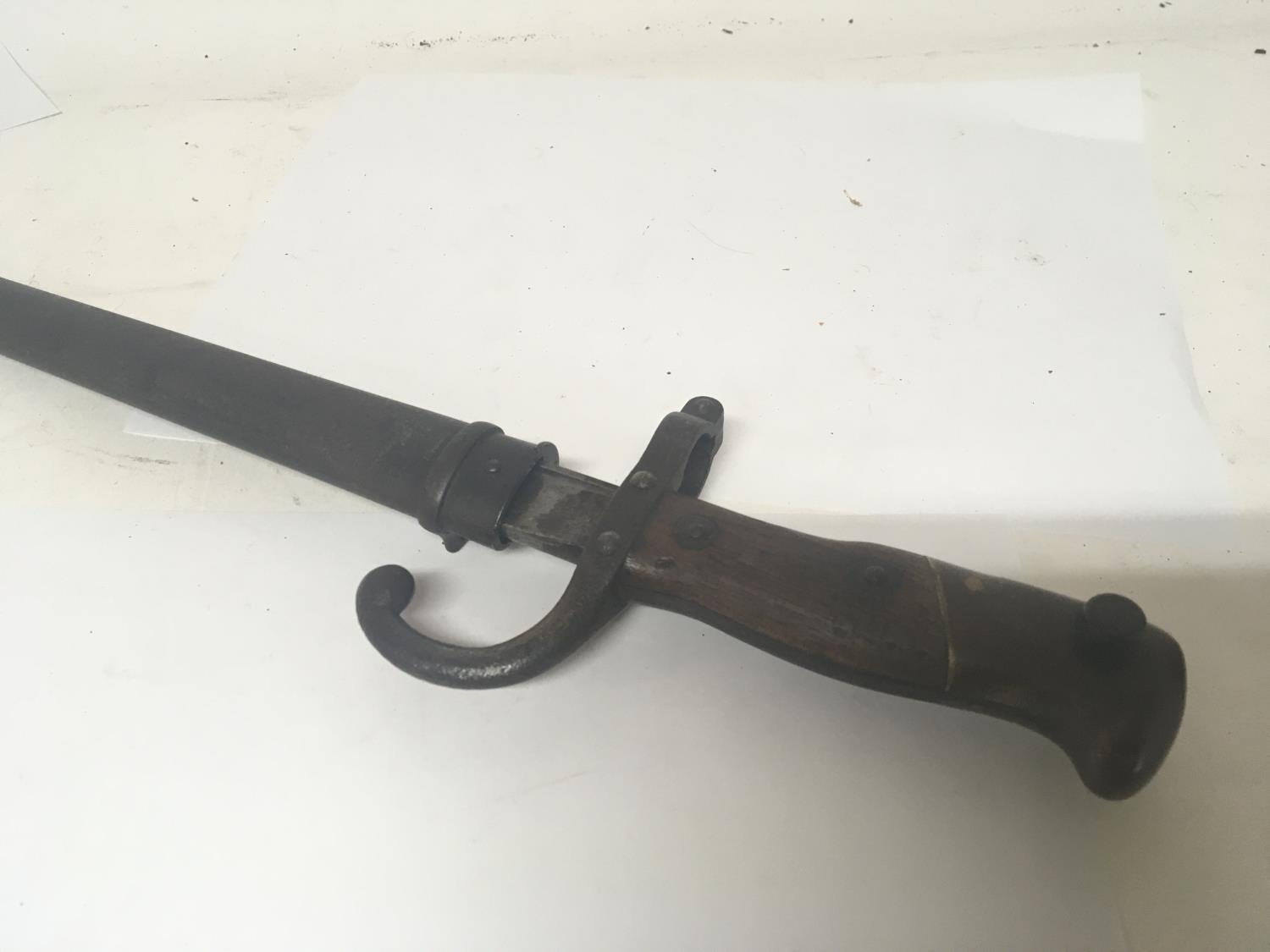 An 1881 pattern bayonet with a hook Quillion wooden grip with brass fittings.
