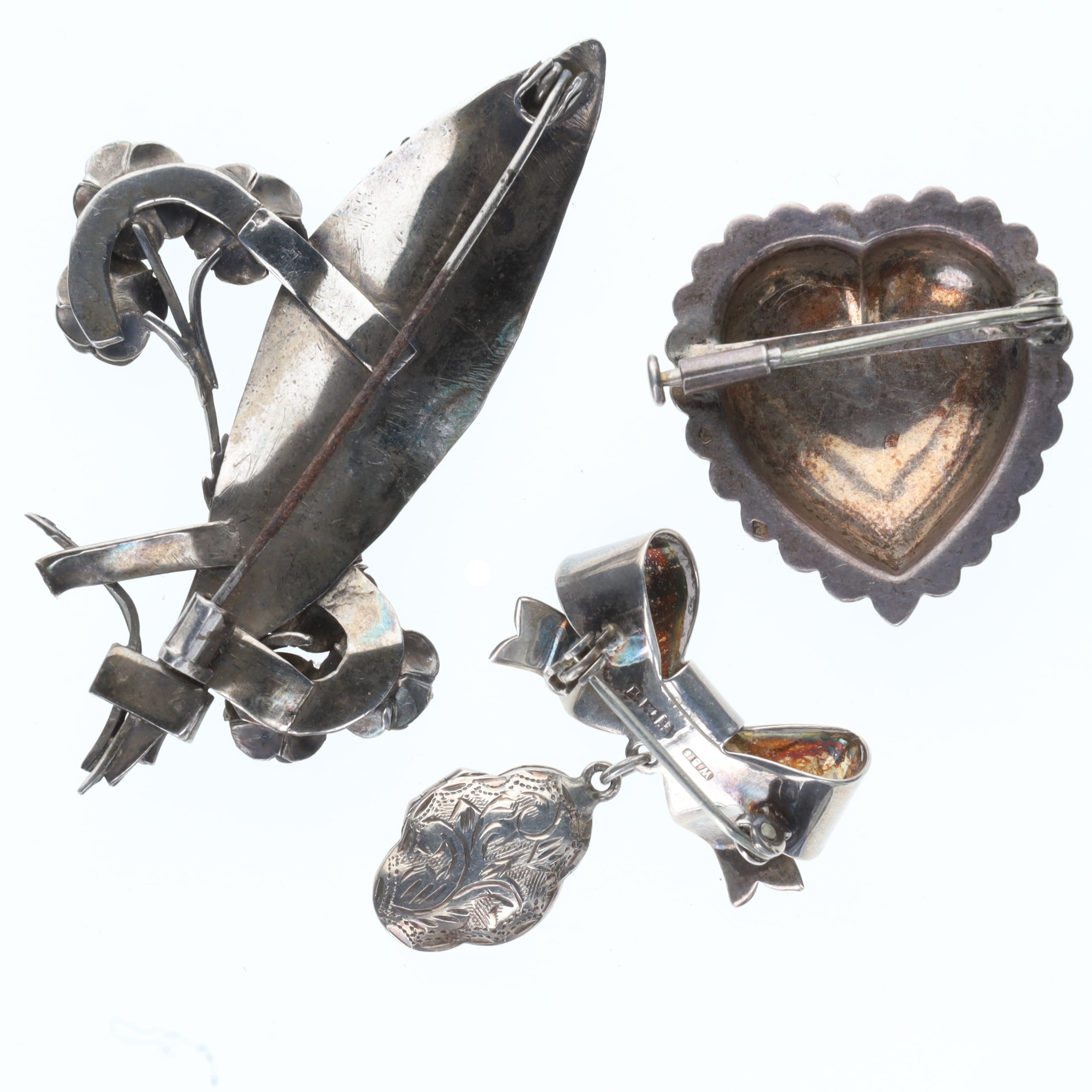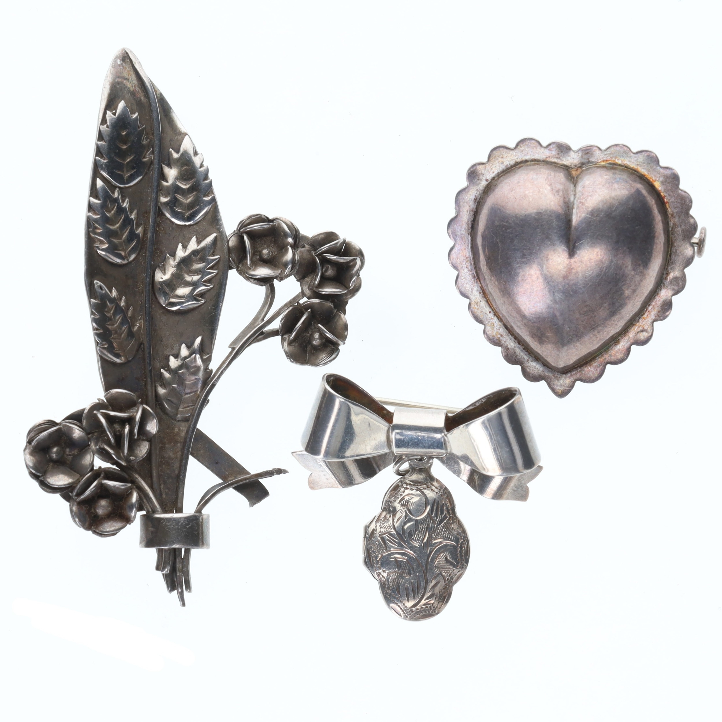 Sterling Silver Brooch Collection incl. Locket, Heart, Foliate, 23g