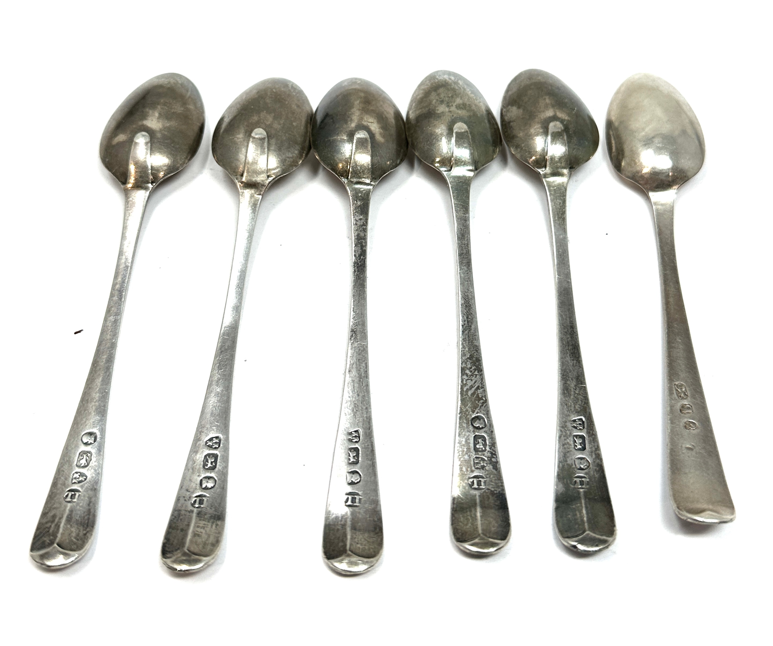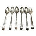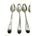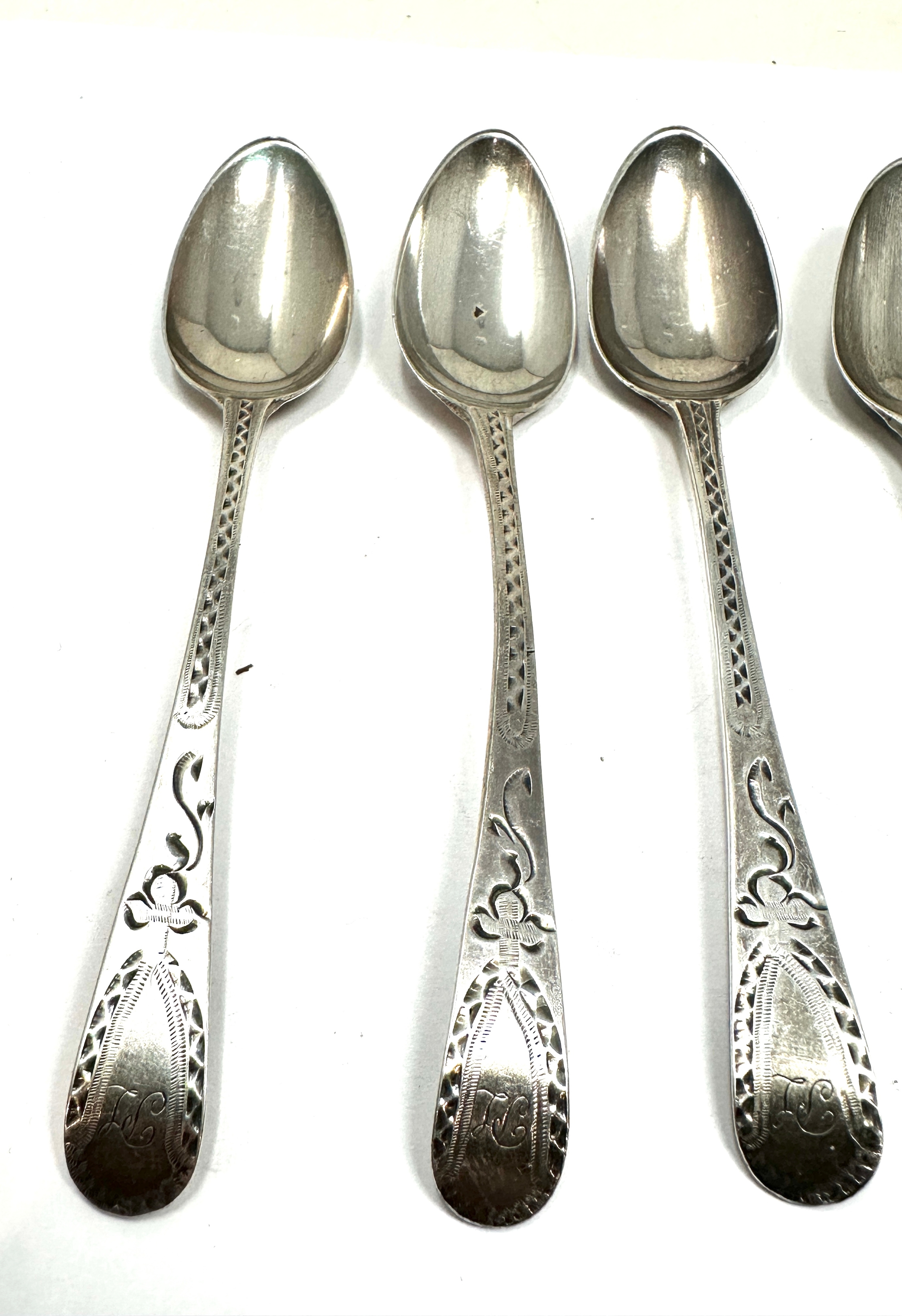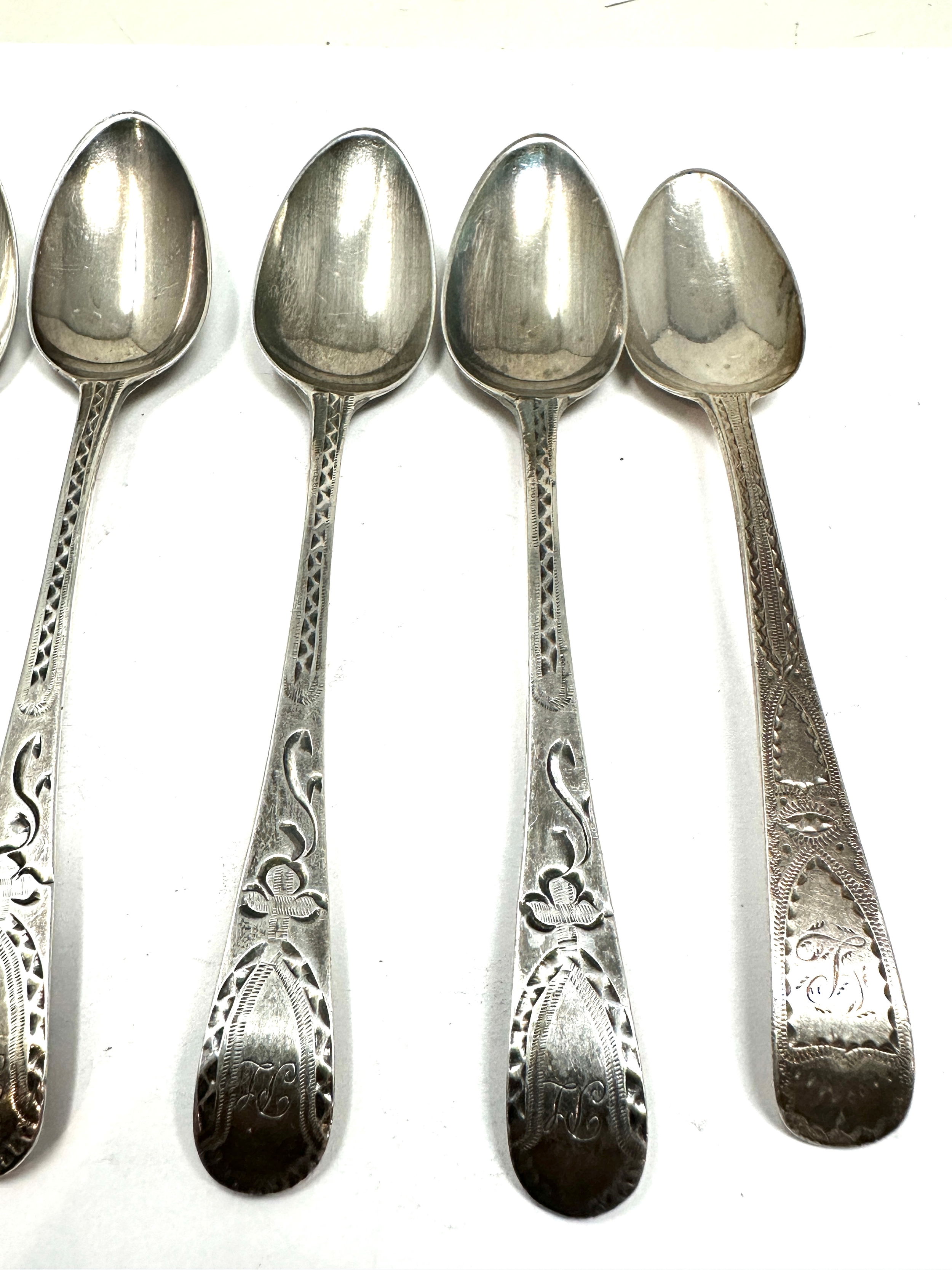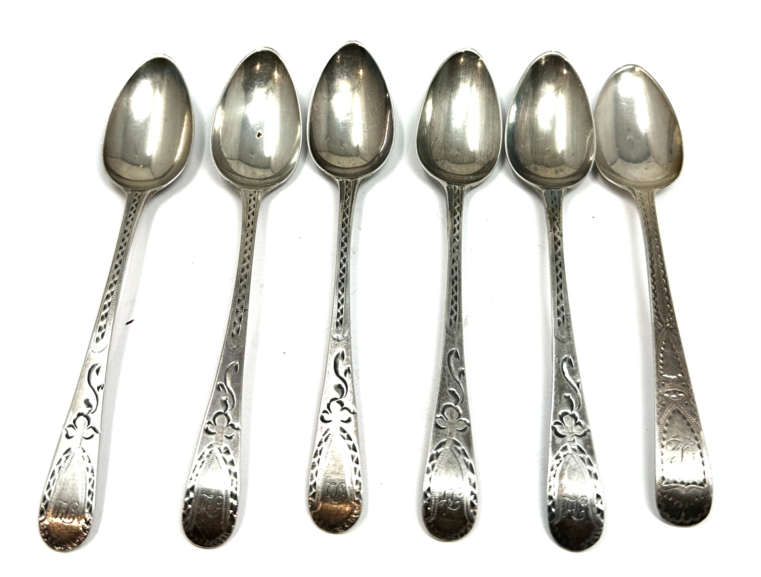 6 an tique georgian bright cut silver tea spoons various georgian silver hallmarks weight 80g