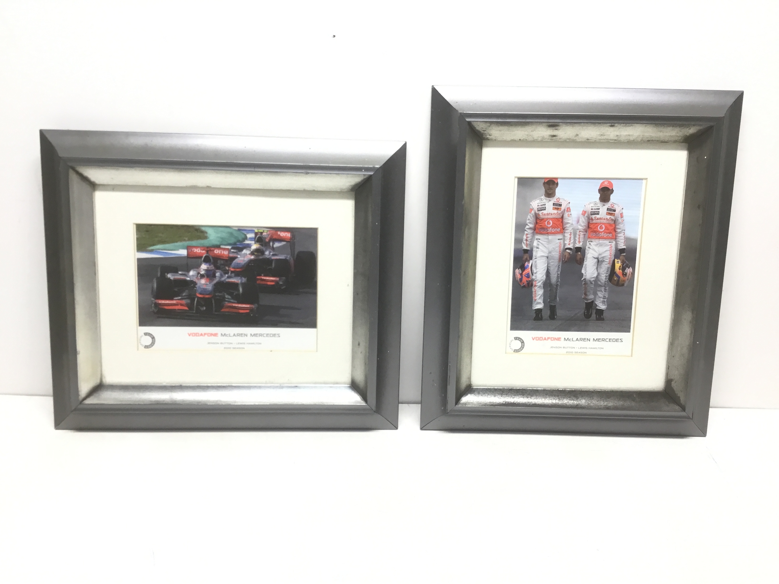 Two F1 pictures of Lewis Hamilton and Jenson Button from 2010 season McLaren Mercedes